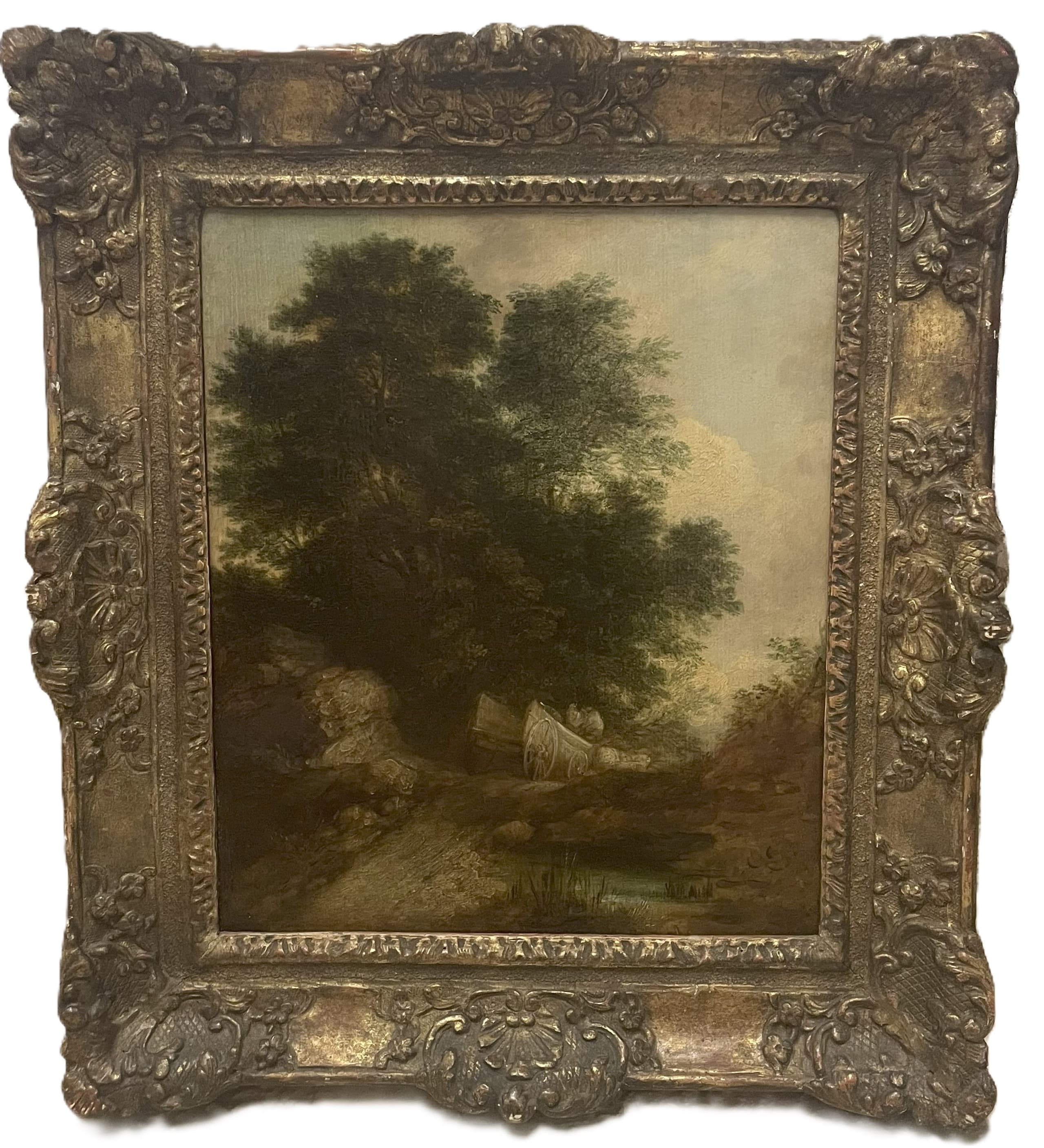 THOMAS GAINSBOROUGH R.A. (1727 - 1788) Wooded landscape with Peasants in a wagon