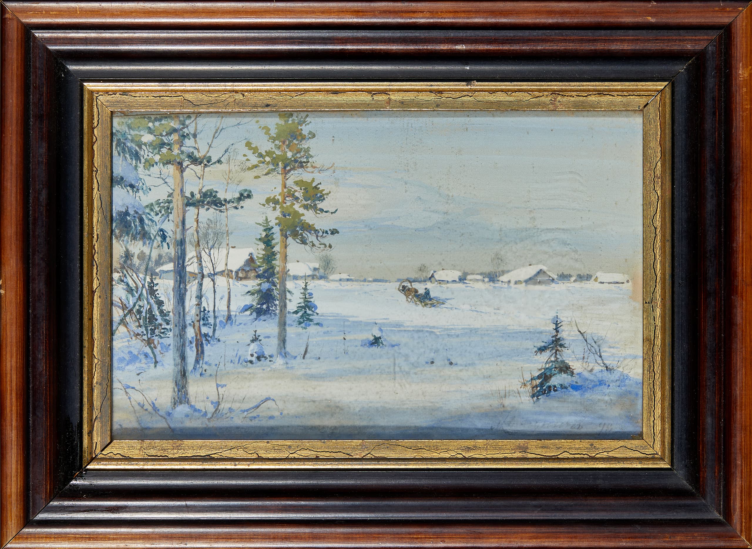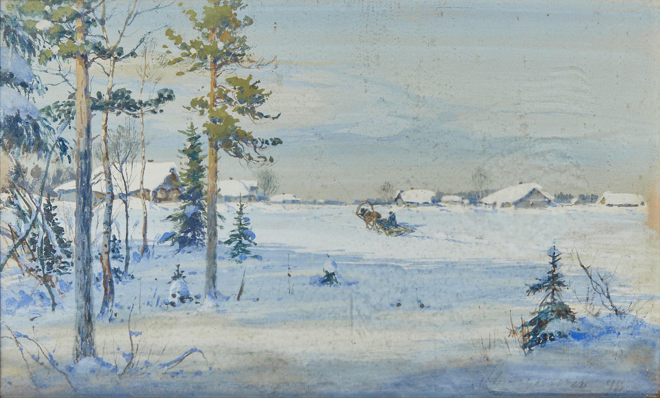MIKHAIL BALUNIN (1875-1939) Winter morning. Pines and a passing sleigh.