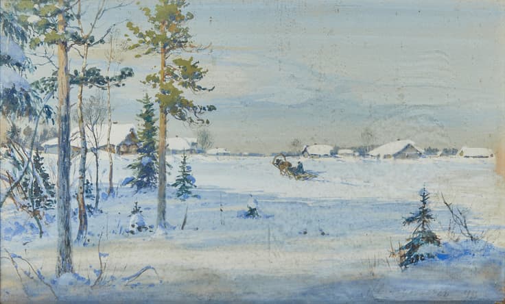 Mikhail Balunin was a Russian painter and graphic artist, born in St. Petersburg in 1875. He studied at the Drawing School of the Society for the Encouragement of the Arts. From 1906 onward, he regularly exhibited his work and was a member of several prominent artistic associations, including the Petrogradskoe obshchestvo khudozhnikov (1891, 1918) [St. Petersburg Society of Artists], Tovarishchestvo khudozhnikov (1891, 1918) [the Society of Artists], Obshchestvo russkikh akvarelistov [the Society of Russian Watercolorists], ‘Obshchestvo khudozhnikov-individualistov’ (1926, 1928, 1929) [the Society of Individualist Artists], and the A. I. Kuindzhi Society.