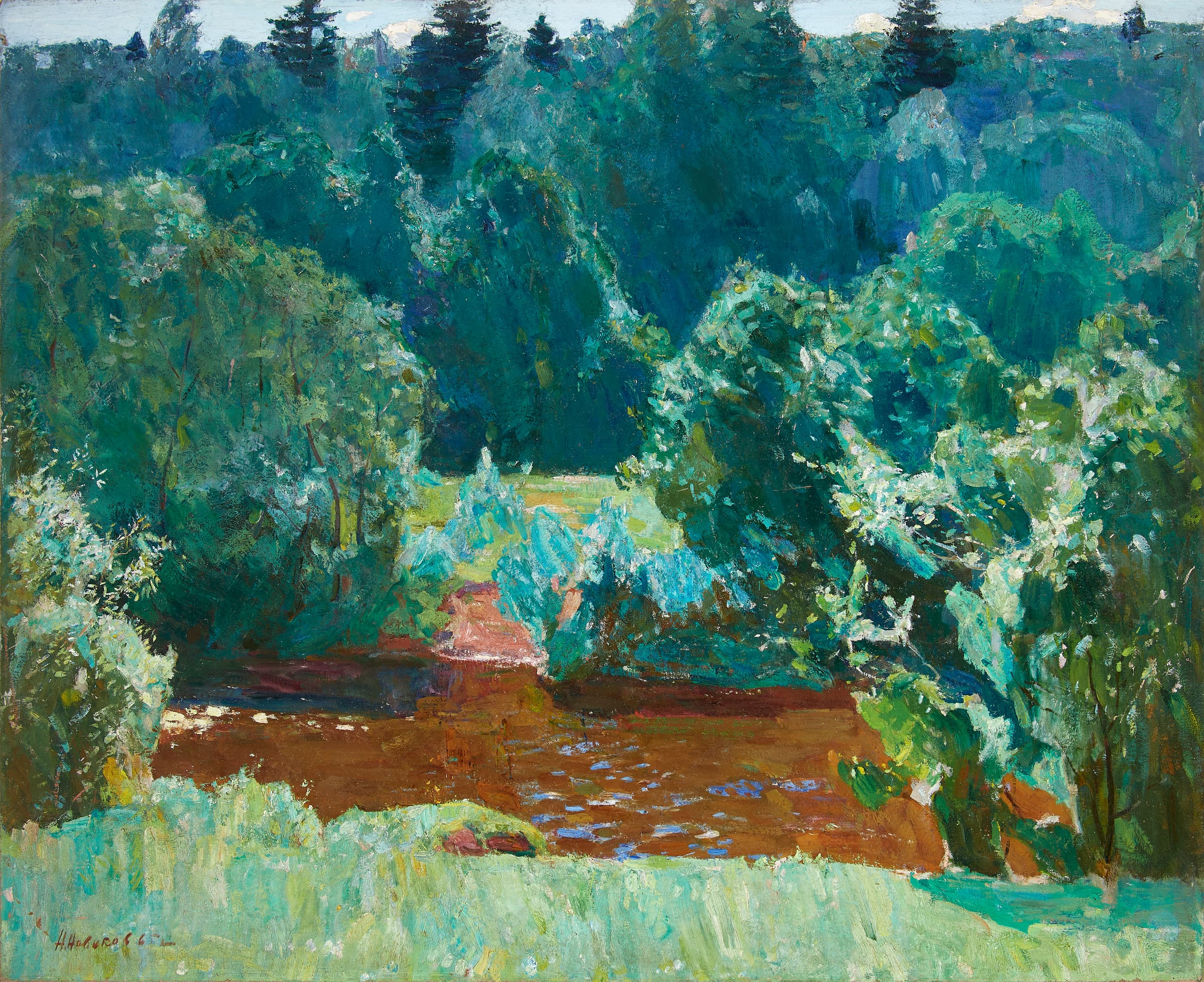 signed in Cyrillic and dated ‘N. Novikov 65’ (lower right); signed, titled in Cyrillic and dated ‘N. Novikov/ 23 XI 66/ Leto’ (on the reverse)