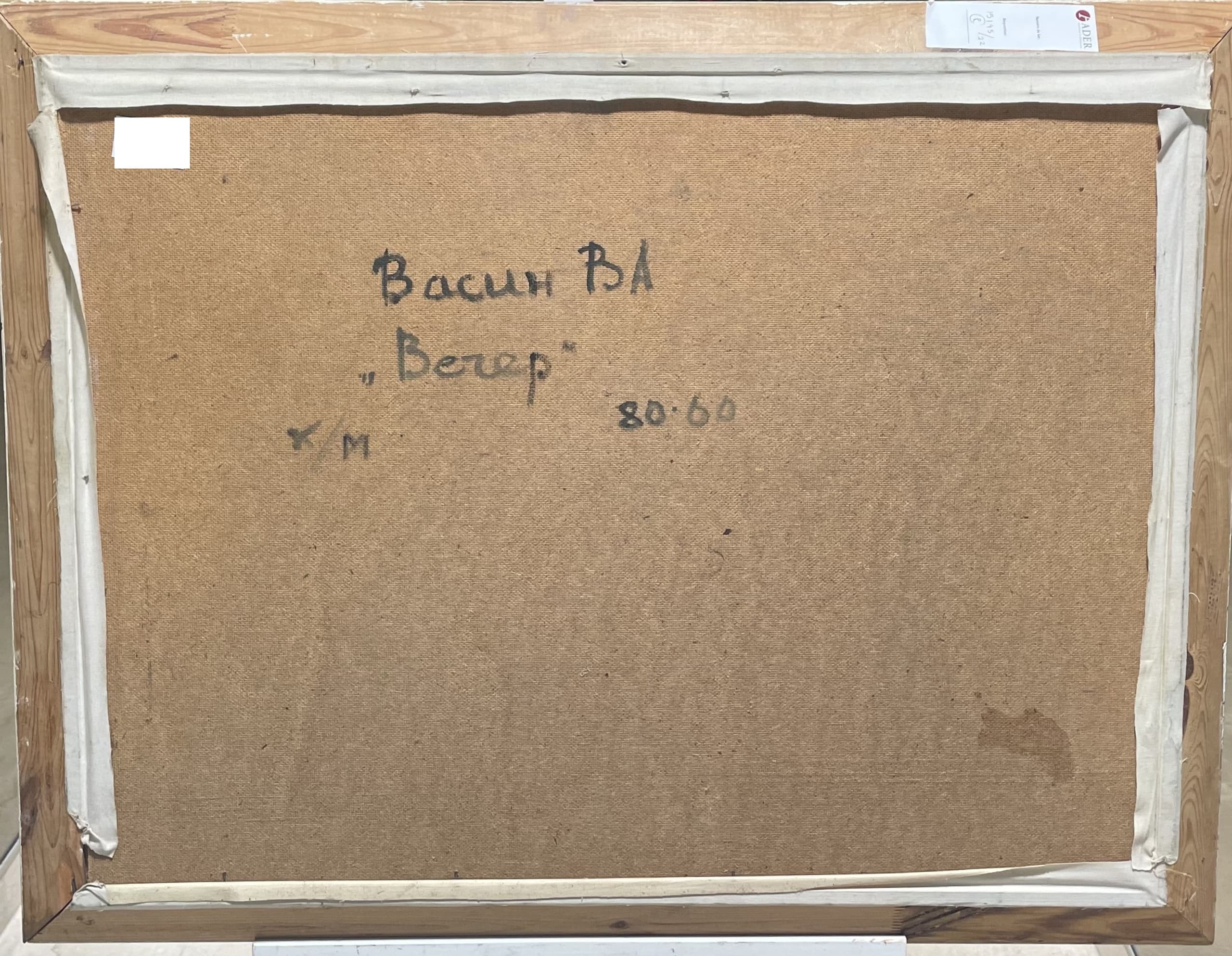 signed in Cyrillic ‘Vasin’(lower right); signed, titled ‘Vasin V.A. /Vecher’(on the reverse) oil on board 58.5 x 78.5 cm