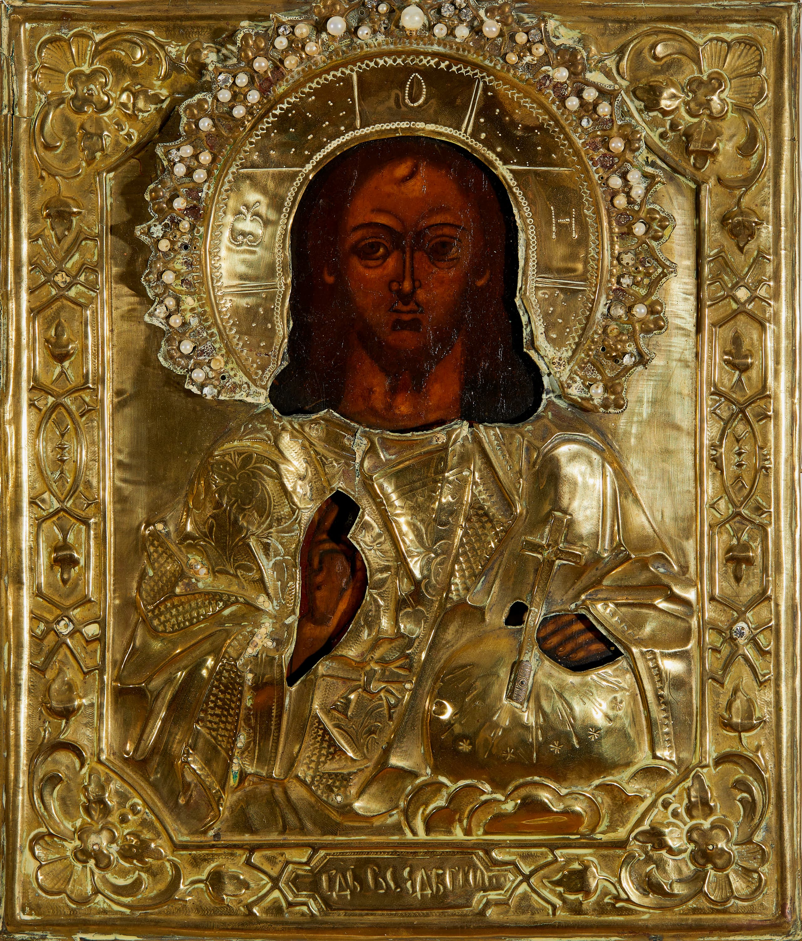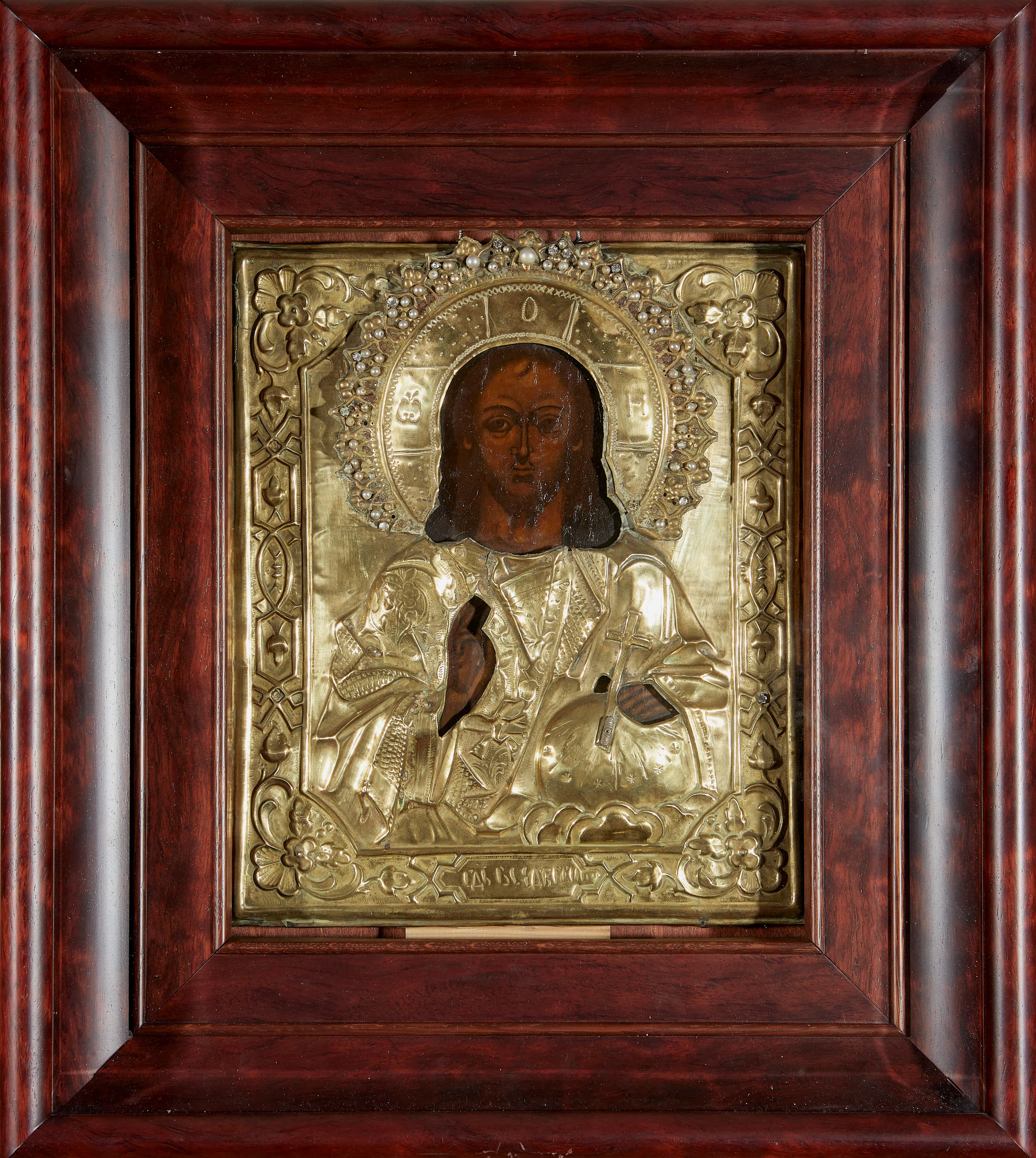 ICON ‘LORD ALMIGHTY’ (CHRIST PANTOCRATOR) IN BRASS OKLAD AND WOODEN CASE (KIOT)