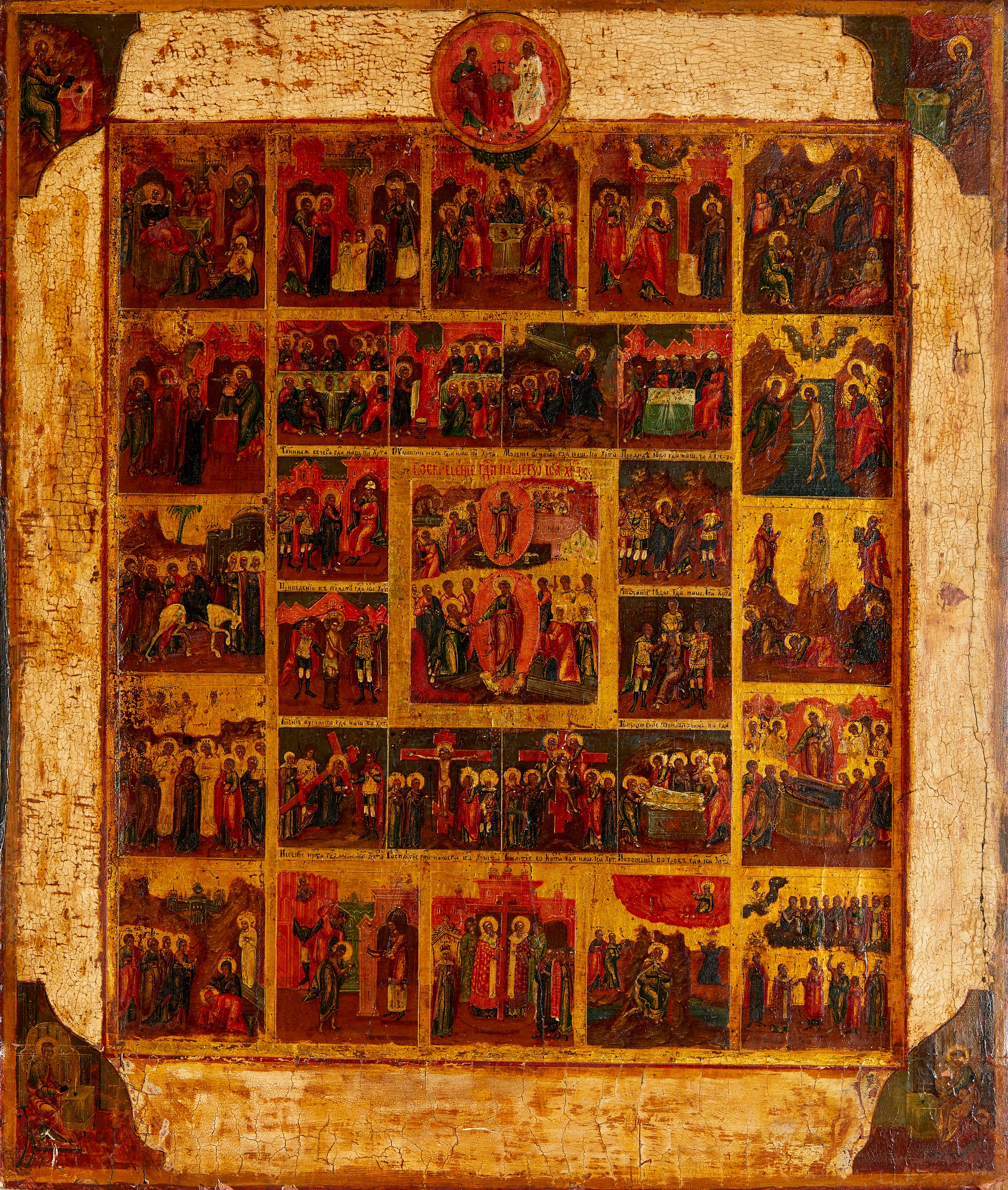 ICON ‘RESURRECTION - HARROWING OF HELL’ WITH PASSION, FEASTS AND EVANGELISTS