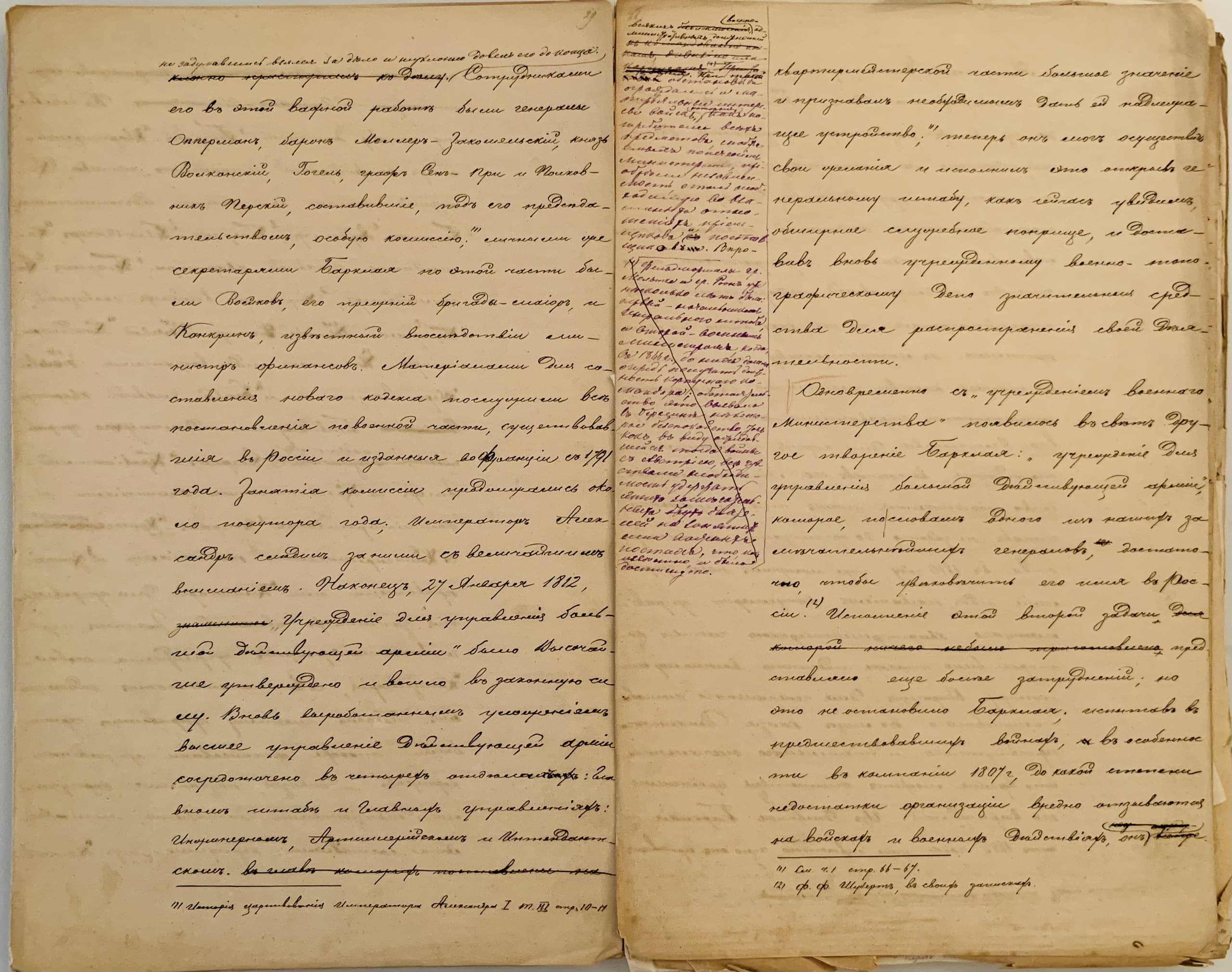WEYMARN FEDOR PETROVICH (1831-1913) Autograph manuscript drafts of a work dedicated to the biography of Field Marshal M.B. Barclay de Tolly. 1890-1900s.