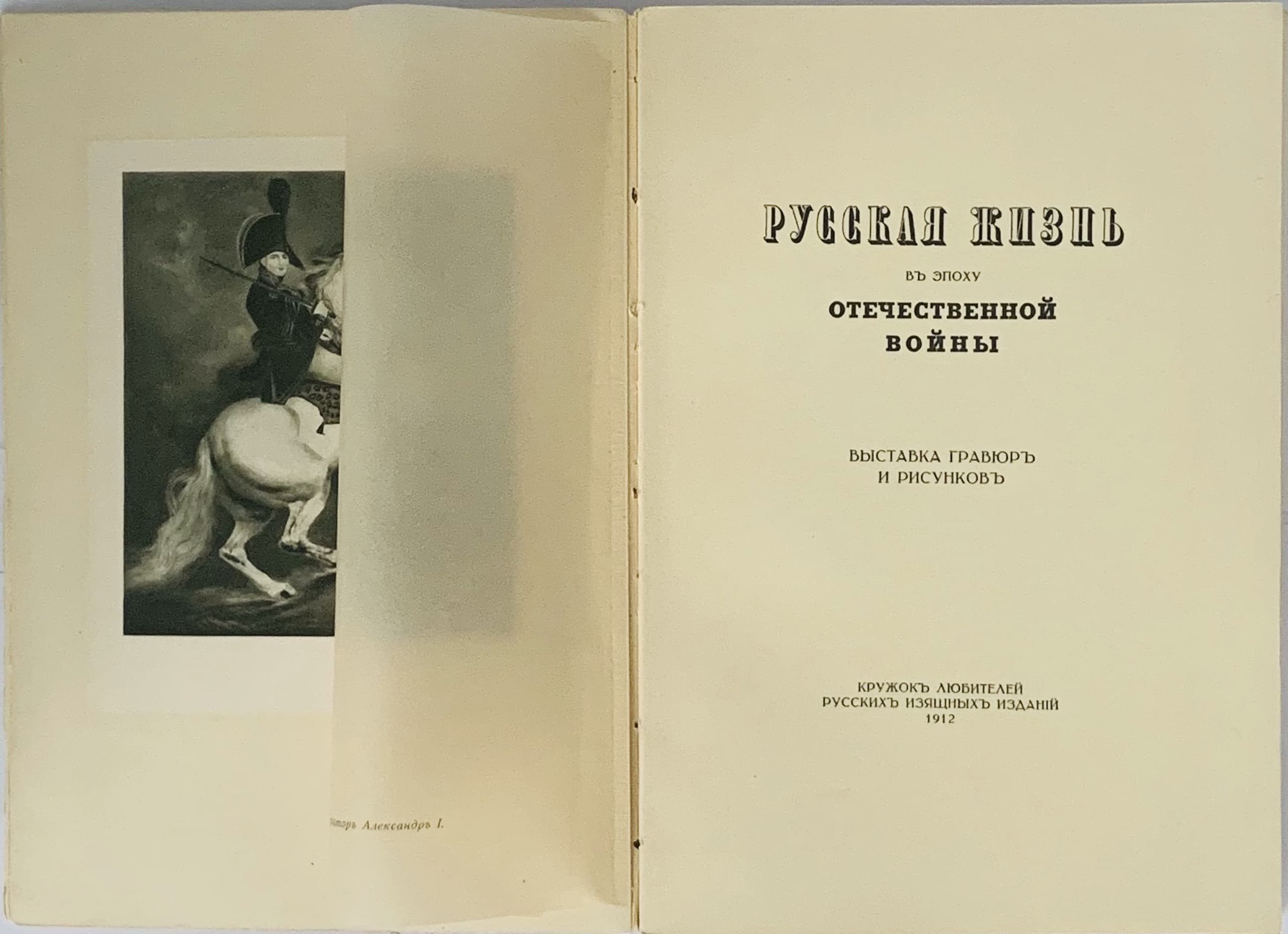 [CIRCLE OF LOVERS OF RUSSIAN FINE PRINTS] Russkaya zhiznʹ v epokhu Otechestvennoy voyny: Vystavka gravyur i risunkov. [Russian Life During the Patriotic War: Exhibition of Engravings and Drawings] St. Petersburg: Kruzhok lyubiteley russ. izyashchnykh izd; R. Golike and A. Vilborg, 1912.