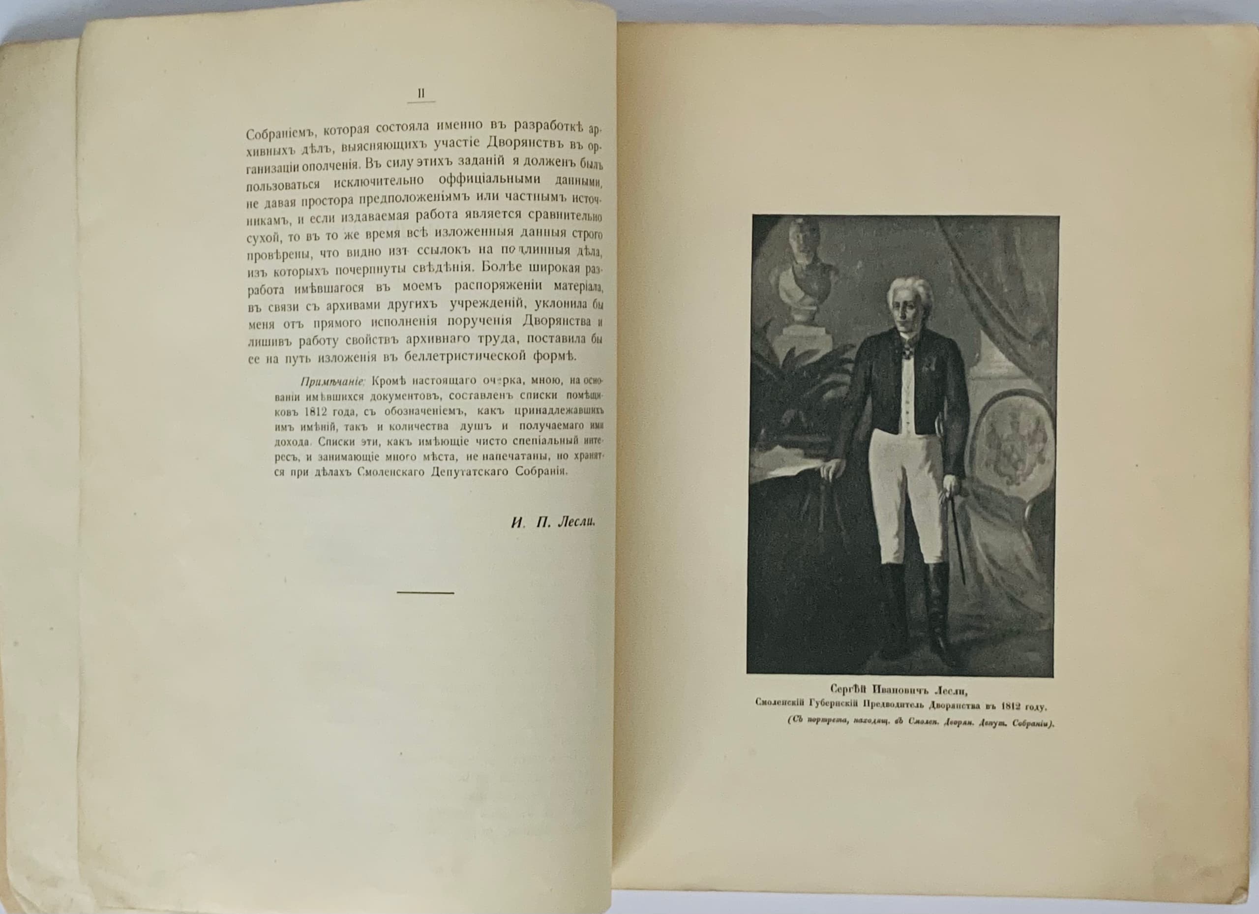 LESLI I.P. Smolenskoe dvoryanskoe opolchenie 1812 goda: [ocherk].[ The Smolensk Noble Militia of 1812: [essay]] Smolensk: Izdanie Smolenskogo dvoryanstva, 1912.