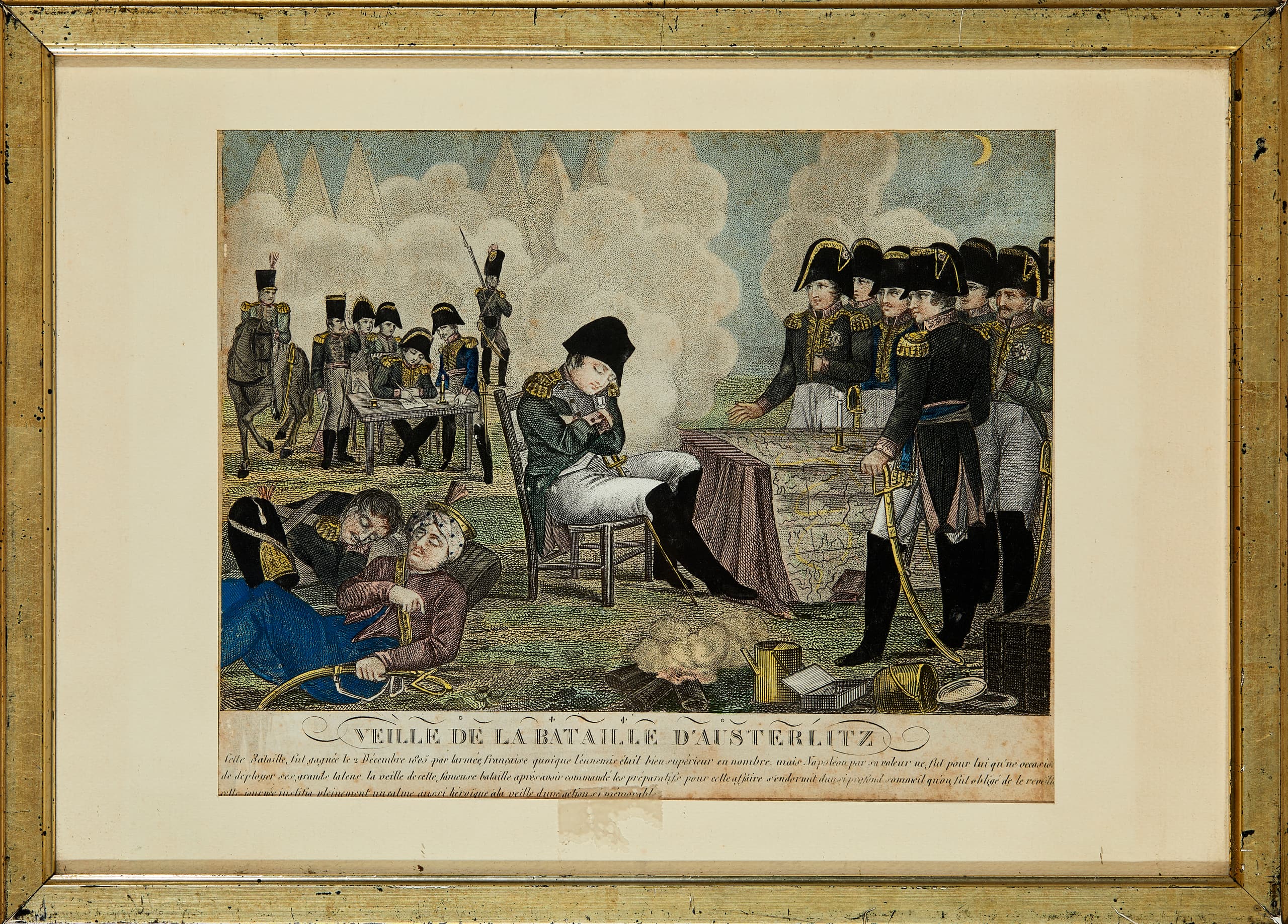 NAPOLEON 1st, EVE OF THE BATTLE OF AUSTERLITZ. POLYCHROME ENGRAVING