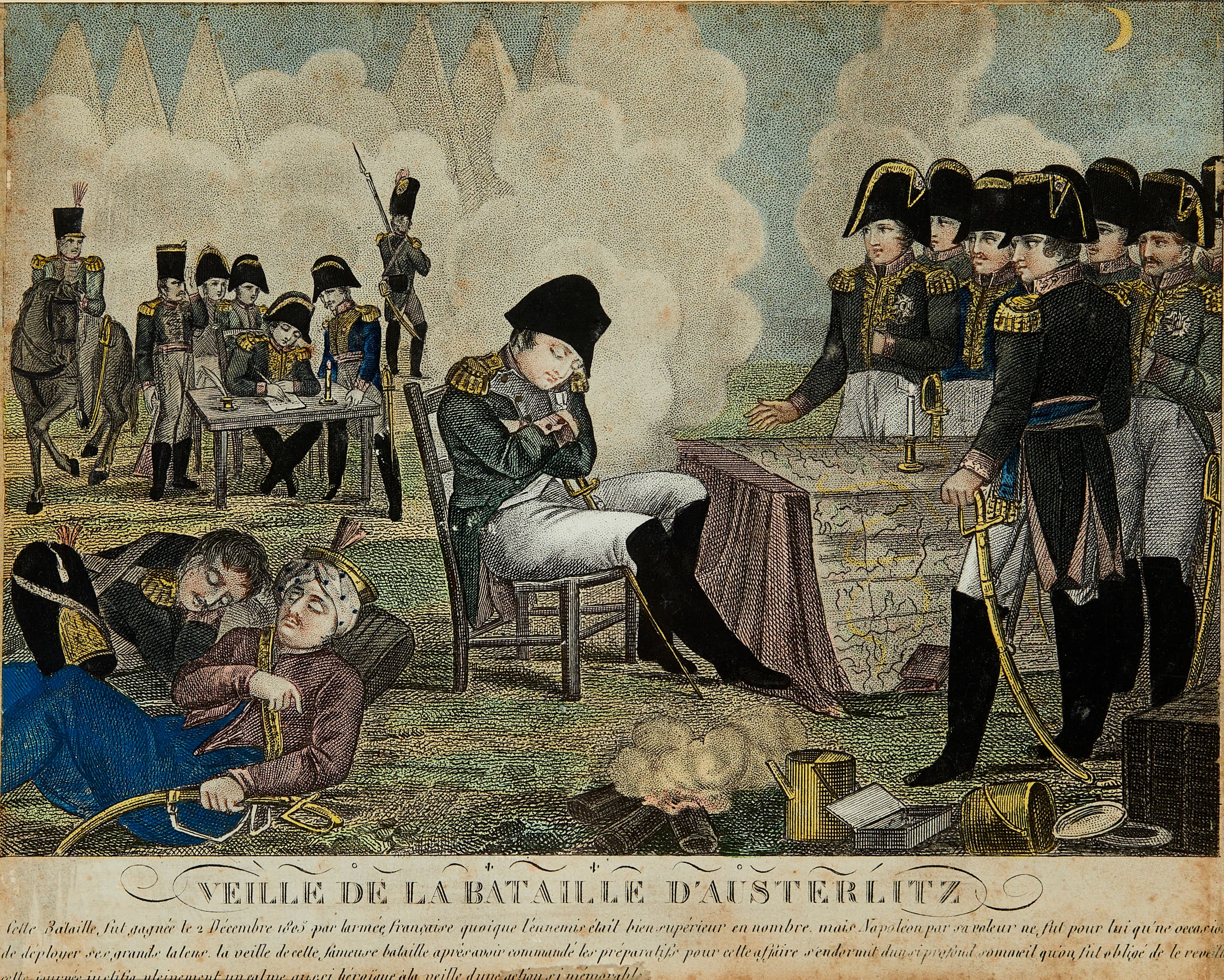 'This battle was won on 2 December 1805 by the French army even though the enemy was far superior in numbers, but Napoleon's valour was only an opportunity for him to display his great talents. On the eve of this famous battle, After having ordered the preparations for this affair, he fell into such a deep sleep that he had to be woken up. This day fully justified such heroic calm on the eve of such a memorable action.