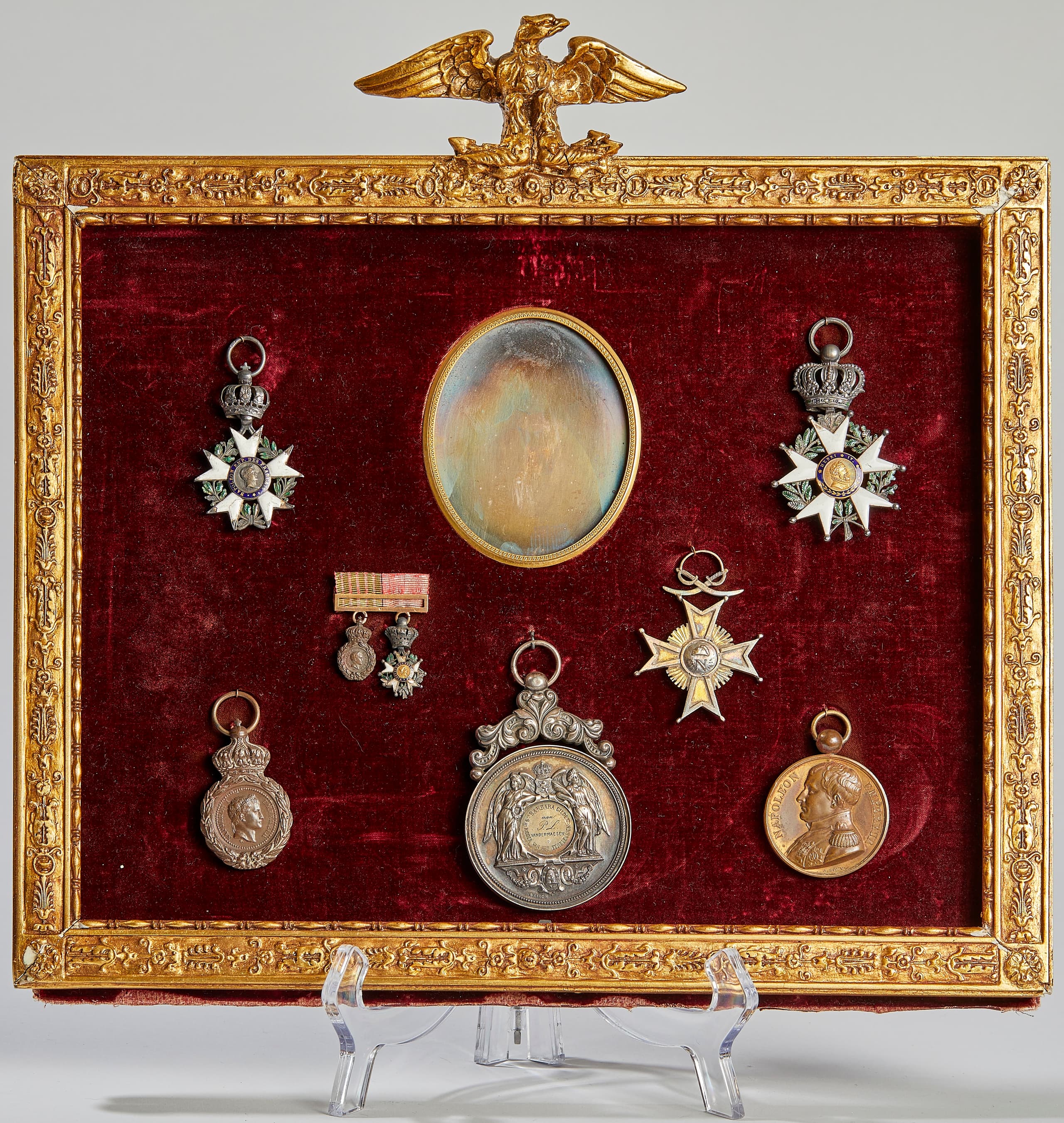 Together with a pair of miniature medals (i) France, St. Helena Medal, bronze; (ii) Legion of Honour, First Empire, 4th type, silver, gold and enamel, and Daguerreotype photograph of Paul Lambert Van Der Maesen (fainted)