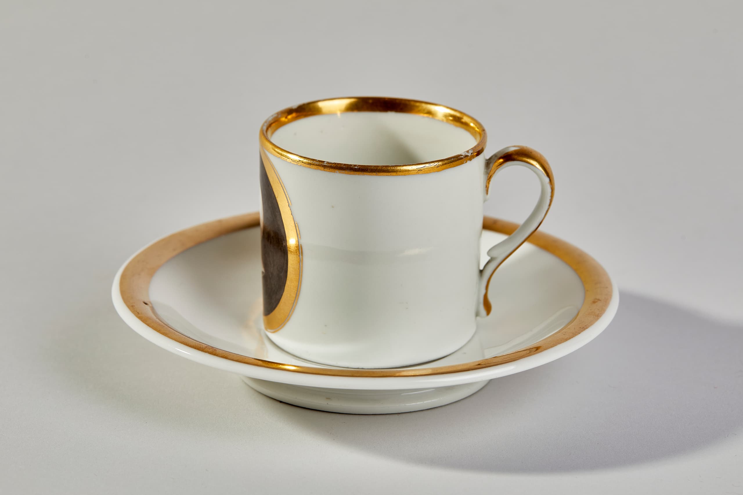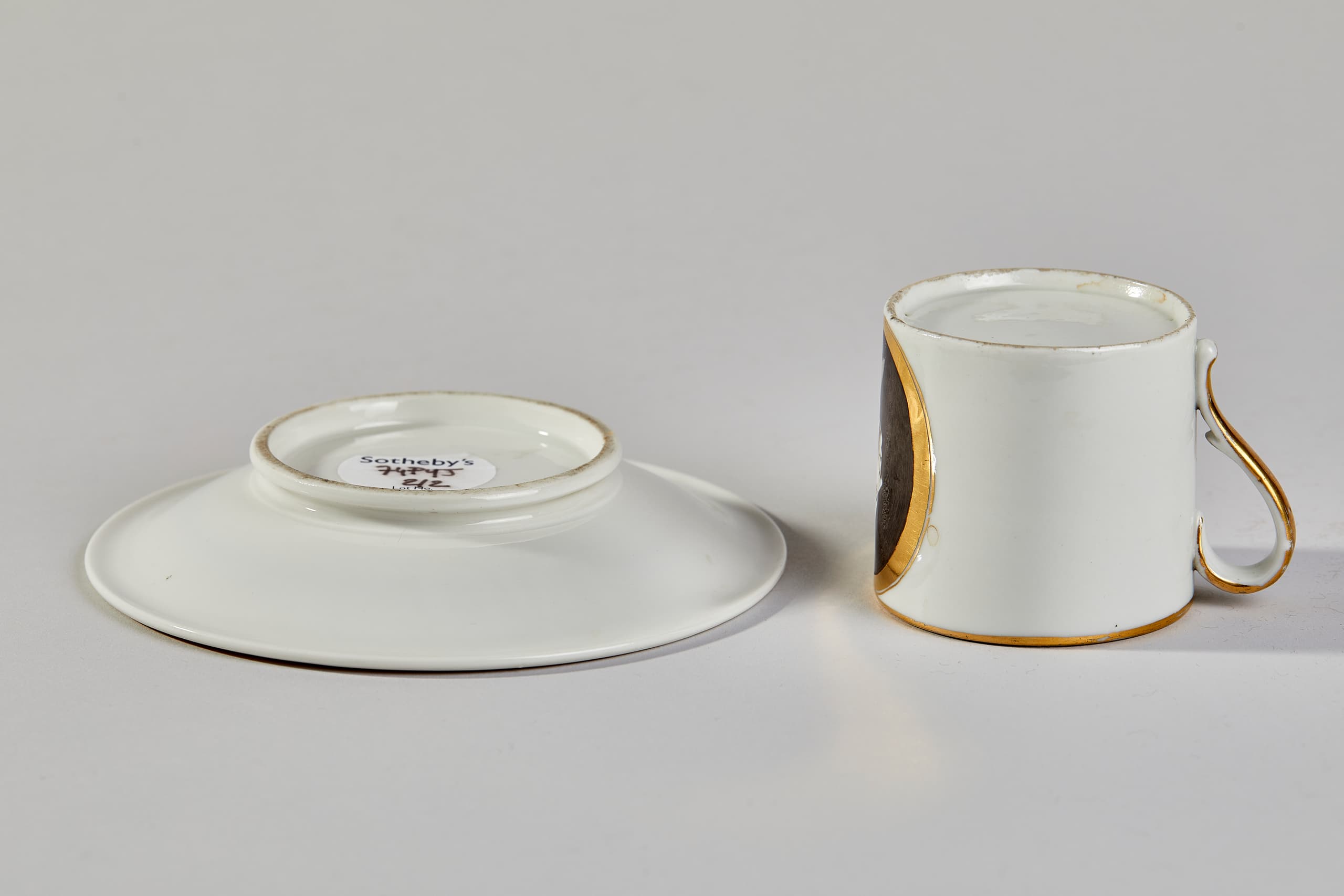 [LOUIS-ALEXANDRE BERTHIER (1753 - 1815)] [DUKE WILHELM IN BAVARIA (1752 - 1837)] porcelain litron shaped cup decorated with a portrait of the Duke Wilhelm in Bavaria in grisaille and saucer, circa 1800s