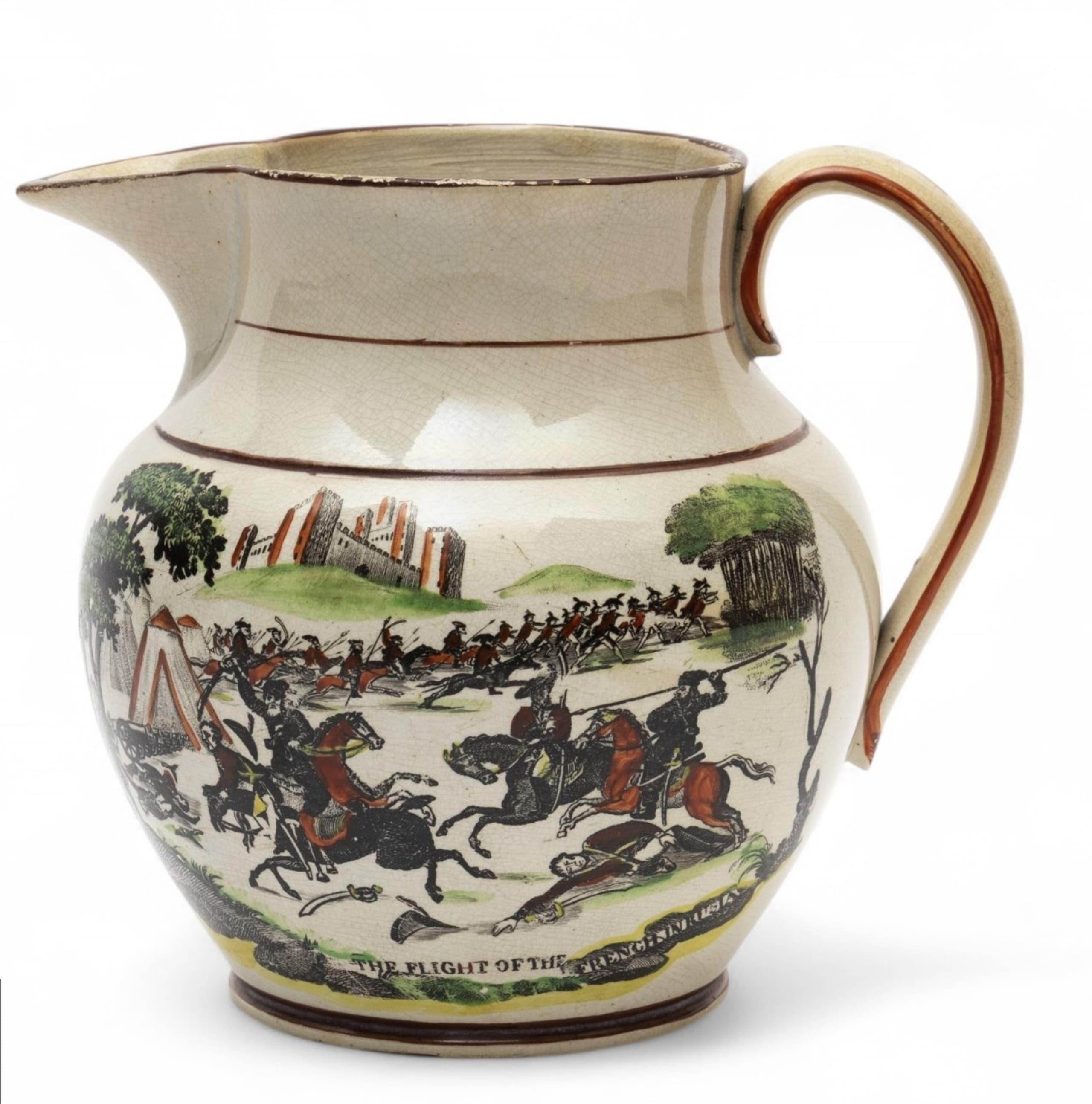 [WAR OF 1812] STAFFORDSHIRE CREAMWARE JUG 'THE FLIGHT OF THE FRENCH IN RUSSIA', CIRCA 1813