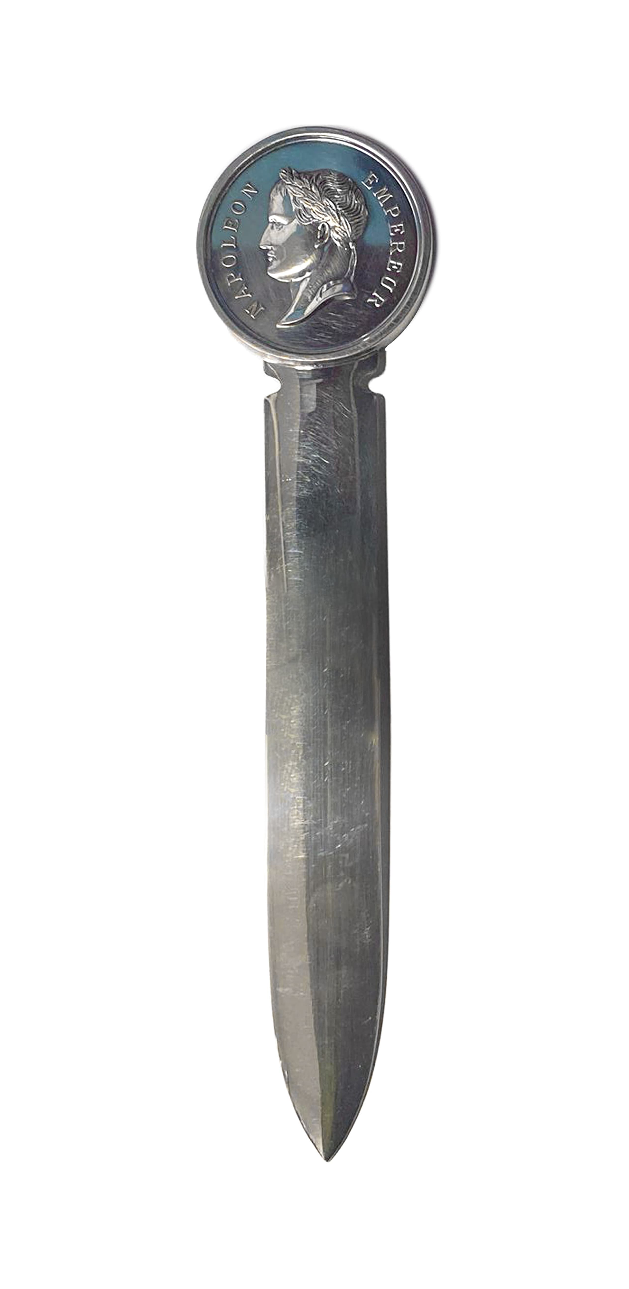 CHRISTOFLE SILVER-PLATED LETTER OPENER AND BOOKMARK WITH A PROFILE OF NAPOLEON