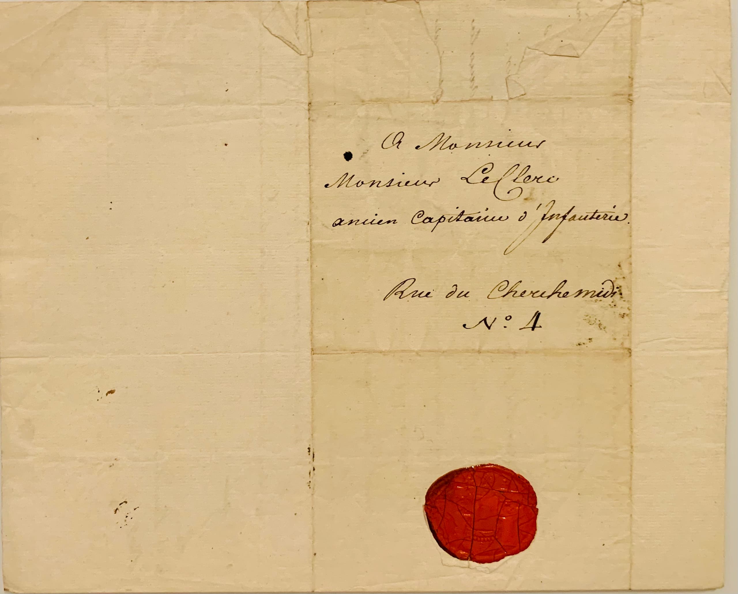 1 double leaf, 4°. Address and red wax seal with Count Rumyantsev’s coat of arms on the verso. In French.