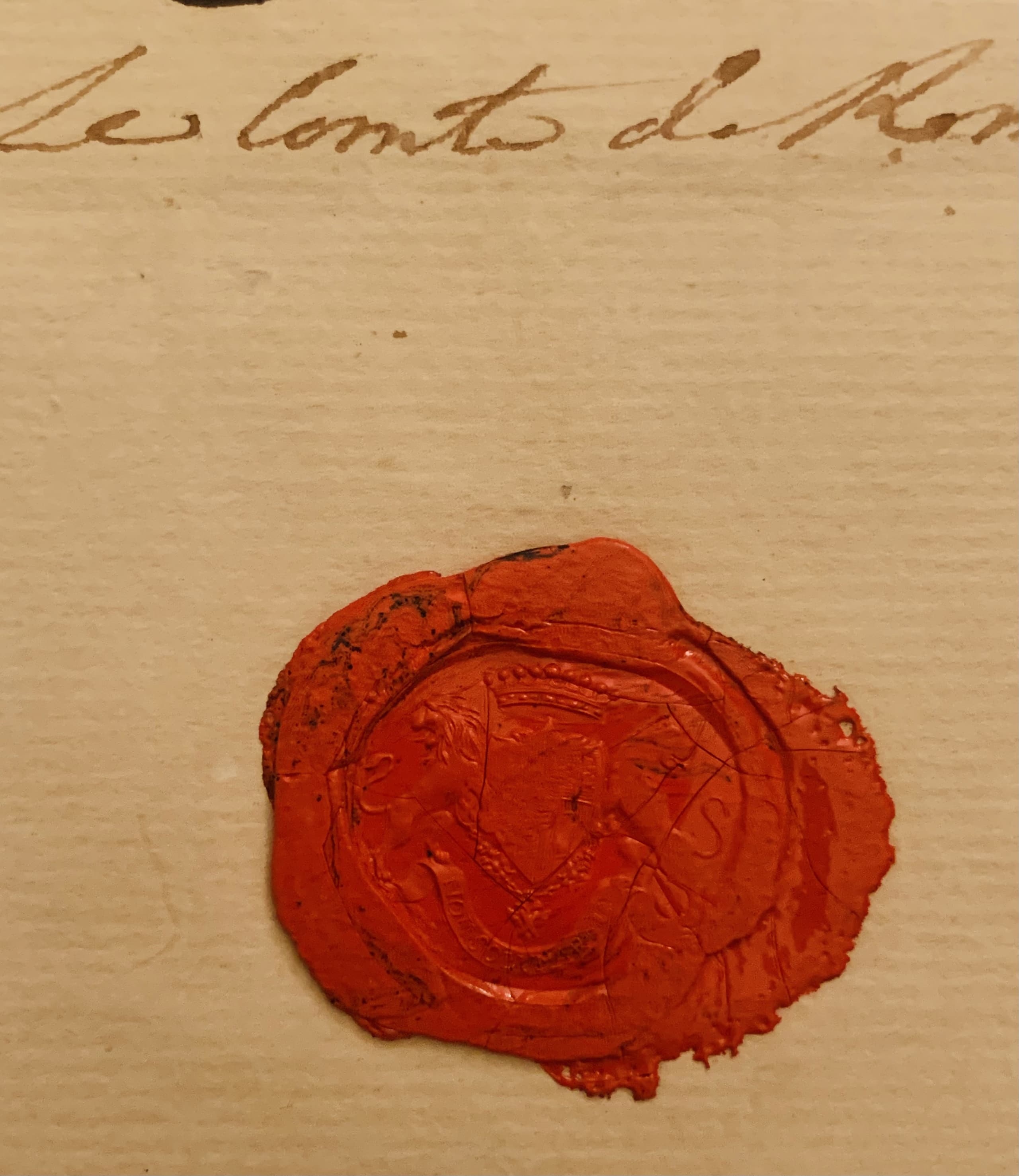 1 double leaf in-folio. With Count Rumyantsev’s red wax seal bearing his coat of arms and his autograph signature. Text and signature in French.