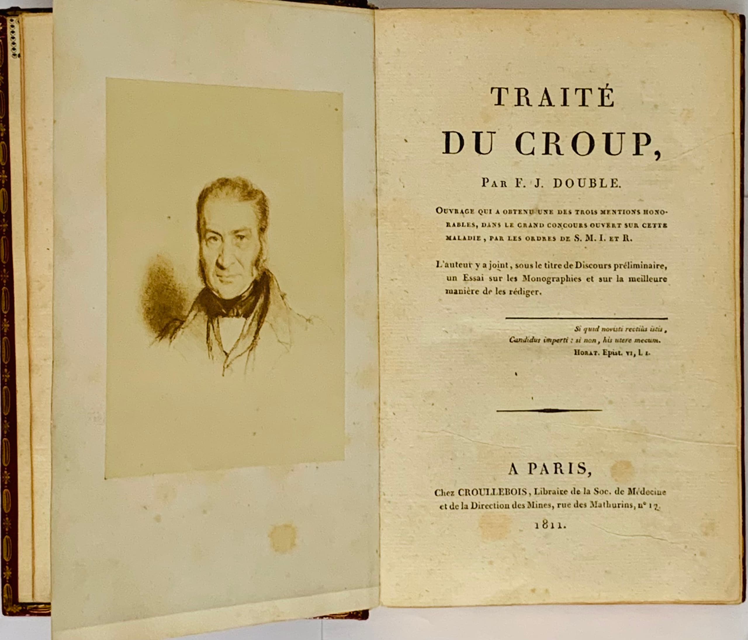 FRANÇOIS-JOSEPH DOUBLE (1776–1842) Traité du croup, ouvrage qui a obtenu une des trois mentions honorables, dans le grand concours ouvert sur cette maladie. Paris: Croullebois, 1811.