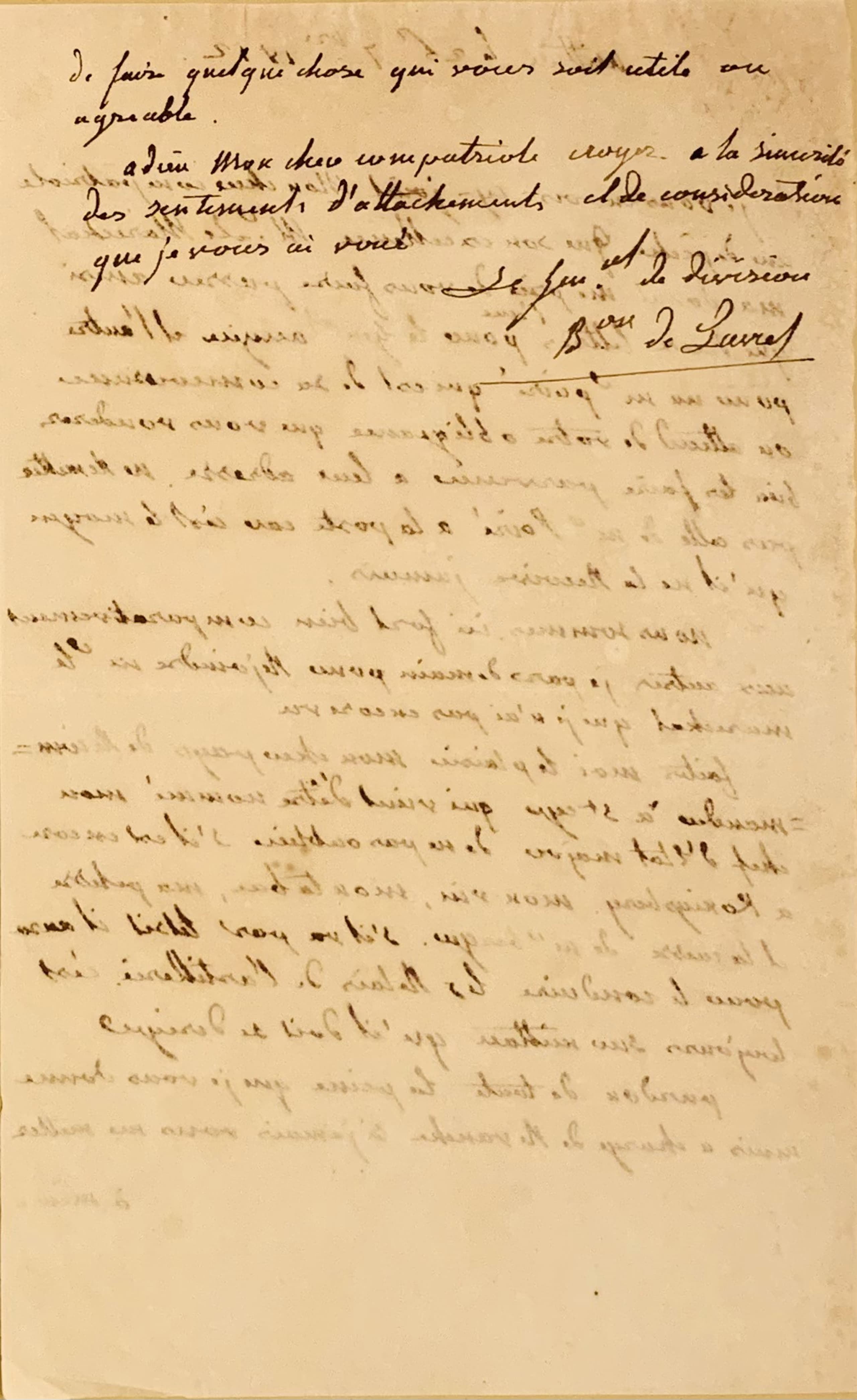 (...) Do not put the letter for Maître Poiré in the post, as this is the only way to ensure that he never receives it. He describes his situation: We are very well here compared to others. I am leaving tomorrow to join the Marshal, whom I have not yet seen (...).