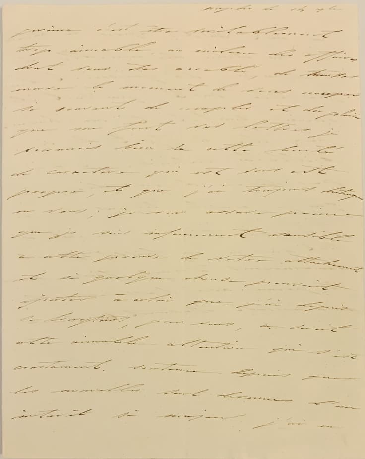 Caroline thanks the Archchancellor of the Empire for his support in the affairs of Naples, despite the occupations with which he is burdened; (...) I recognise in this the kindness of character that is so characteristic of you, and which I have always admired in you; I assure you, Prince, that I am infinitely grateful for this proof of your attachment (...) this kind attention that has been constantly maintained since the news became so important. I had a word with the King After the battle. He gave me news of the Emperor. They were in perfect health. May they return soon and may a happy peace be the fruit of such brilliant victories. I need not tell you, Prince, that I am always counting on you to keep me informed of everything (...).