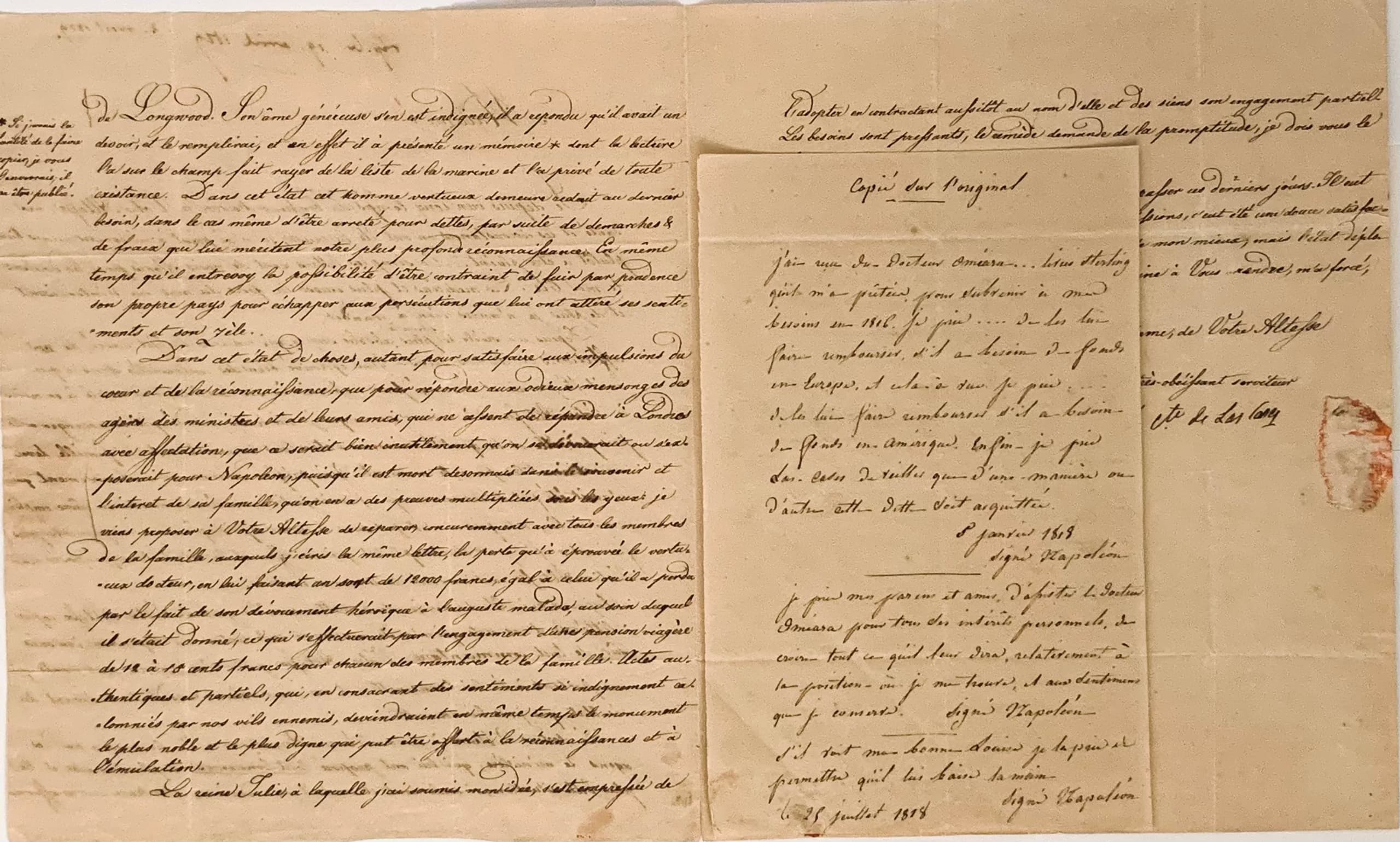 Attached to the second page is the handwritten copy of Napoleon I’s note mentioned above by Las Cases: