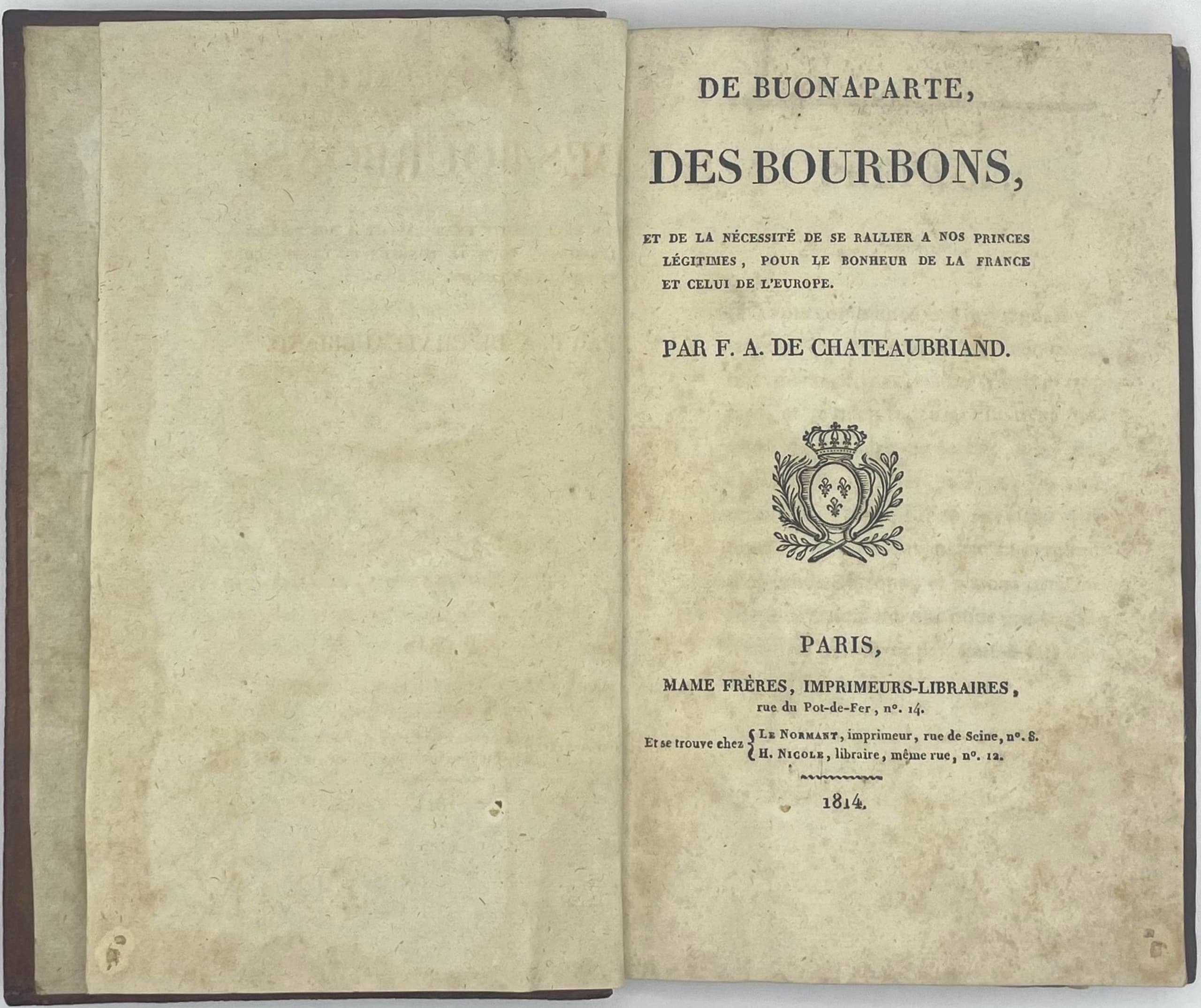 De Buonaparte, des Bourbons et de la nécessité de se rallier à nos princes légitimes, pour le bonheur de la France et celui de l'Europe. [About Buonaparte, the Bourbons and the need to rally behind our legitimate princes, for the happiness of France and Europe]