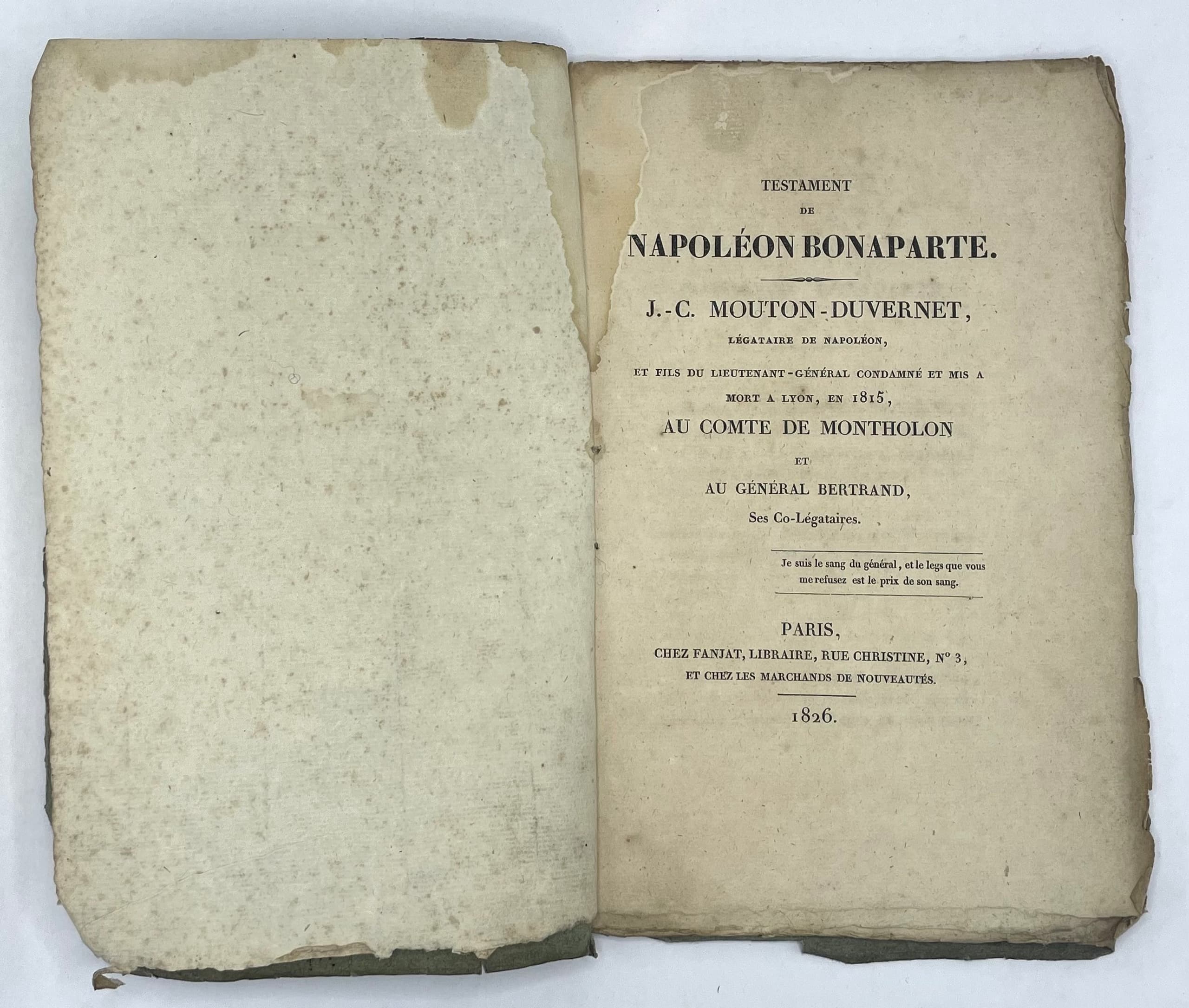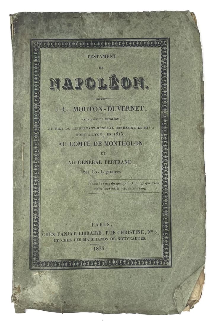 JEAN CINCINNATUS MOUTON-DUVERNET (1797-1872) TESTAMENT OF NAPOLEON BONAPARTE 1826. IN FRENCH.