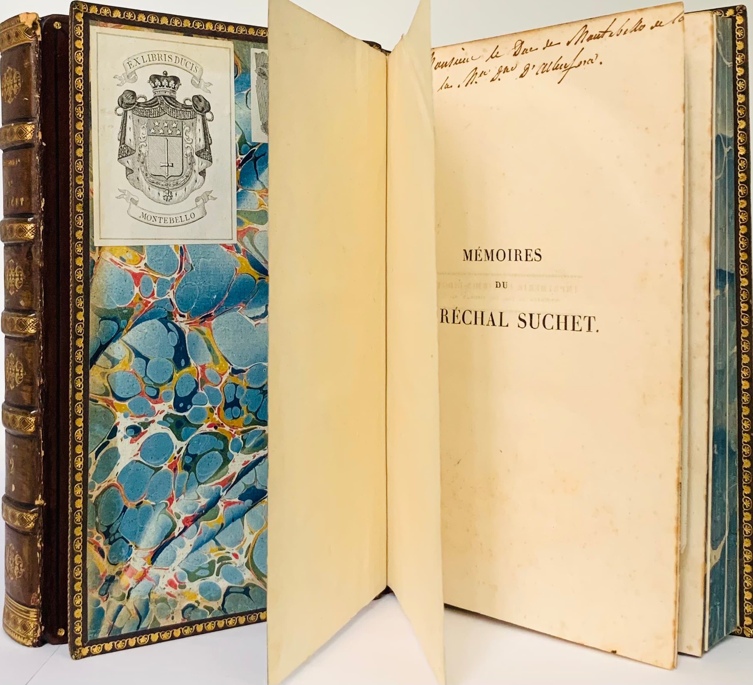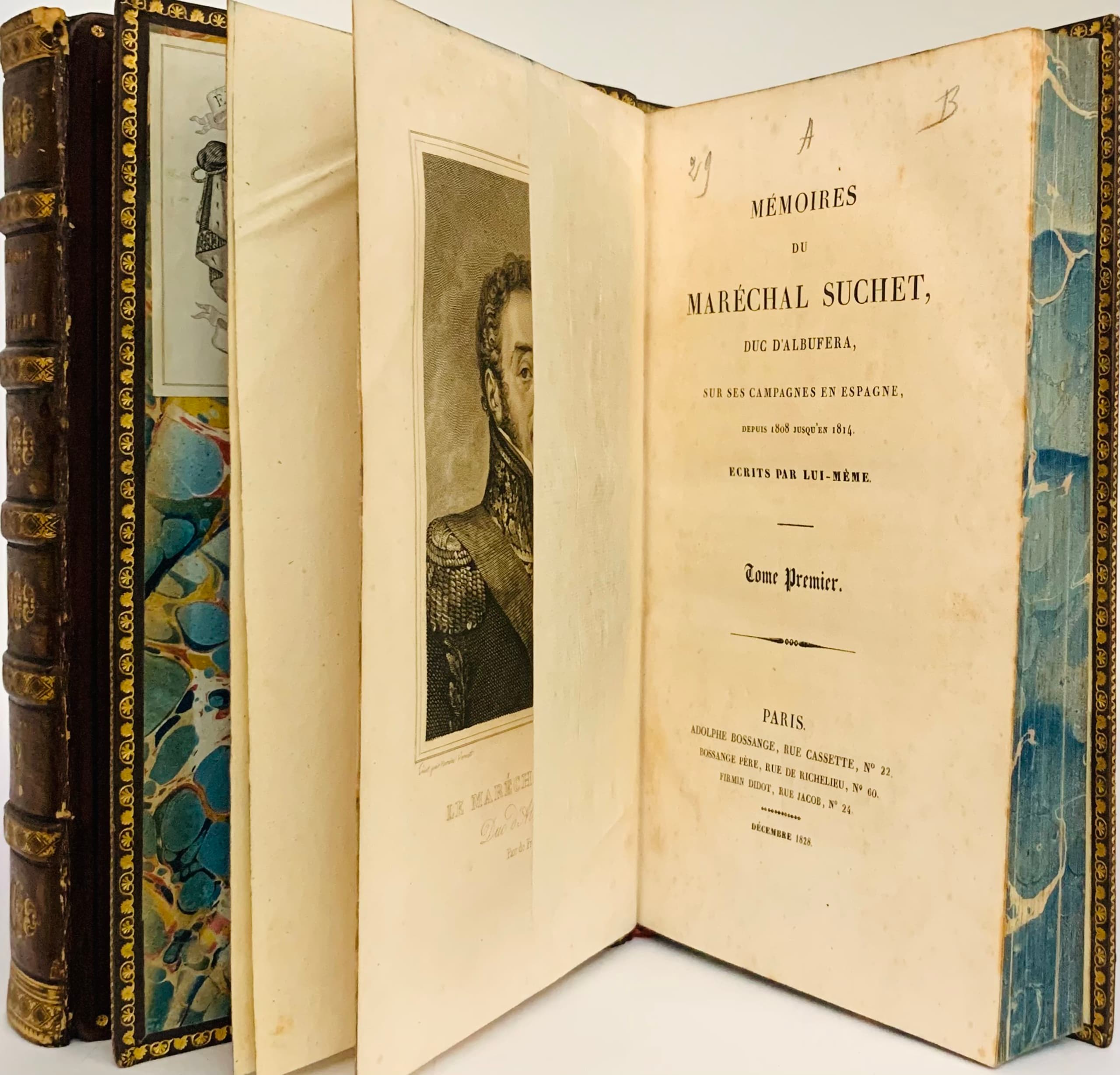 SUCHET LOUIS-GABRIEL (1770–1826) Mémoires du maréchal Suchet, duc d’Albufera, sur ses campagnes en Espagne, depuis 1808 jusqu’en 1814. Écrits par lui-même. Paris: Adolphe Bossange, Firmin Didot, 1828. 2 volumes in-8°. (4) ff., LI, 376 pp.; X, 570, (2) pp.