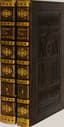 Aubergine calf binding, large cathedral plate, double blind-stamped head, decorated spine, interior lace, marbled edges, modern slipcase (Vogel). Without the folio atlas comprising 16 large battle maps. Spine faded. Rubbing to caps. Bookplate on half board.