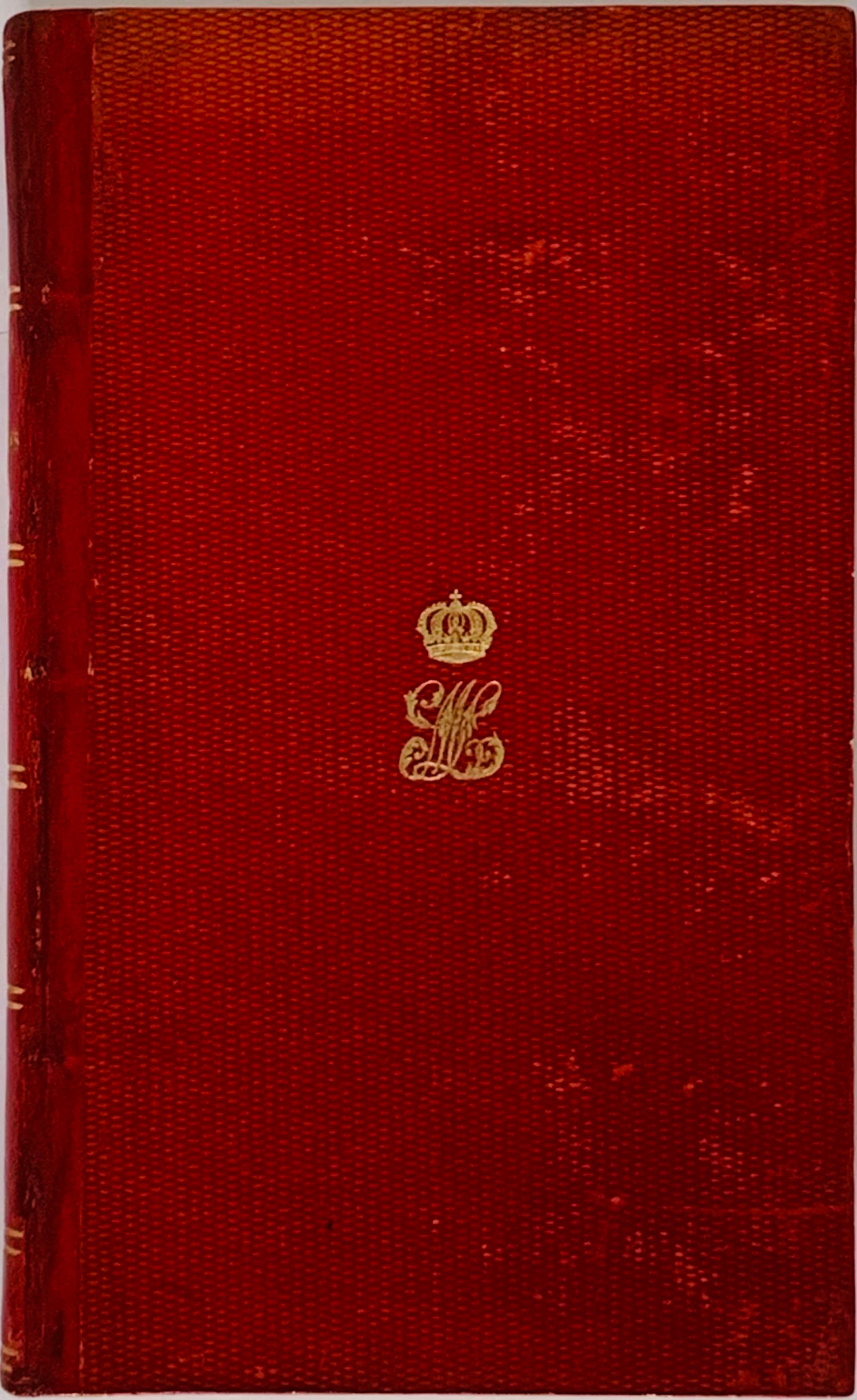 Contemporary red half morocco, crowned monogram in gold in the centre of the covers, smooth spine, untrimmed.