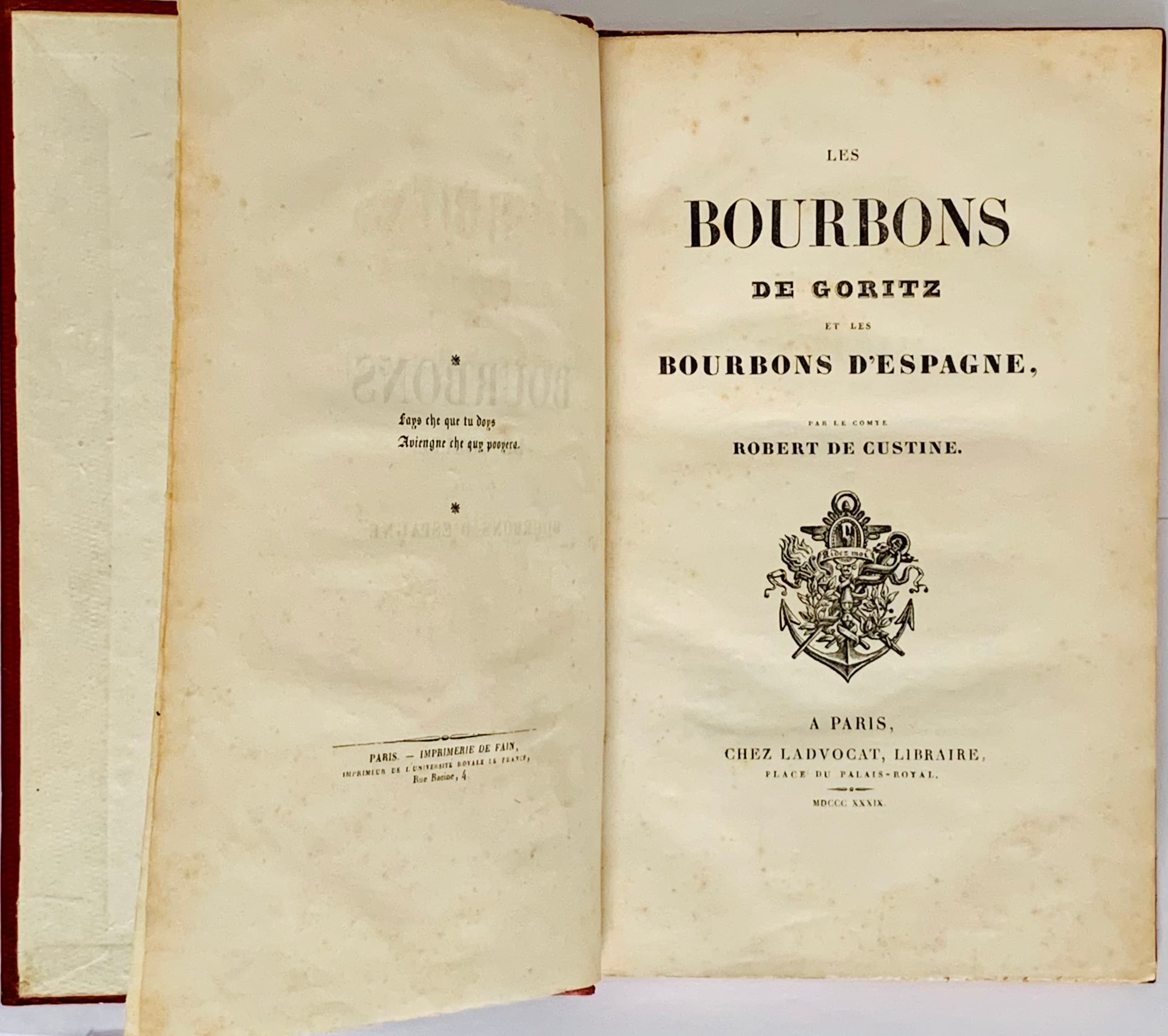 CUSTINE ROBERT DE Les Bourbons de Goritz et les Bourbons d’Espagne. Paris: Ladvocat, 1839.
