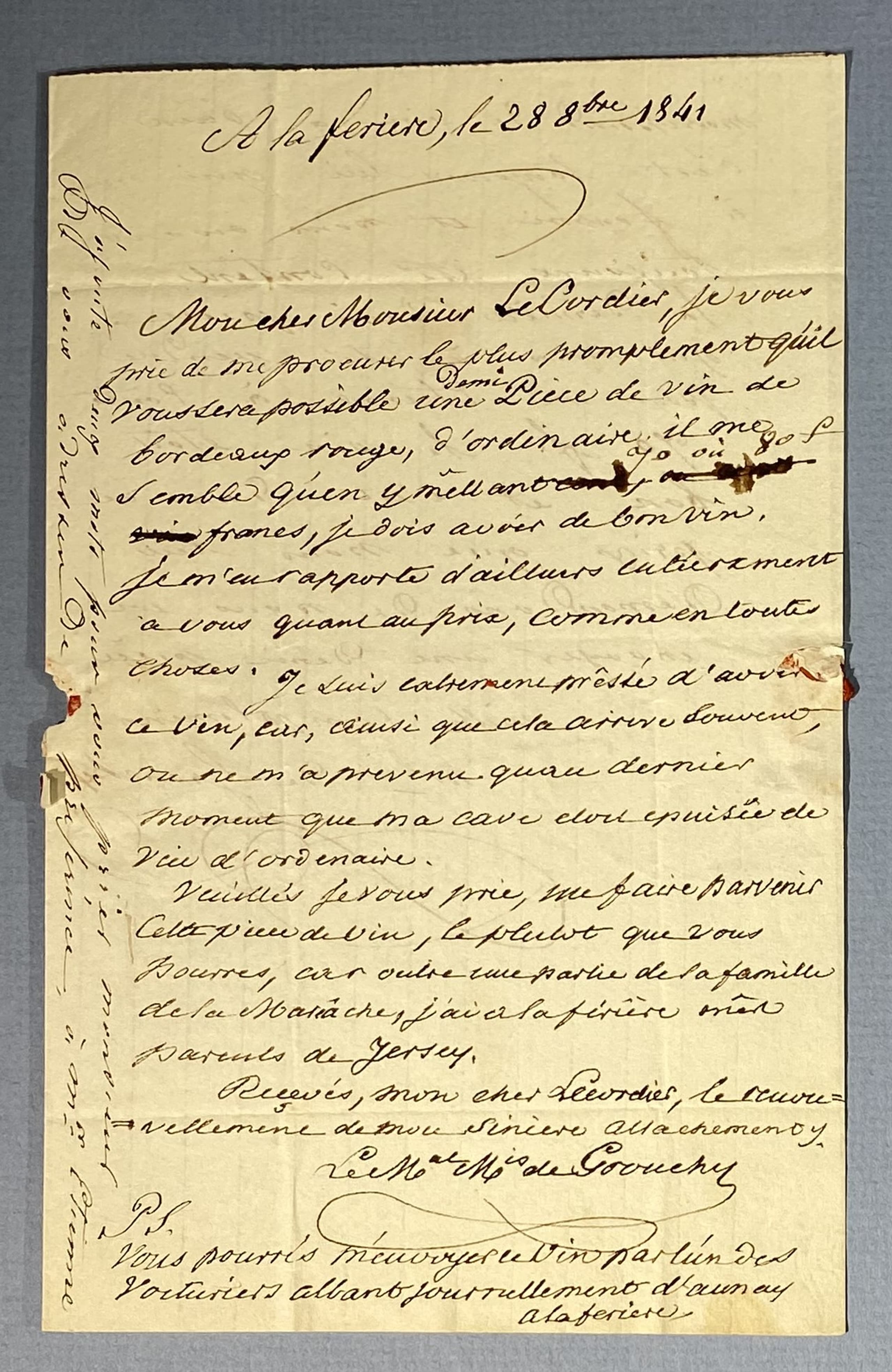 1 letter from his nephew, Ernest Henri De Grouchy, 1830.