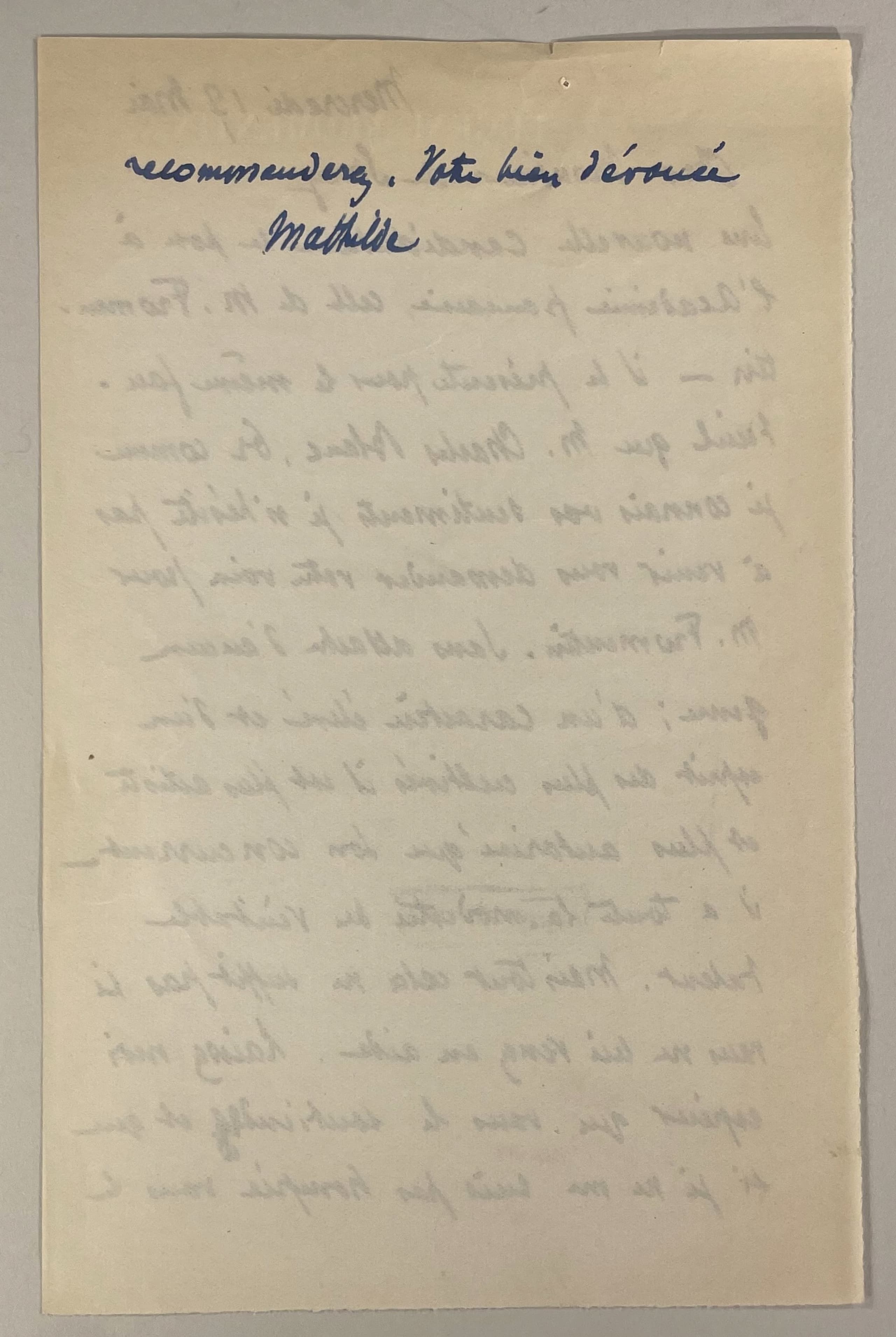 MATHILDE BONAPARTE (1820-1904) Autograph letter signed 'Mathide' to Sylvestre de Sacy, Wednesday 17 May