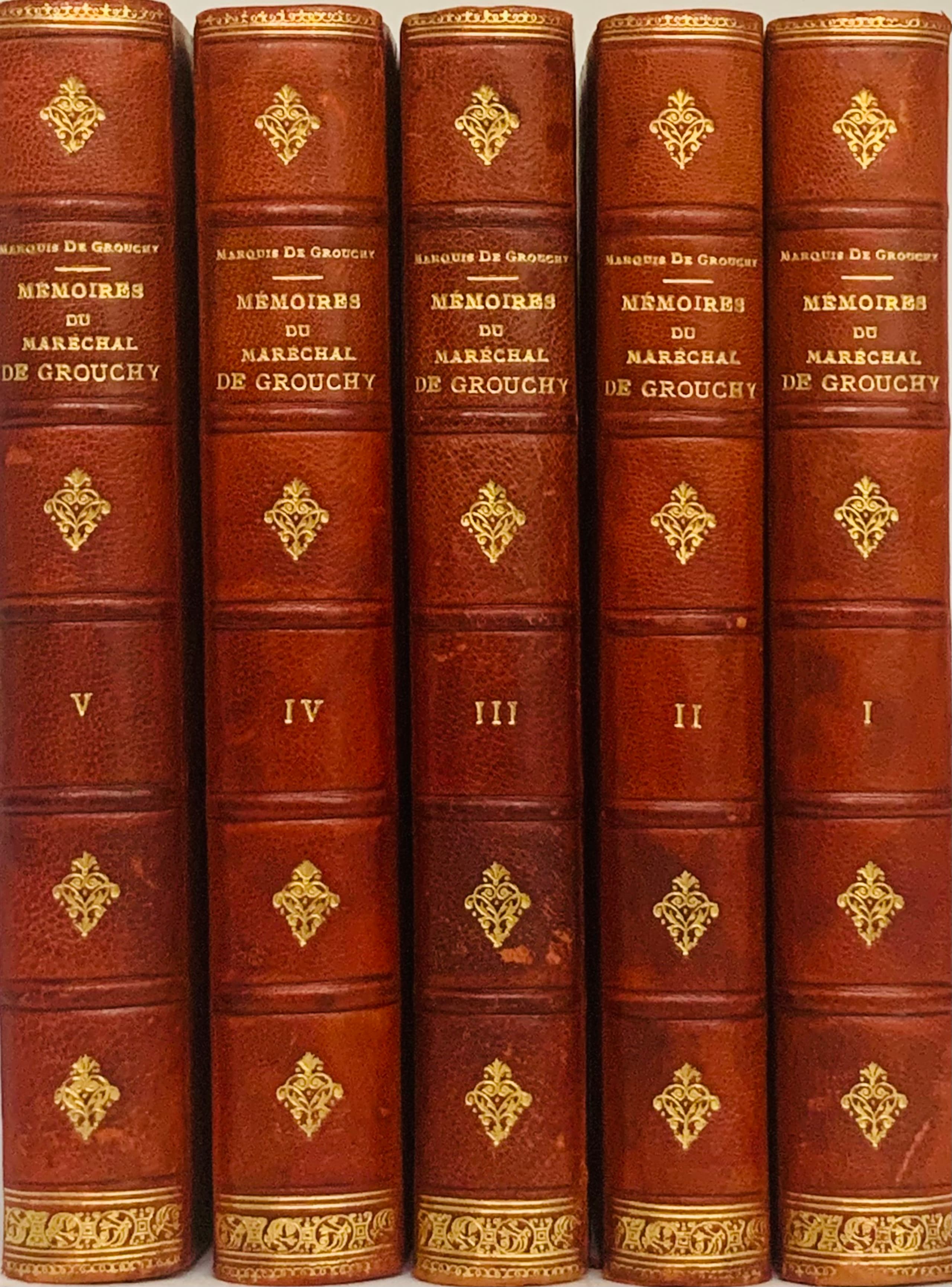First edition of the memoirs of Marshal Emmanuel de Grouchy (1766-1847), compiled by his grandson Emmanuel-Henri de Grouchy from documents and correspondence left by his grandfather. ‘This is a complete history of the Marshal’s life. It brings together all the important official and other documents... [which] may shed new light on the history of the Vendée, the Irish expedition, and the campaigns of the Empire from 1805 to the Second Restoration.