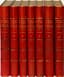 Contemporary red half-leather binding, ribbed spine, marbled edges.