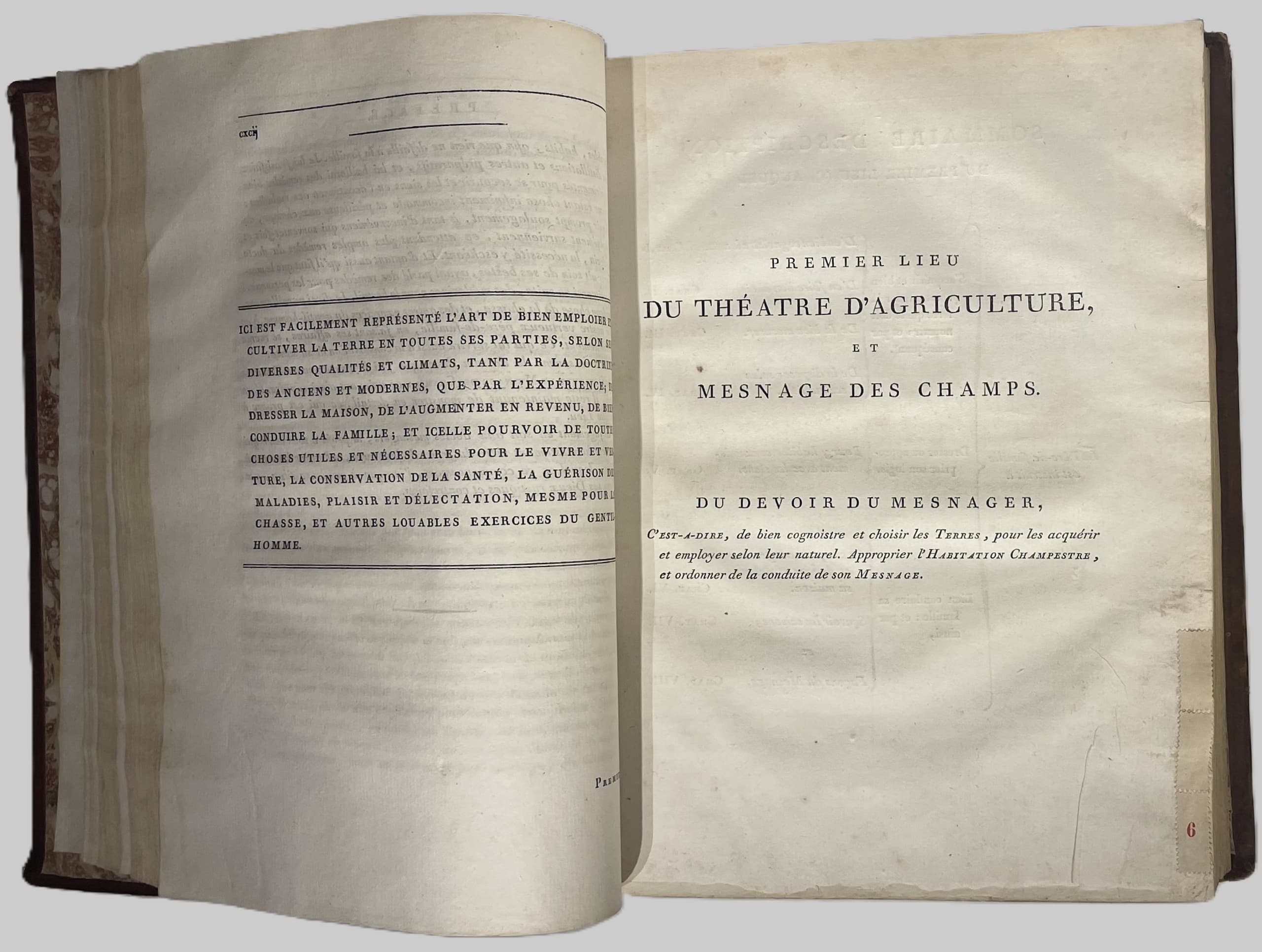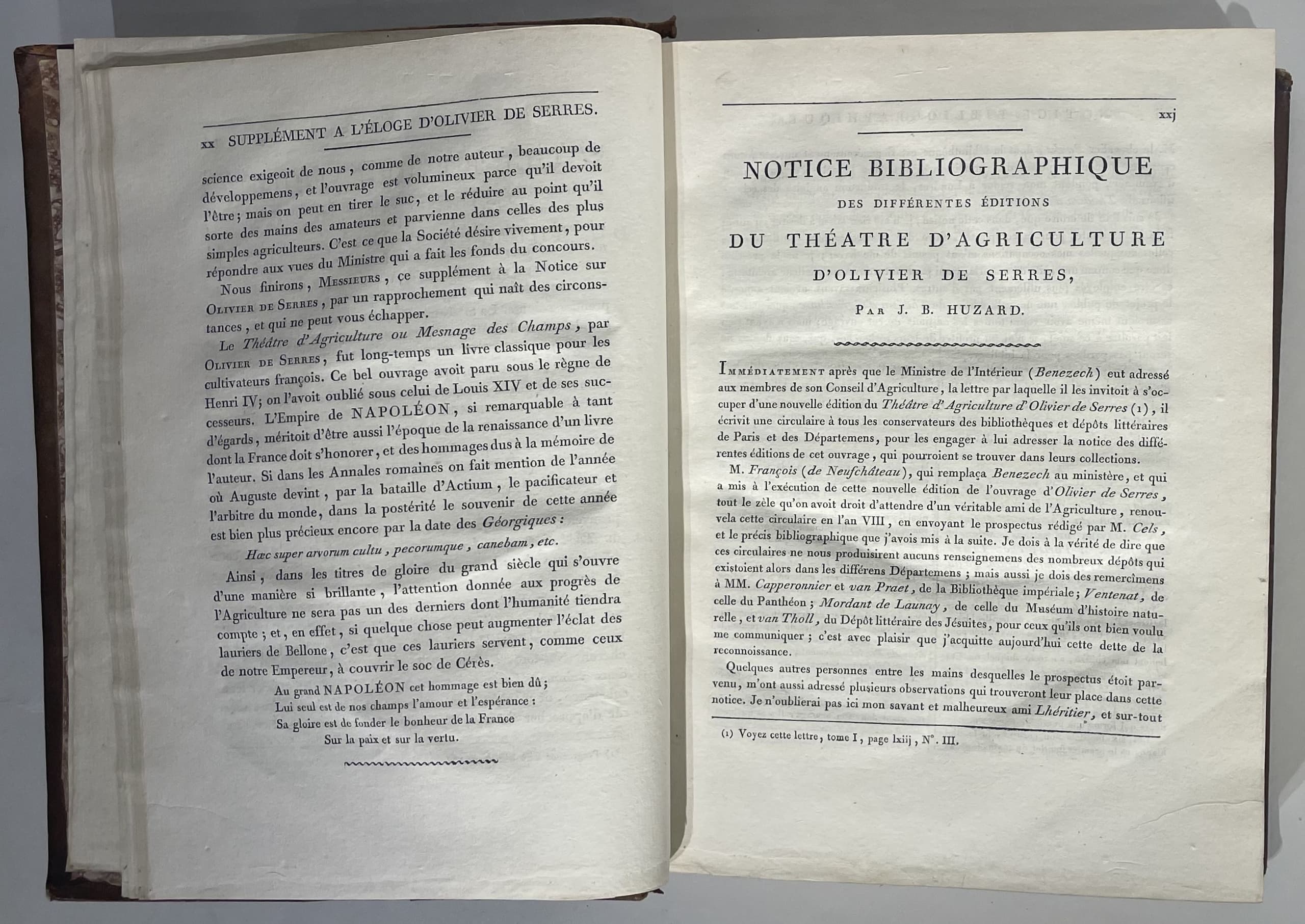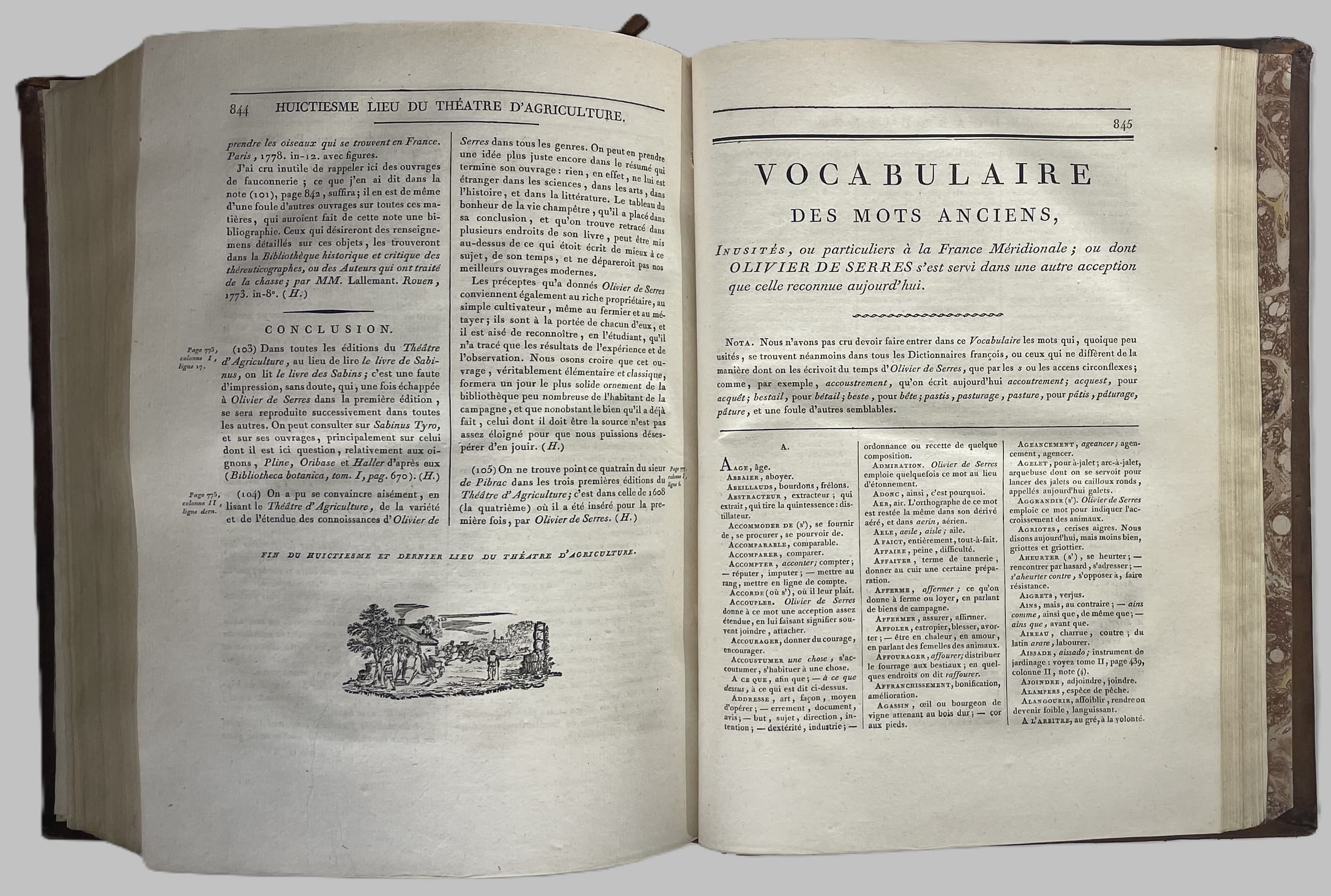 Le Théâtre d’Agriculture et Mesnage des Champs, by Olivier de SERRES, Lord of Pradel; In which is represented everything that is required and necessary to properly train, govern, enrich and embellish THE RUSTIC HOUSE. New Edition in accordance with the text, augmented with Notes and a vocabulary; published by the Société d’Agriculture du Département de la Seine.
