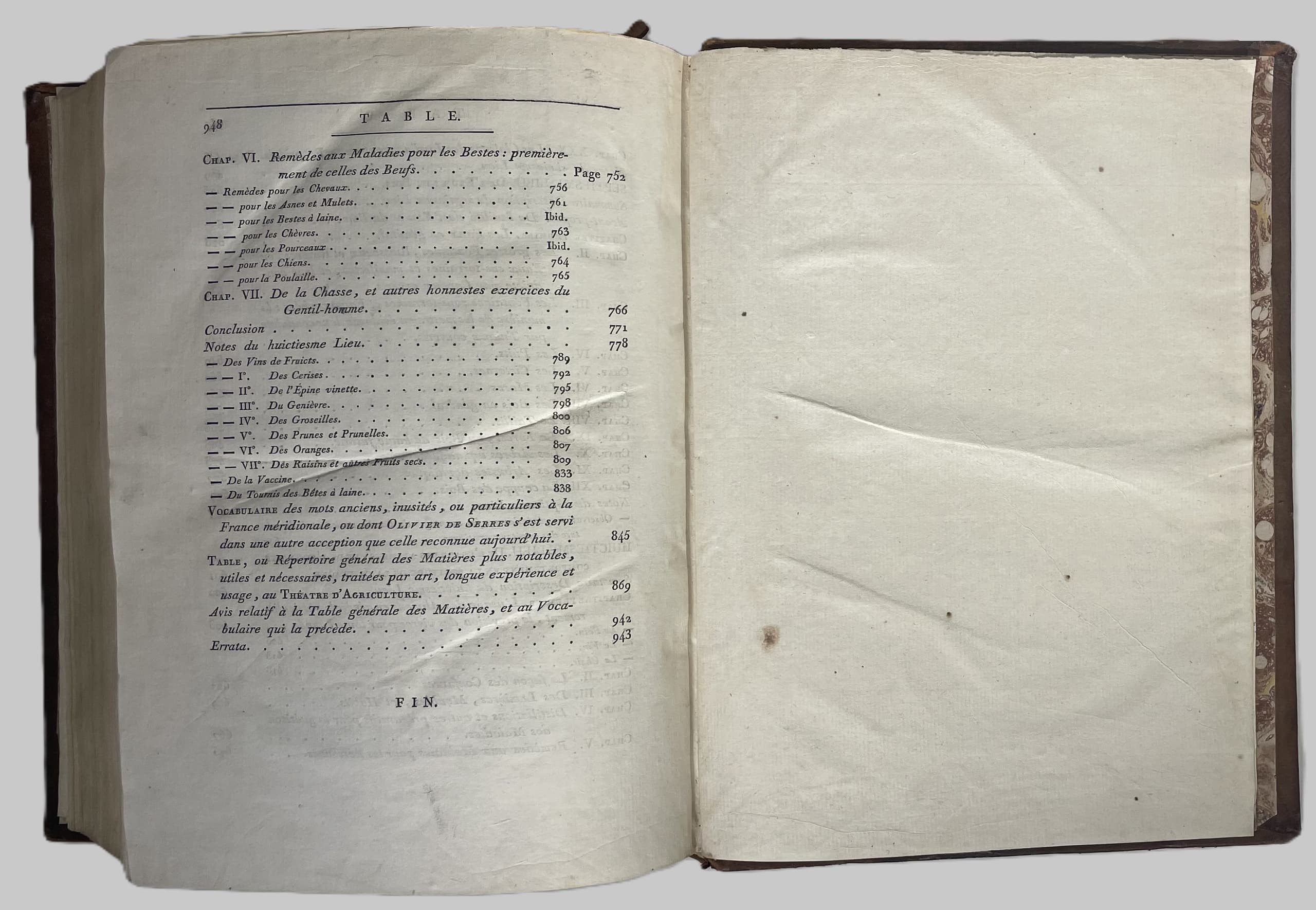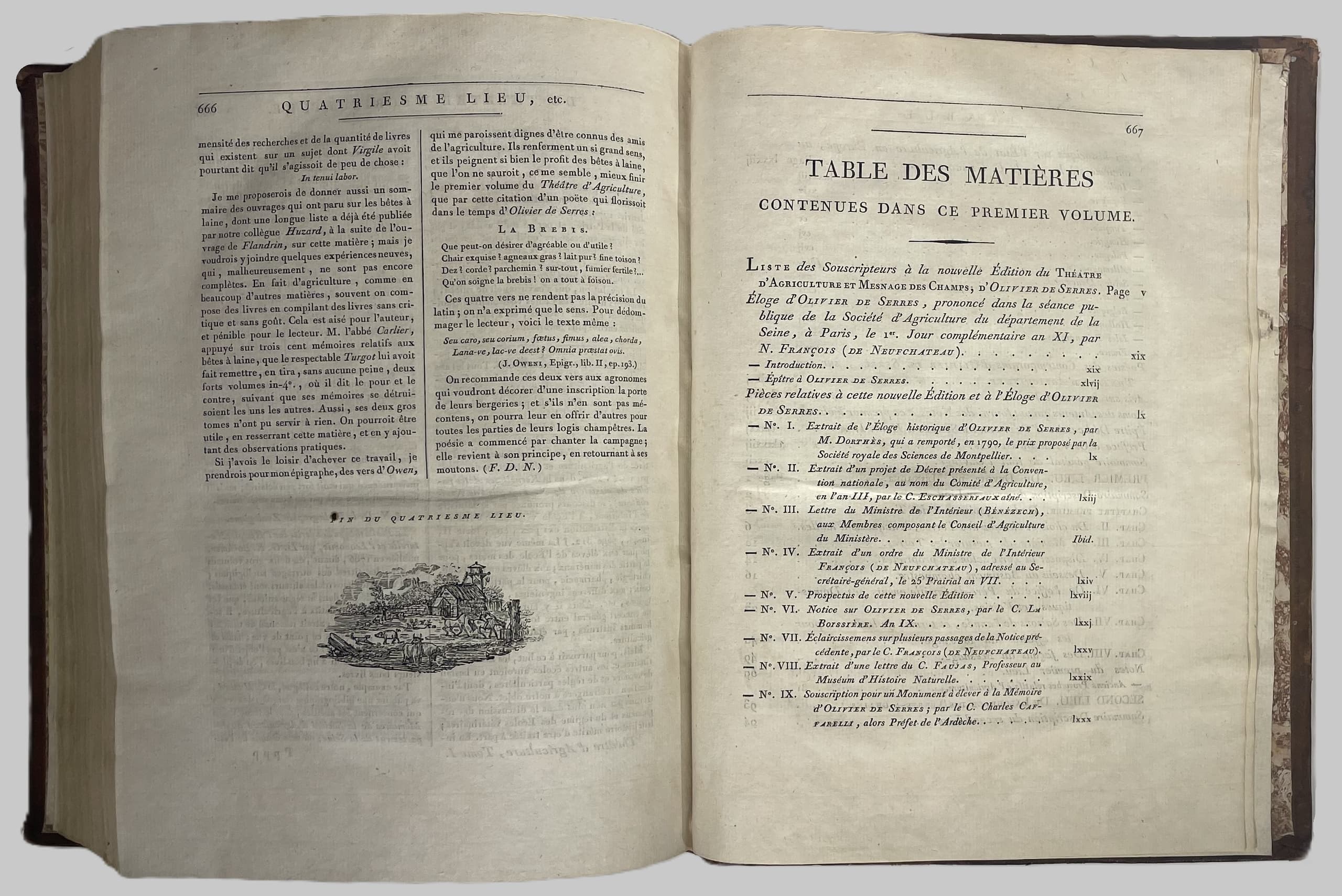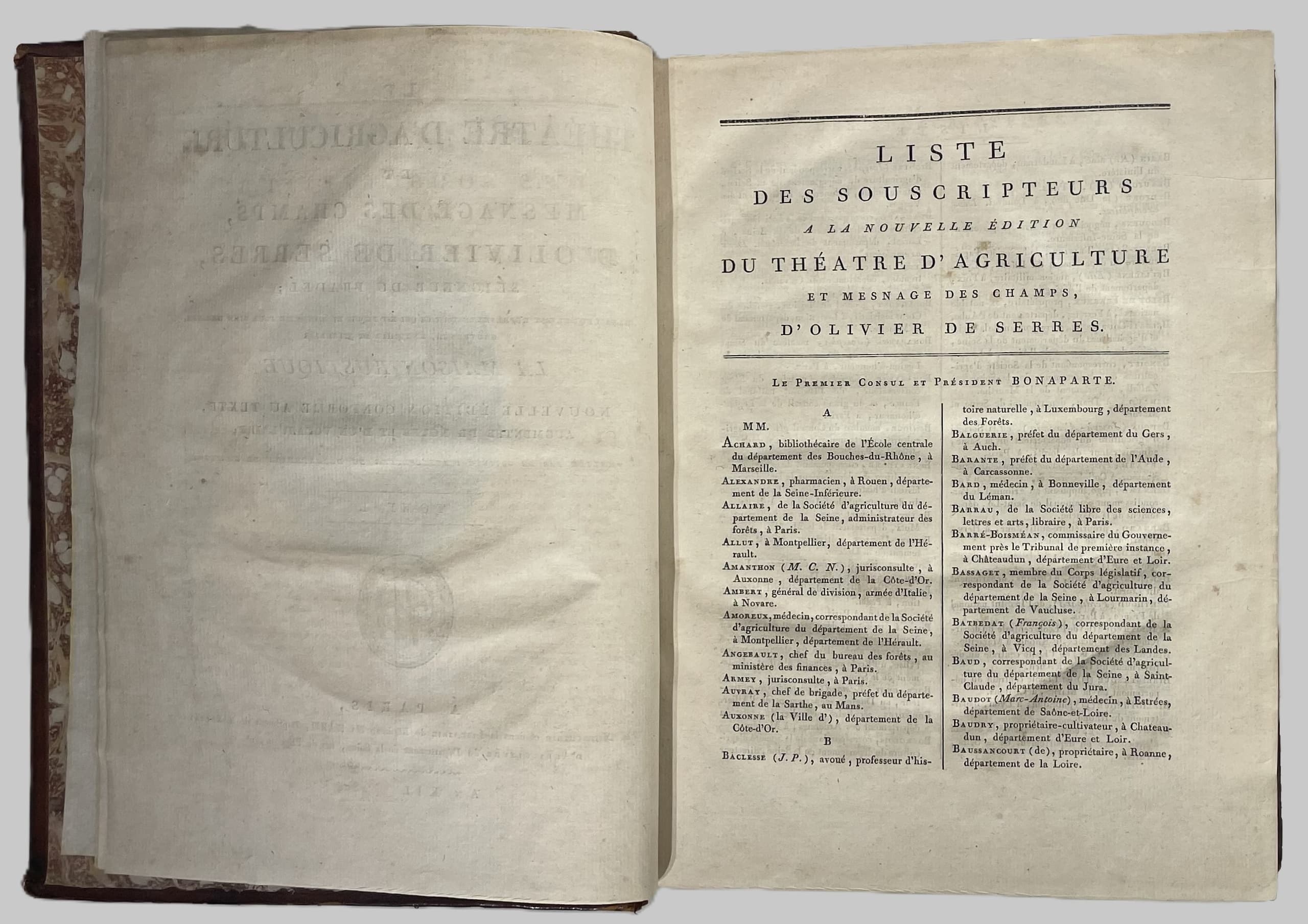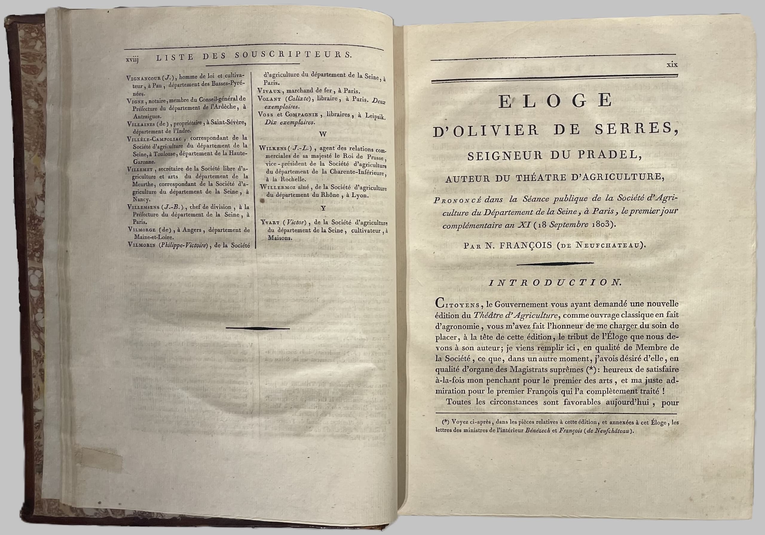 Le Théâtre d’Agriculture et Mesnage des Champs, by Olivier de SERRES, Lord of Pradel; In which is represented everything that is required and necessary to properly train, govern, enrich and embellish THE RUSTIC HOUSE. New Edition in accordance with the text, augmented with Notes and a vocabulary; published by the Société d’Agriculture du Département de la Seine.