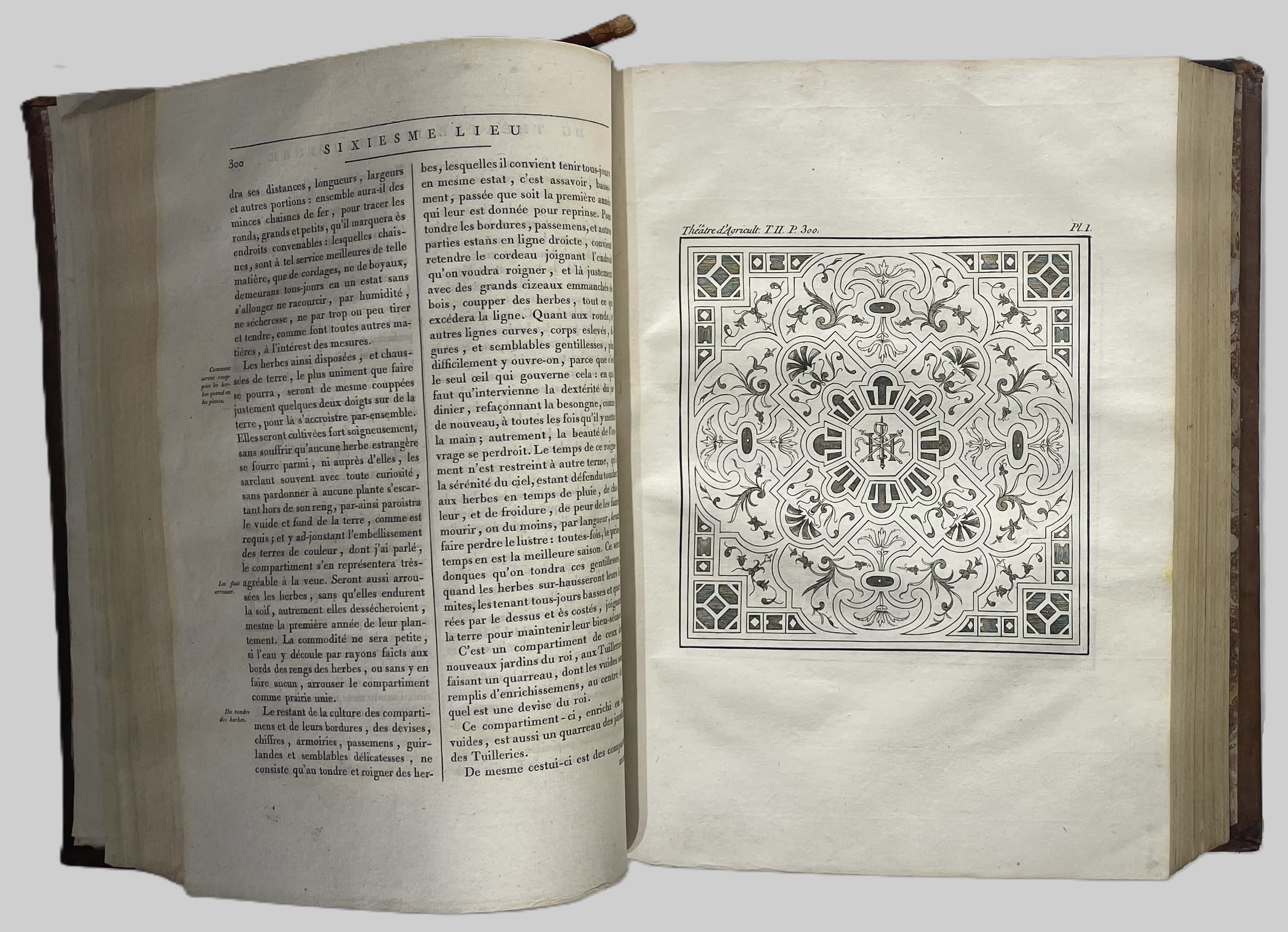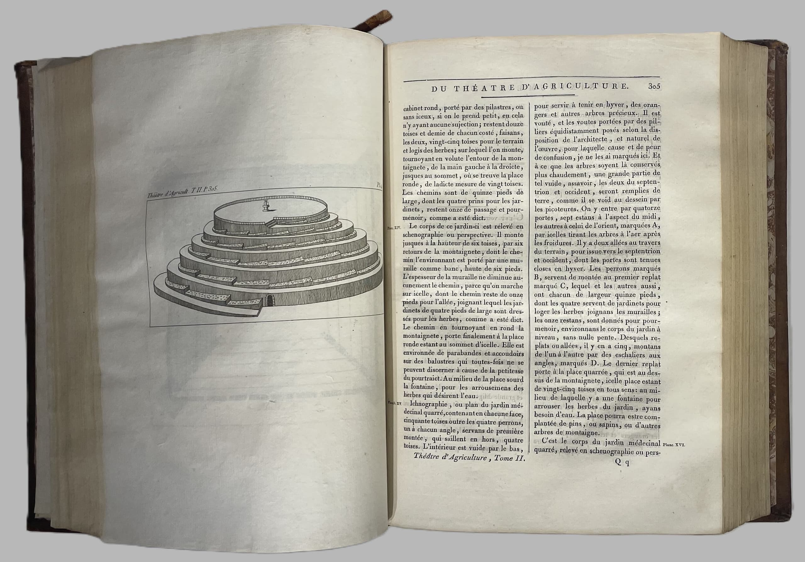 Complete work by: Obelisk erected in memory of the author in Villeneuve-de-Berg (his hometown), on the frontispiece, 16 engraved plates depicting flowerbeds and garden plans, including 12 plates (1-2-3-12-11-10-9-8-7-6-5-4) between pp. 300 and 301 and 4 plates (13-16-15-14) between pp. 304 and 305.