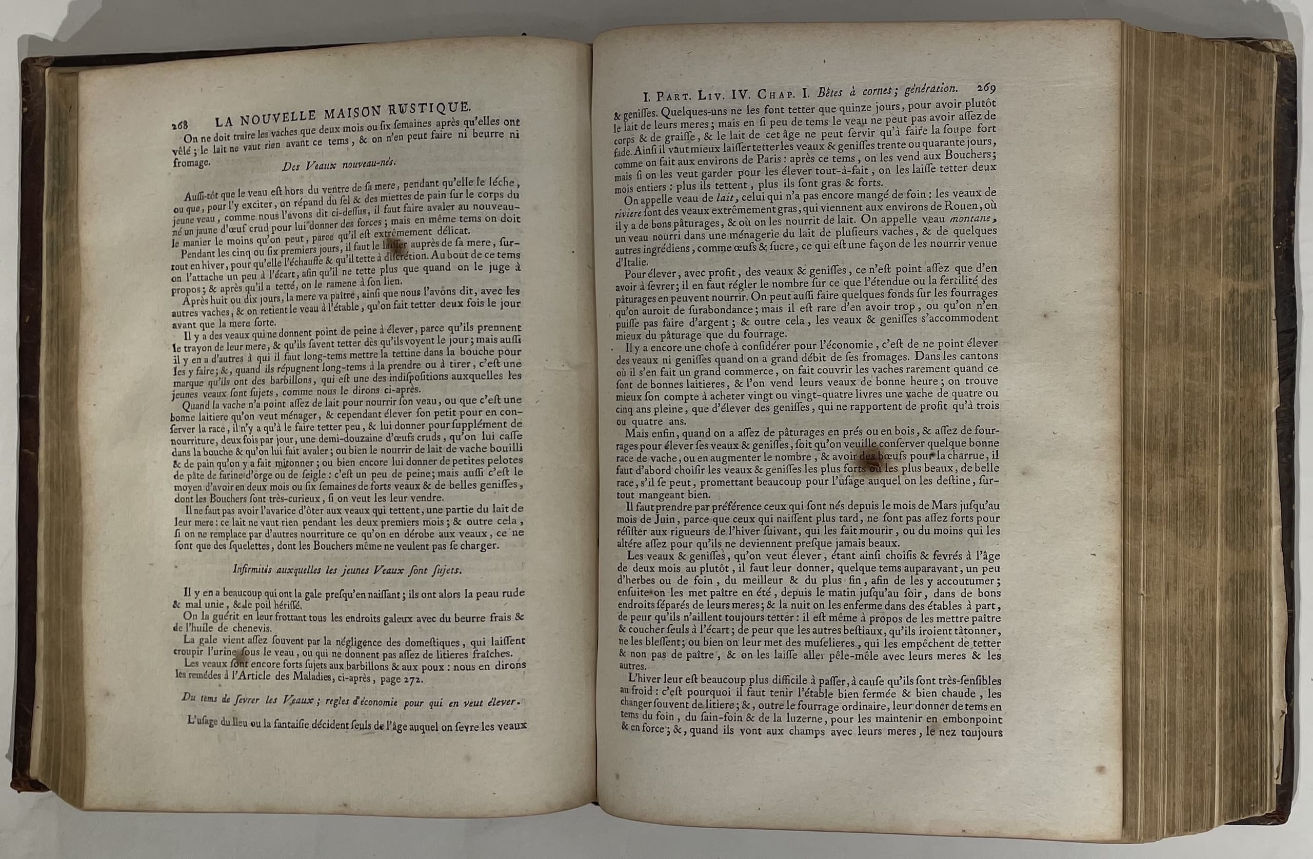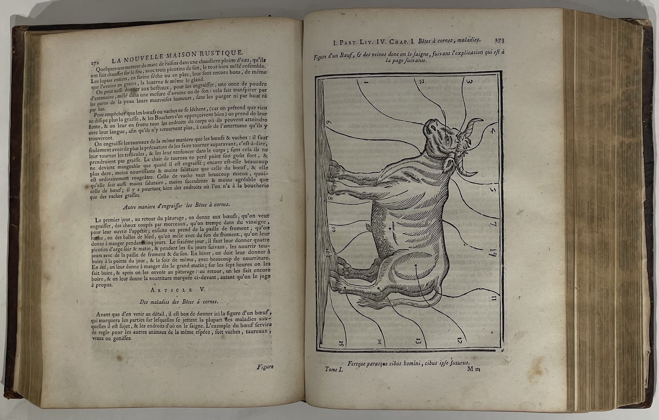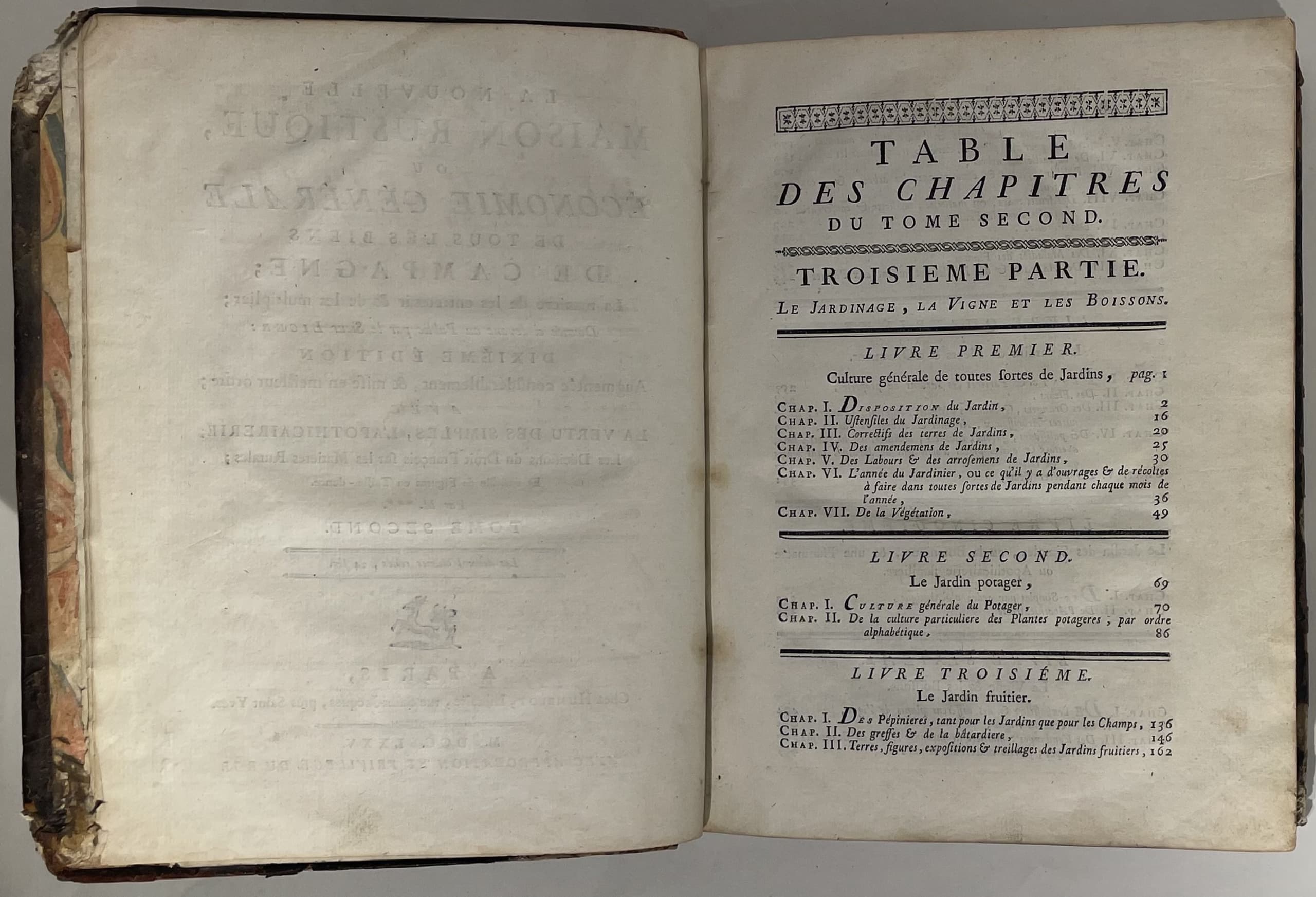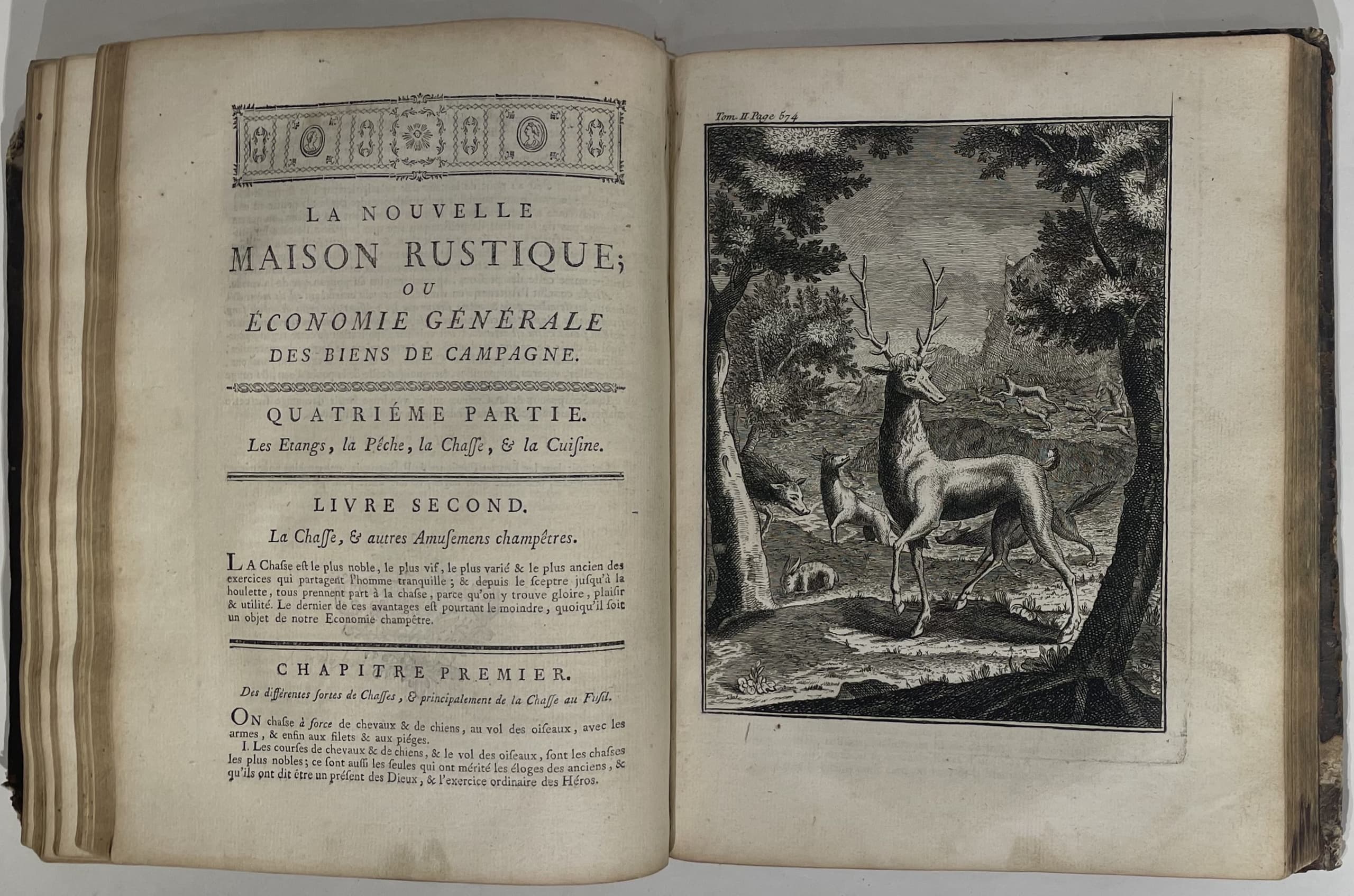 LOUIS LIGER (1658-1717) LA NOUVELLE MAISON RUSTIQUE, OU ÉCONOMIE GÉNÉRALE DE TOUS LES BIENS DE CAMPAGNE [THE NEW RUSTIC HOUSE, OR GENERAL ECONOMICS OF ALL COUNTRY PROPERTIES] 2 VOLUMES. 1775. IN FRENCH.