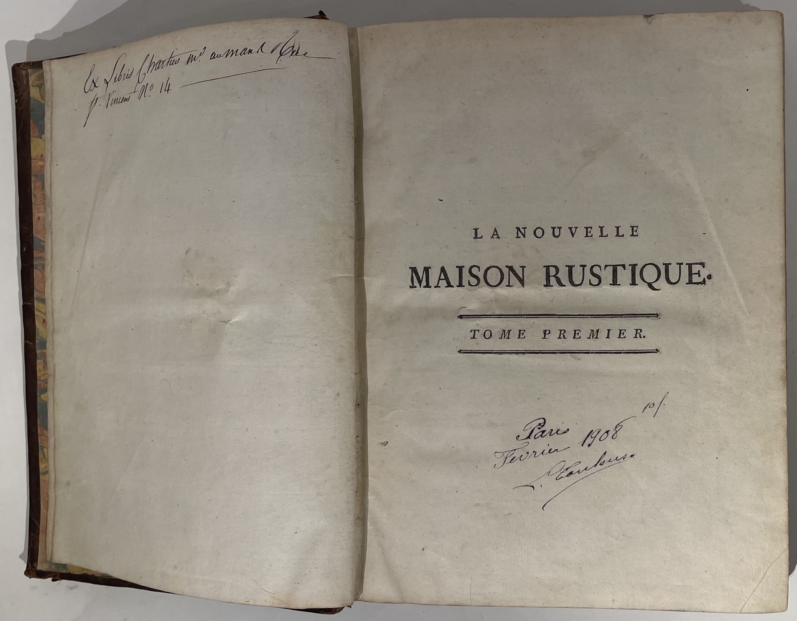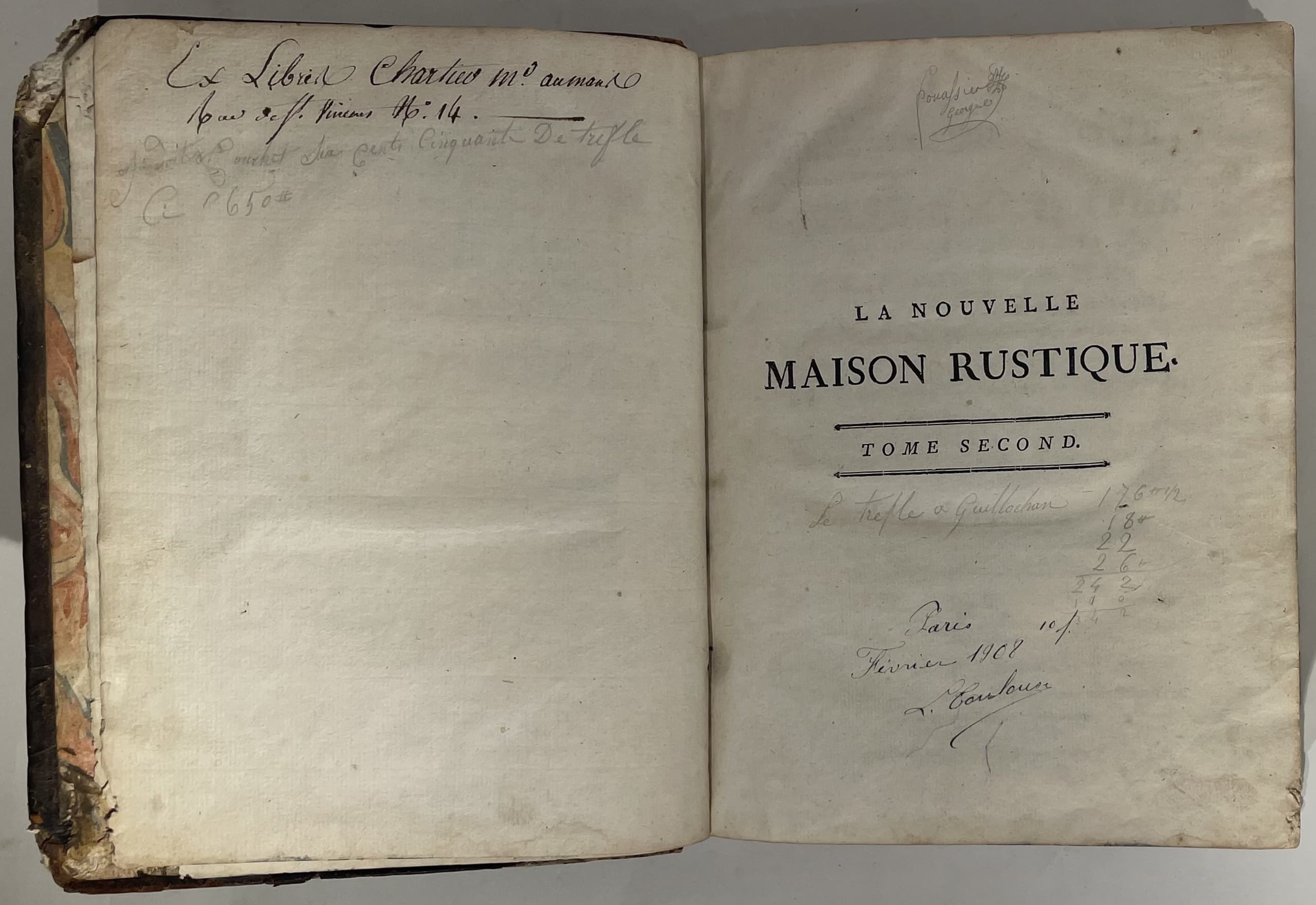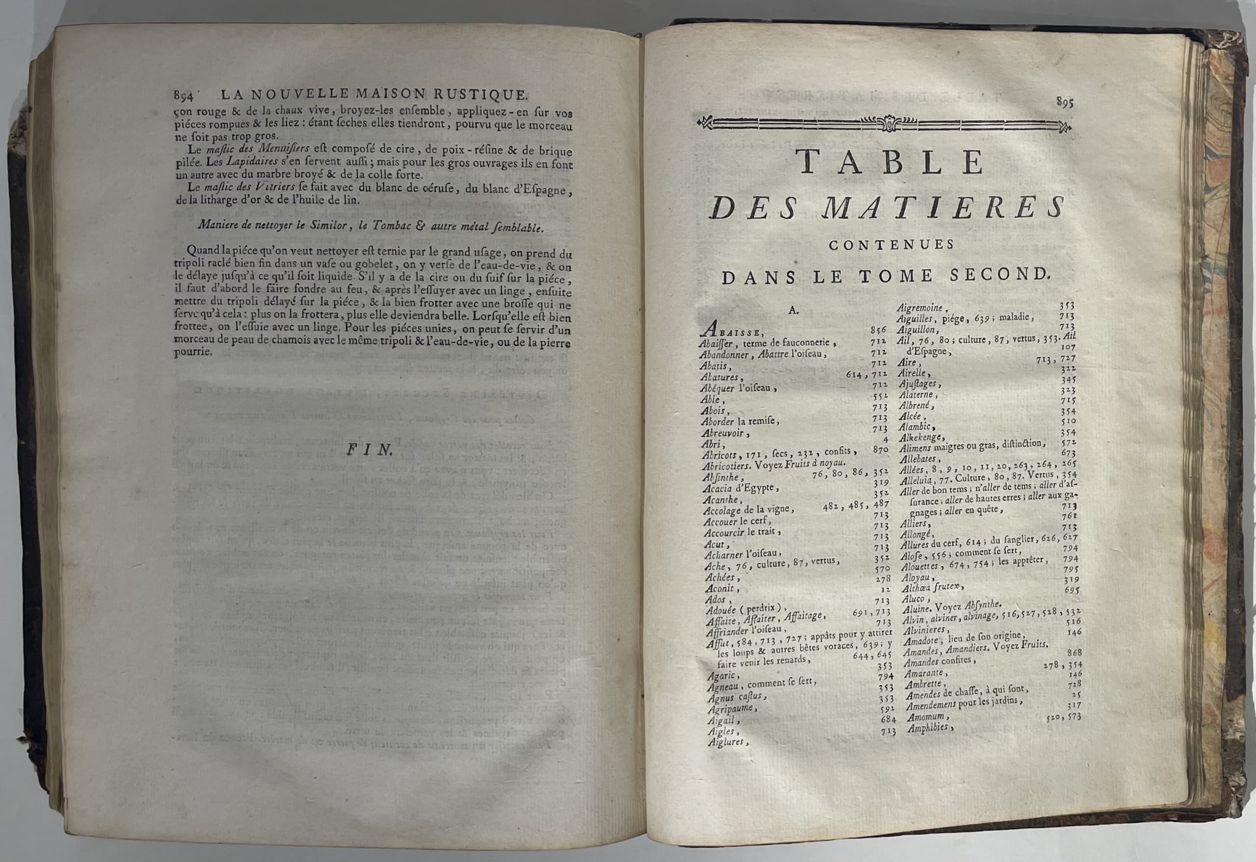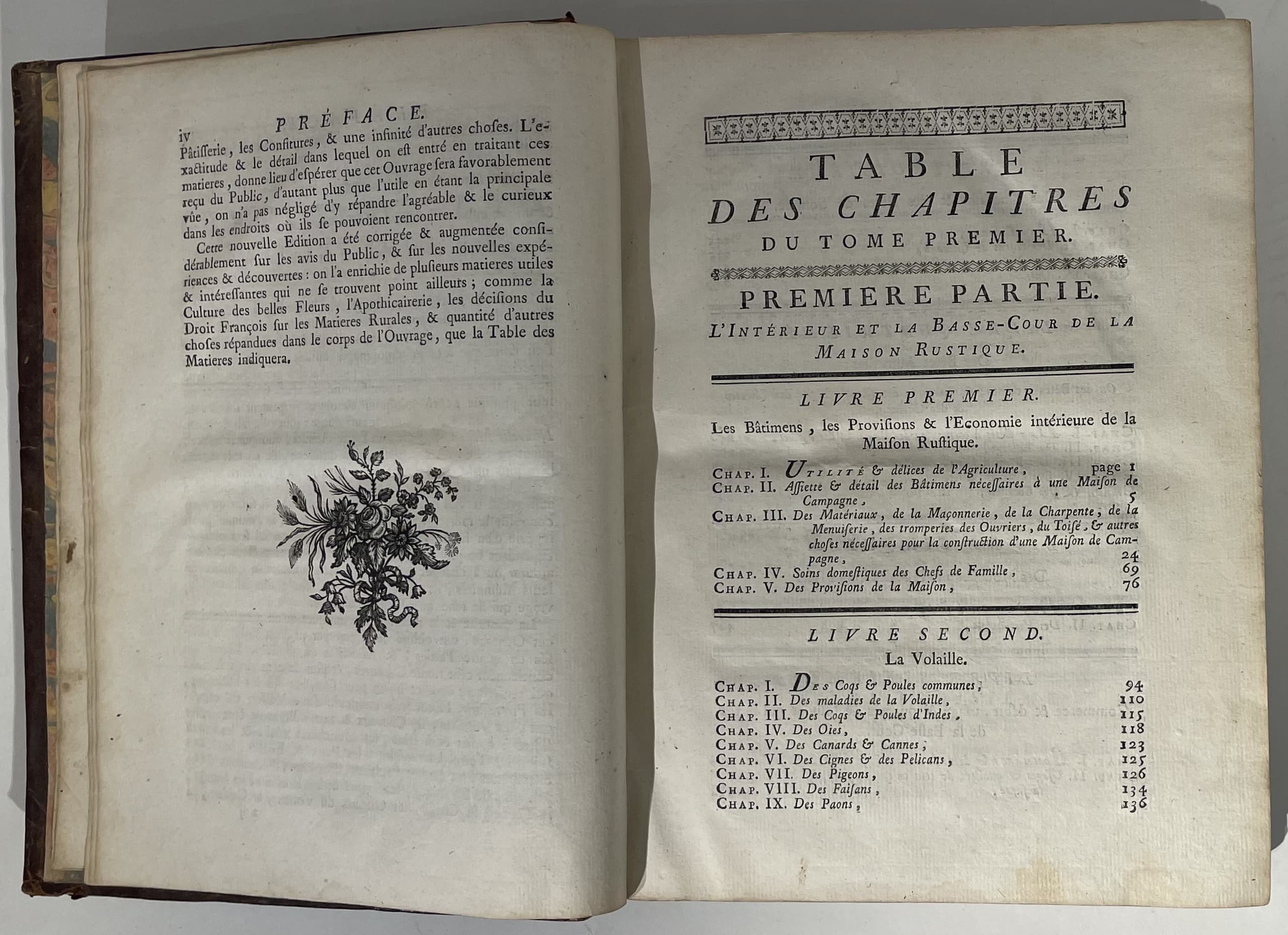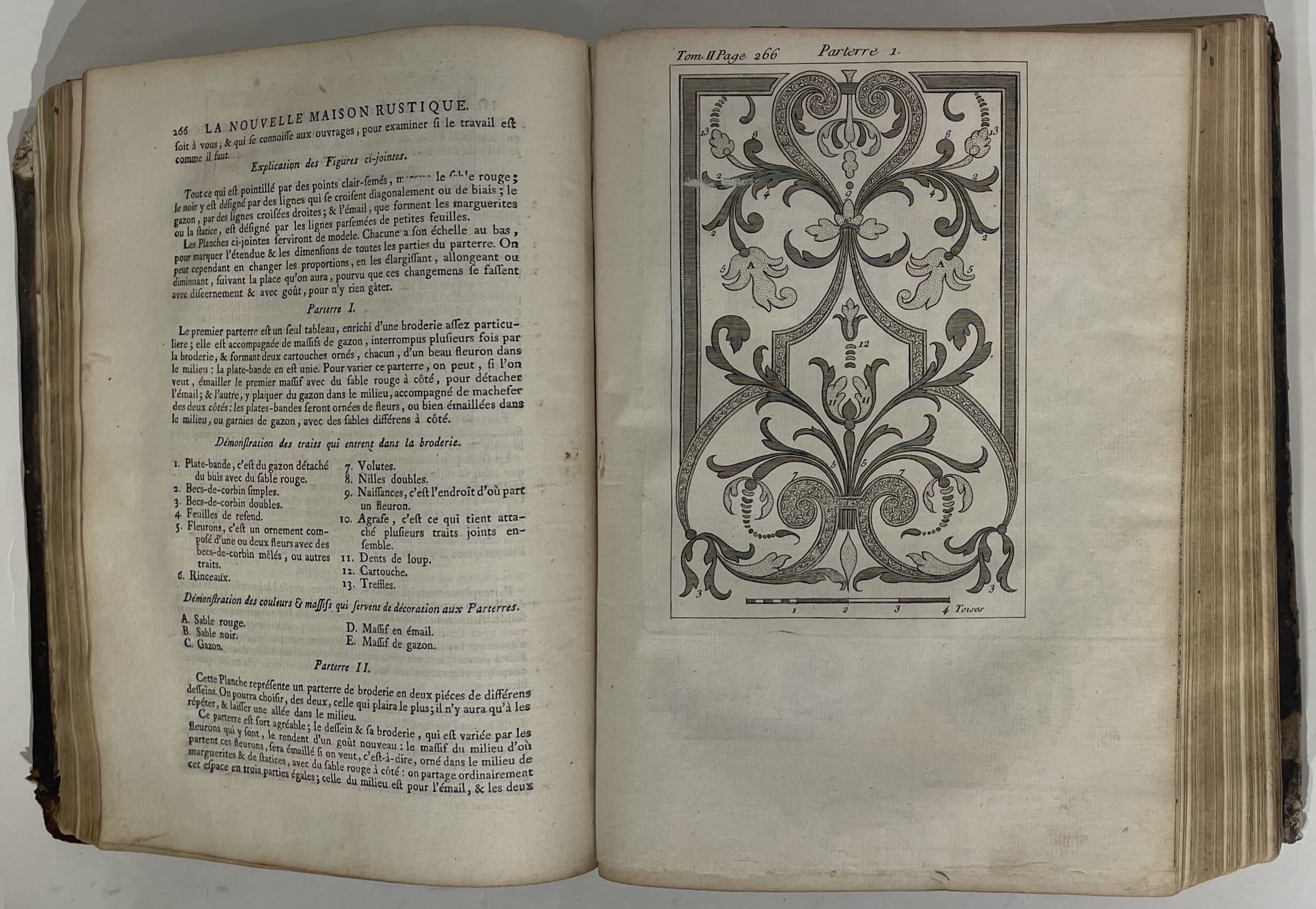 LOUIS LIGER (1658-1717) LA NOUVELLE MAISON RUSTIQUE, OU ÉCONOMIE GÉNÉRALE DE TOUS LES BIENS DE CAMPAGNE [THE NEW RUSTIC HOUSE, OR GENERAL ECONOMICS OF ALL COUNTRY PROPERTIES] 2 VOLUMES. 1775. IN FRENCH.
