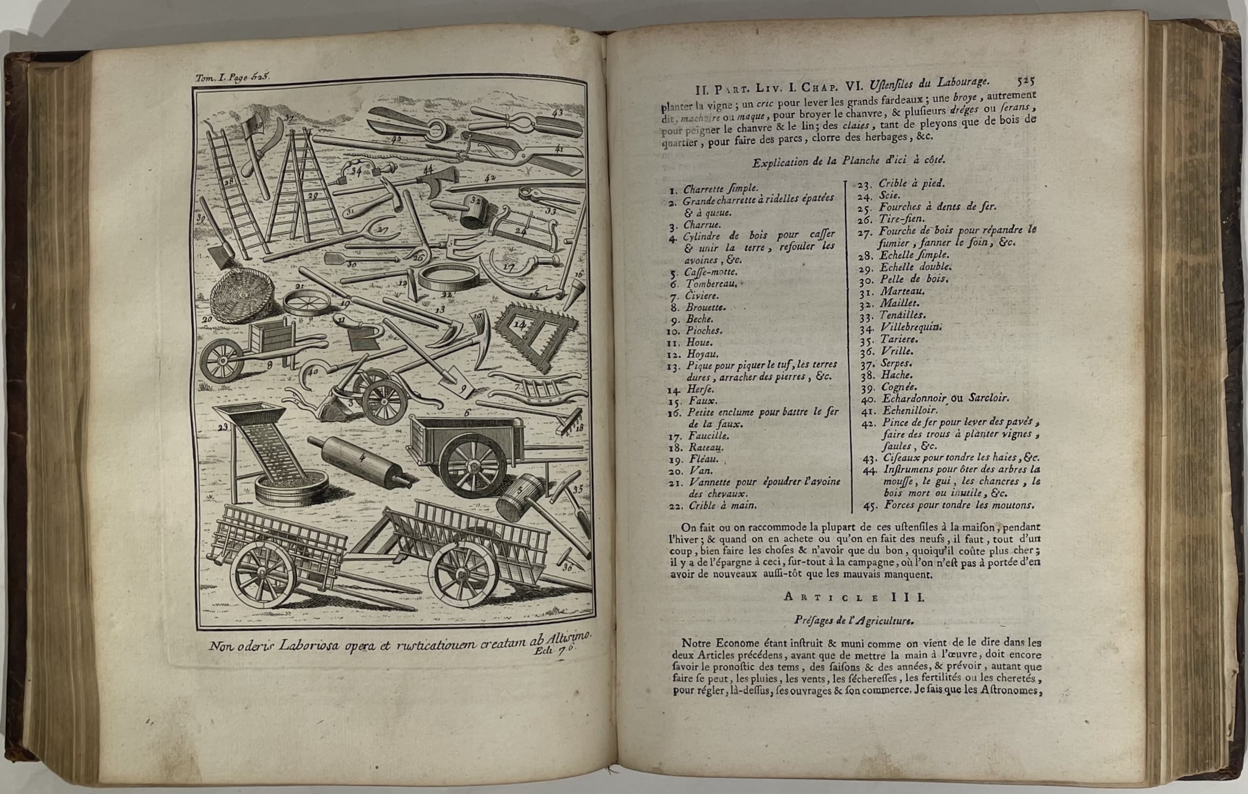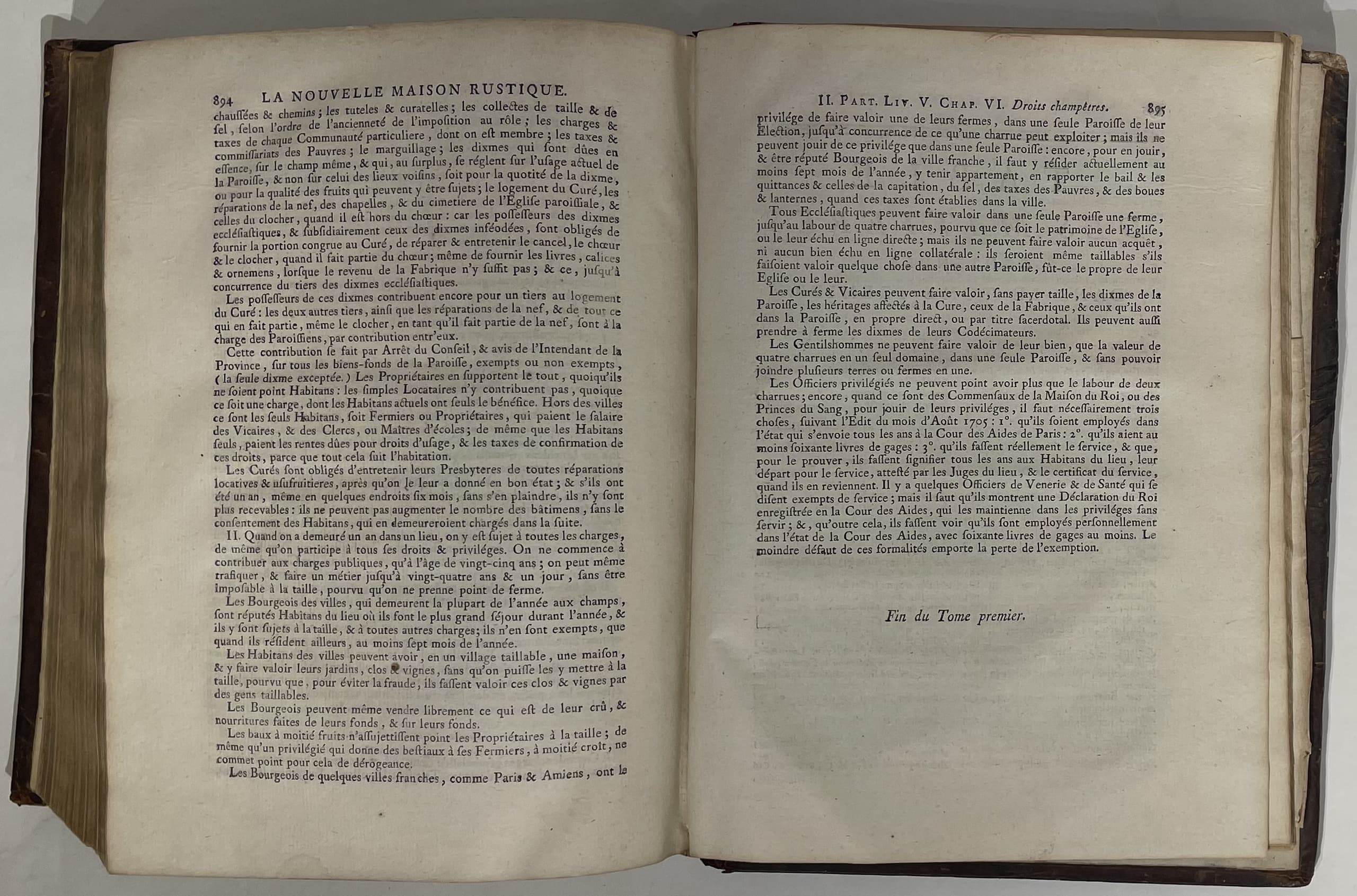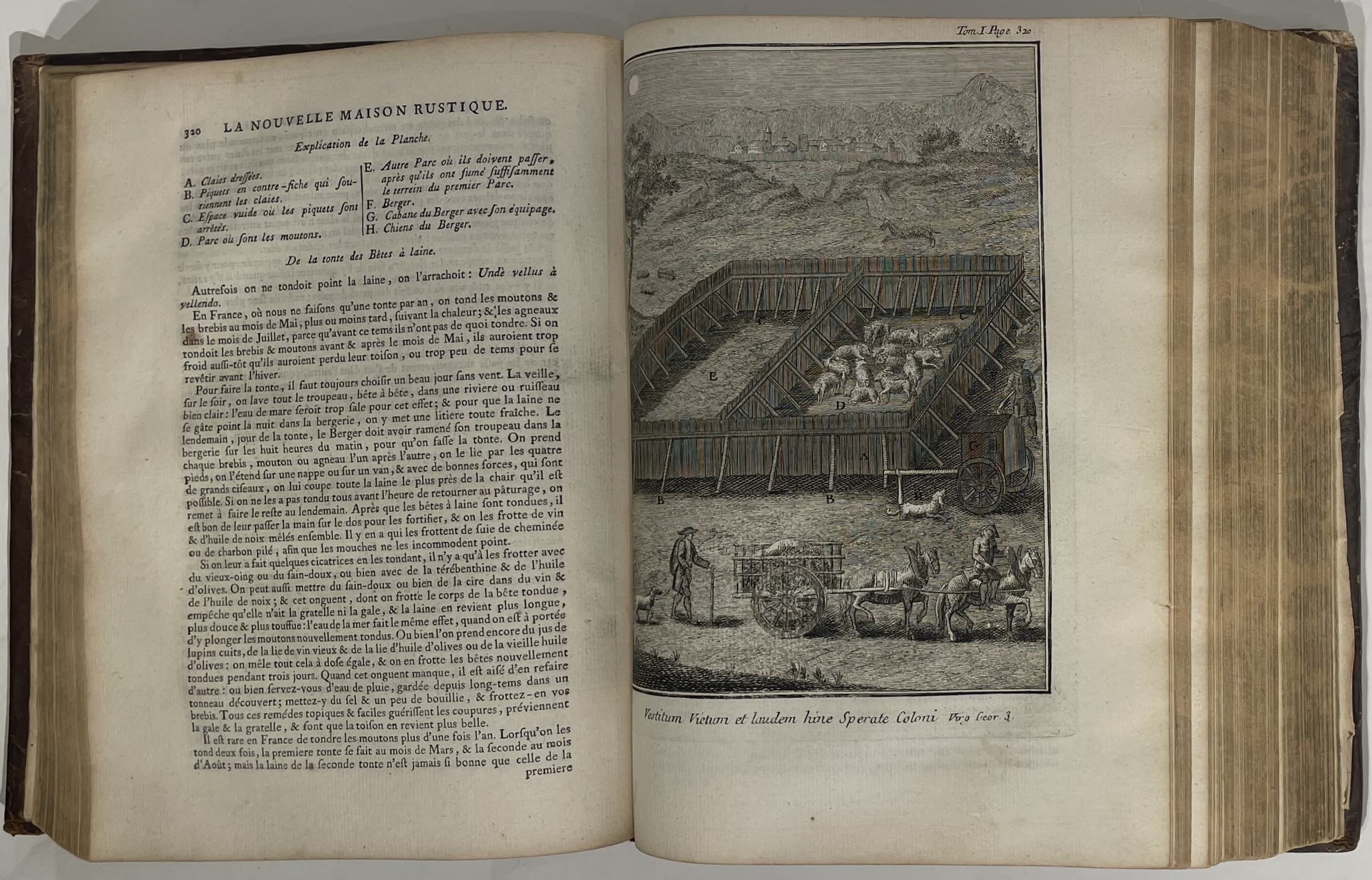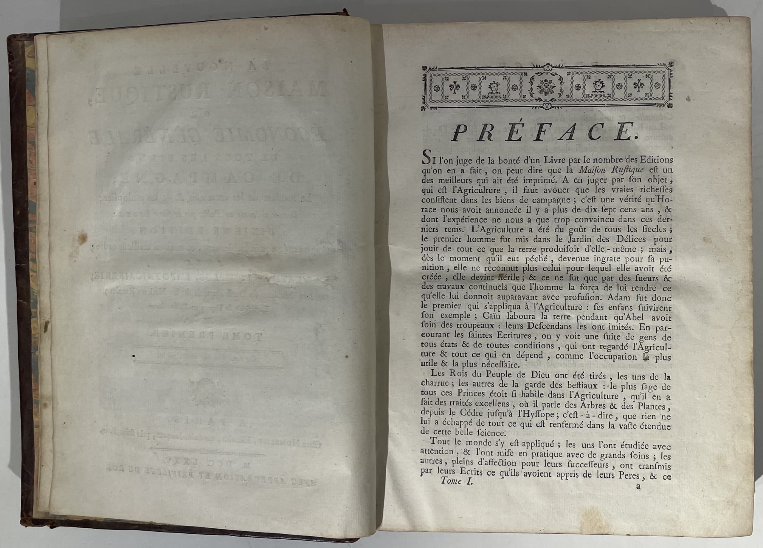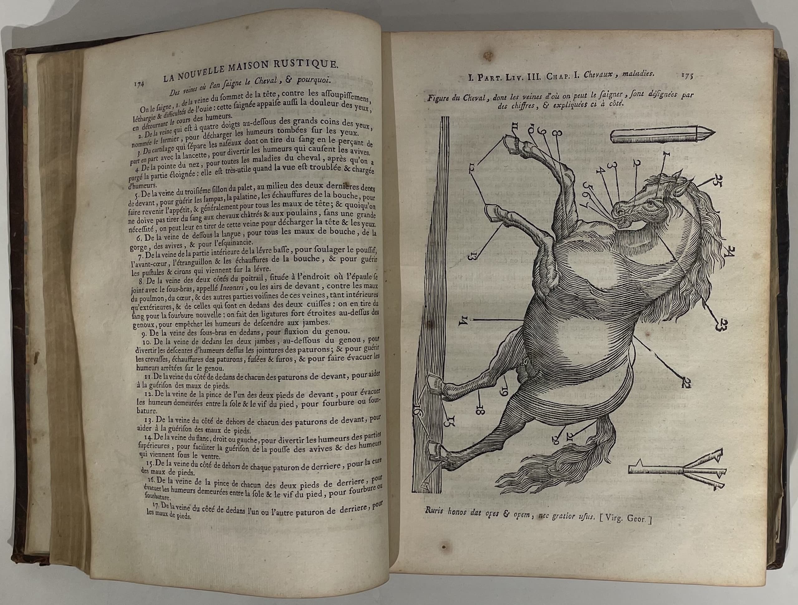 LOUIS LIGER (1658-1717) LA NOUVELLE MAISON RUSTIQUE, OU ÉCONOMIE GÉNÉRALE DE TOUS LES BIENS DE CAMPAGNE [THE NEW RUSTIC HOUSE, OR GENERAL ECONOMICS OF ALL COUNTRY PROPERTIES] 2 VOLUMES. 1775. IN FRENCH.