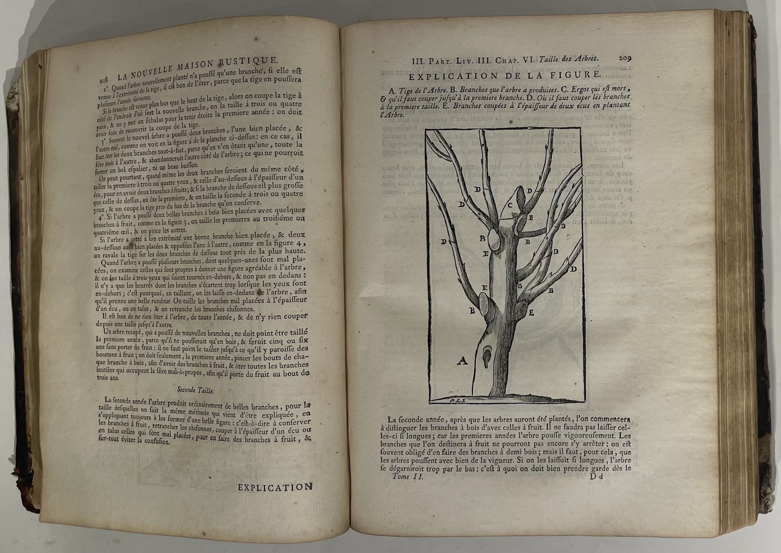 ‘La Nouvelle Maison Rustique’ covers a wide range of topics related to rural and agricultural life and the management of country properties. It takes a practical approach to all aspects of country life, such as gardens, farmyards, harvests, trees, vines, birds, bees, horses, cooking, fishing, hunting, etc.
