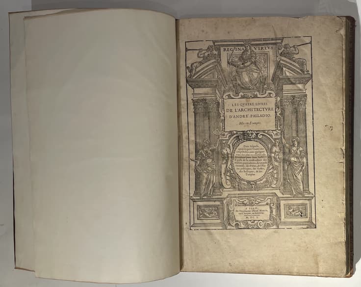 ANDREA PALLADIO (1508-1580) LES QUATRE LIVRES DE L’ARCHITECTURE. [THE FOUR BOOKS OF ARCHITECTURE] Paris, Edme Martin, 1650. ORIGINAL FRENCH EDITION.