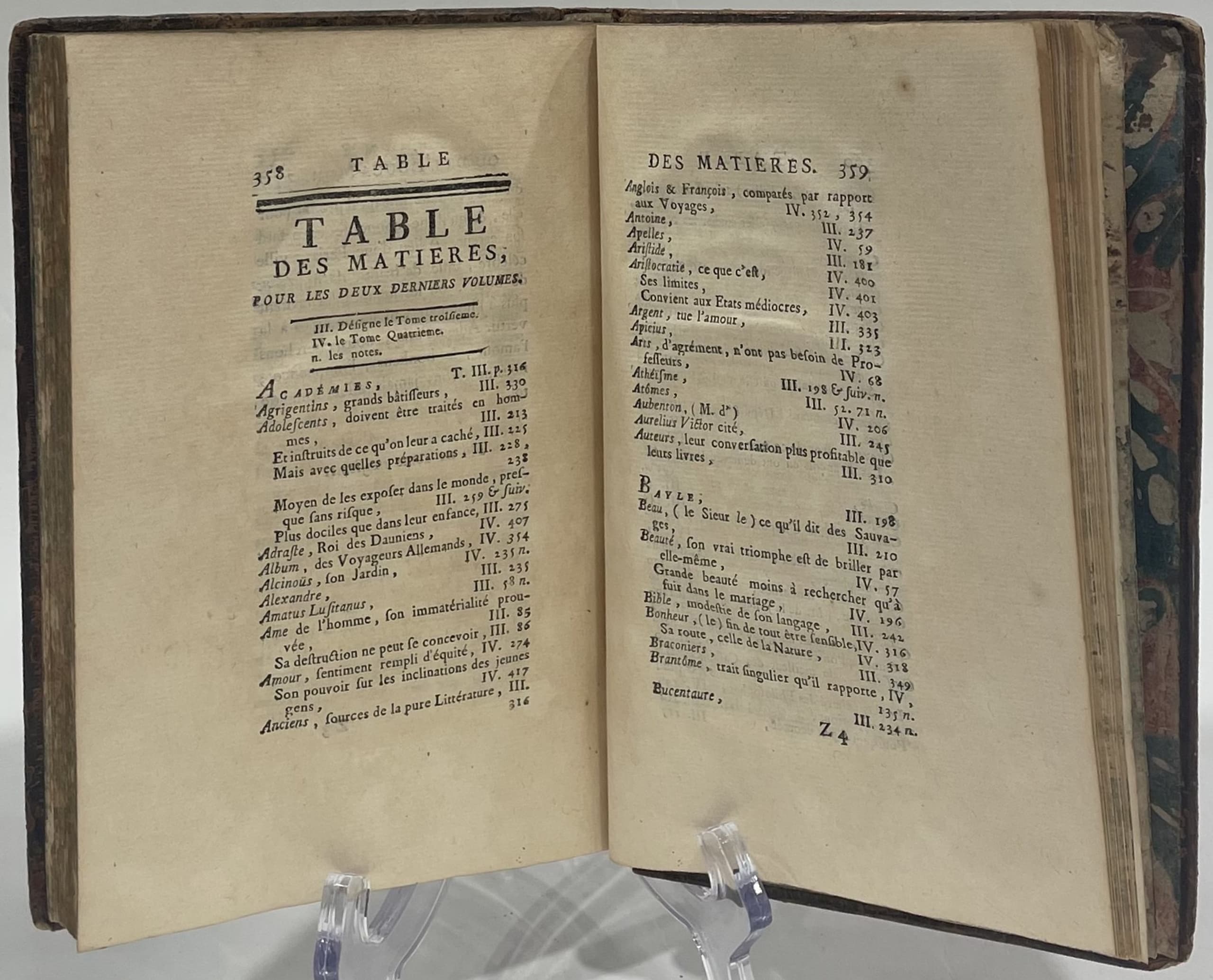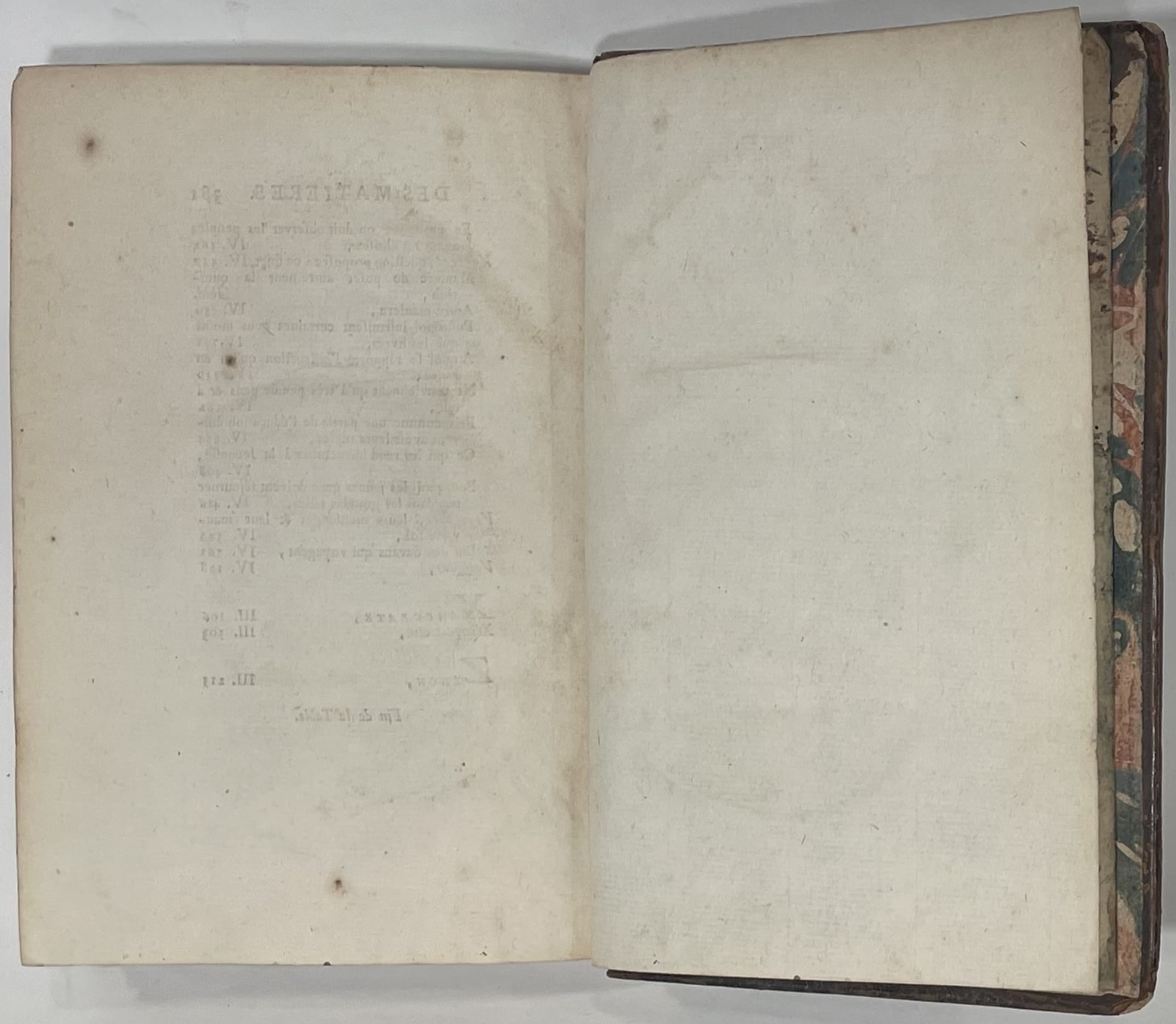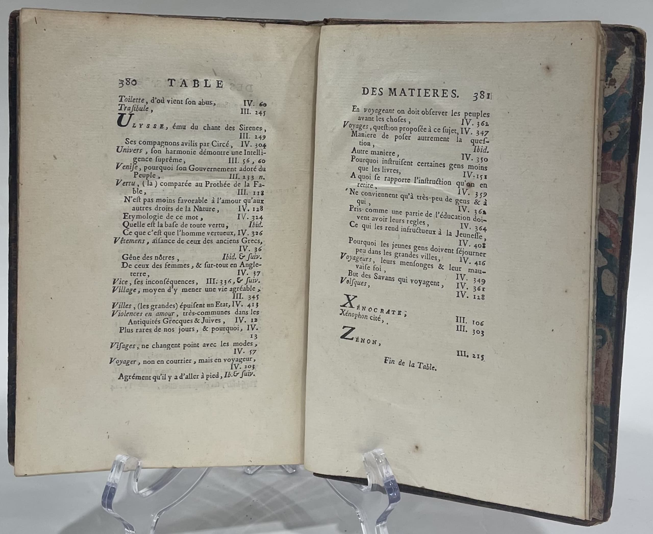 1f. blank, p. half-title, frontispiece ‘Orpheus, Book IV’ (Charles Eisen/Joseph De Longueil), p. title (in red and black), 381 p. including table of contents (Volumes III and IV) p.358 to 381, 1 blank page.