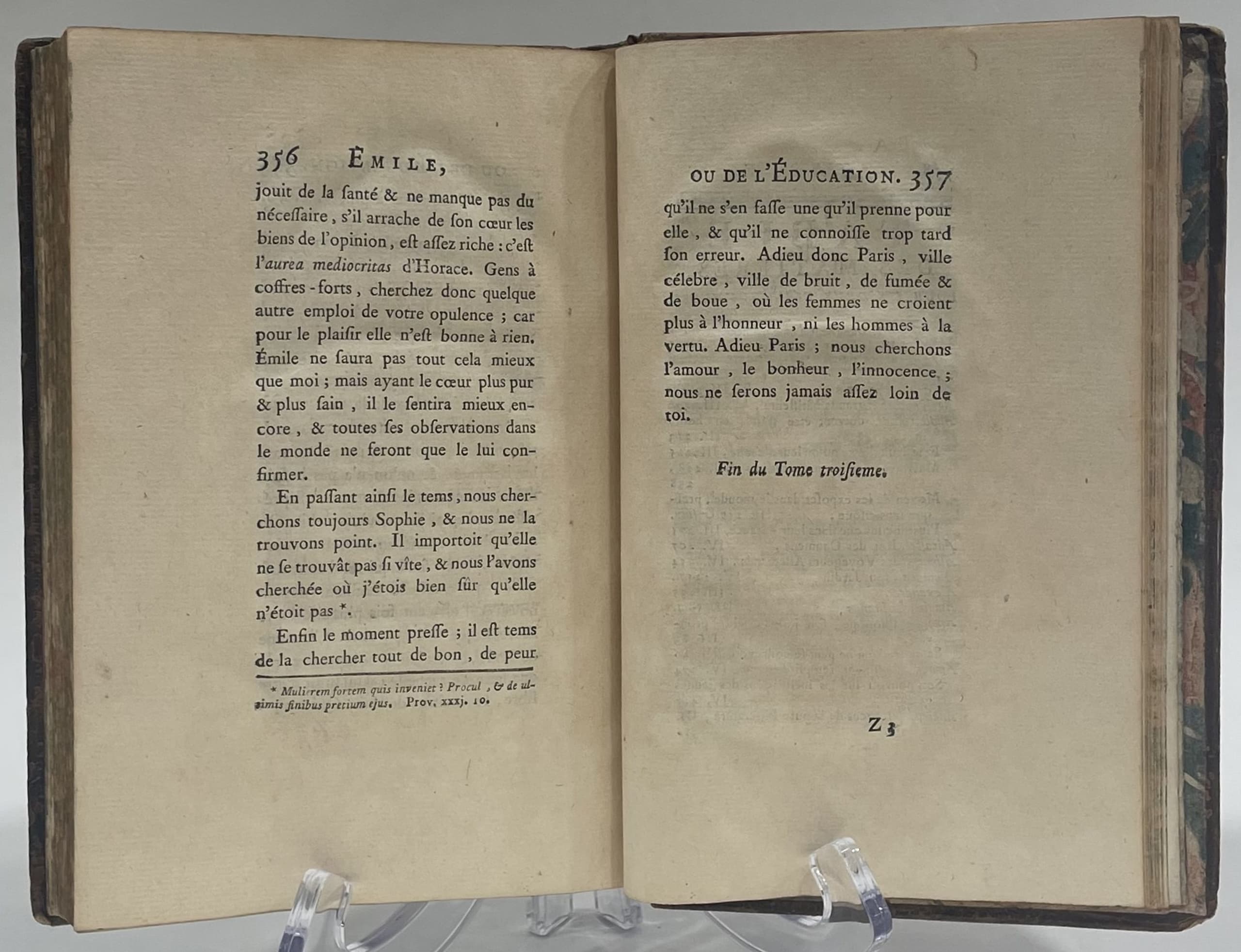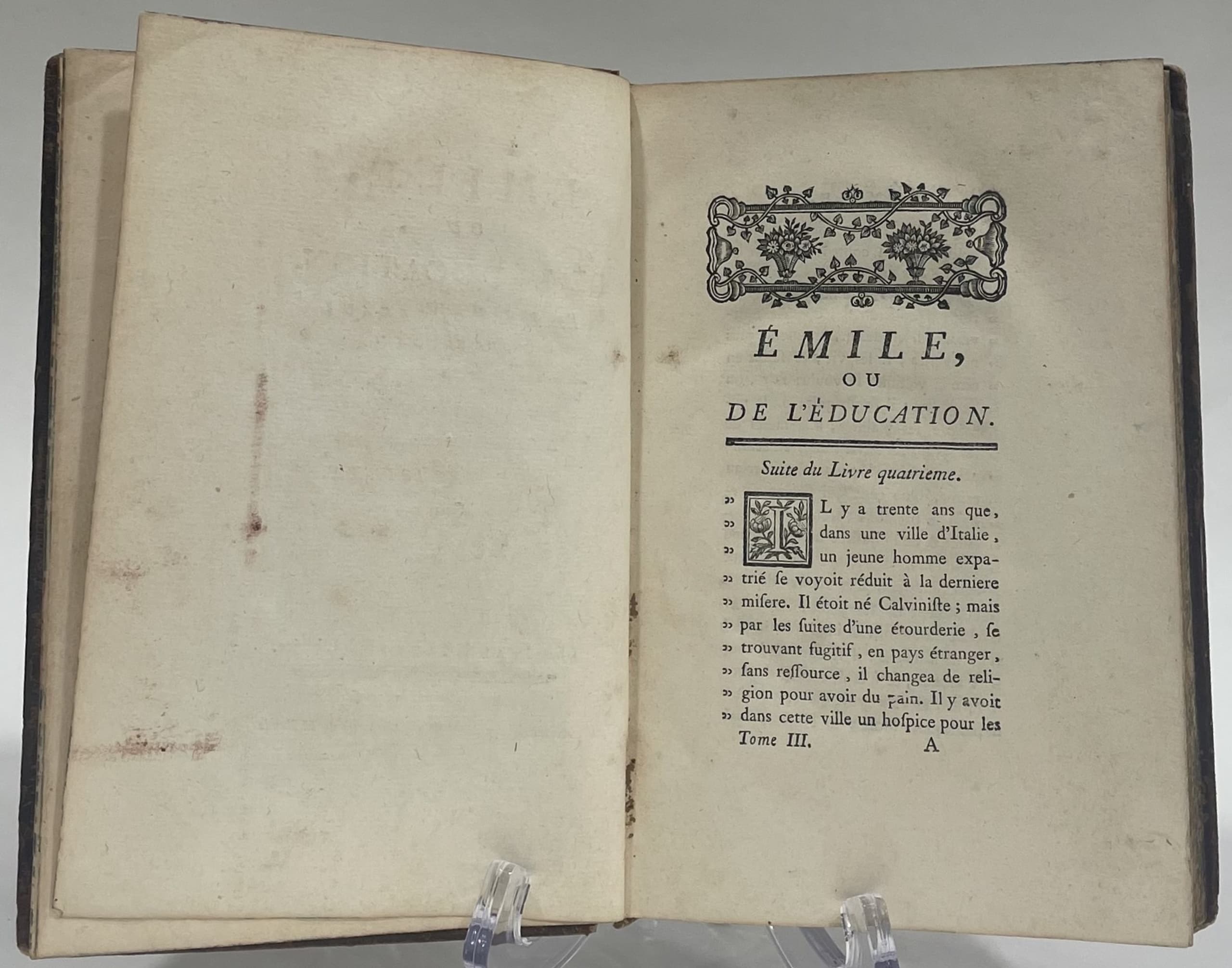 JEAN-JACQUES ROUSSEAU (1712-1778) ÉMILE, OU DE L’ÉDUCATION [ÉMILE, OR ON EDUCATION] 1 VOLUME. THIRD BOOK. 1762. IN FRENCH.