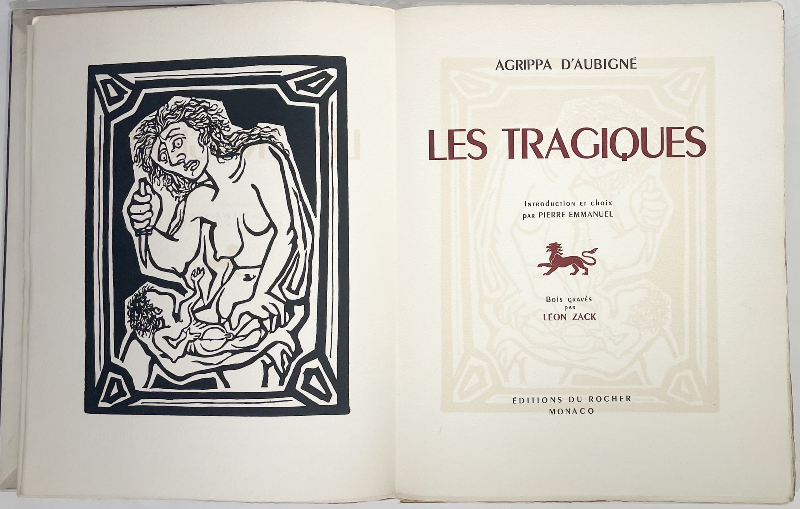 THÉODORE AGRIPPA D’AUBIGNÉ (1552-1630) LÉON ZACK (1892-1980) LES TRAGIQUES, 1946 WITH MANUSCRIPT DEDICATION BY LÉON ZACK. 1 VOLUME. IN FRENCH. Monaco, Editions du Rocher, 1946.