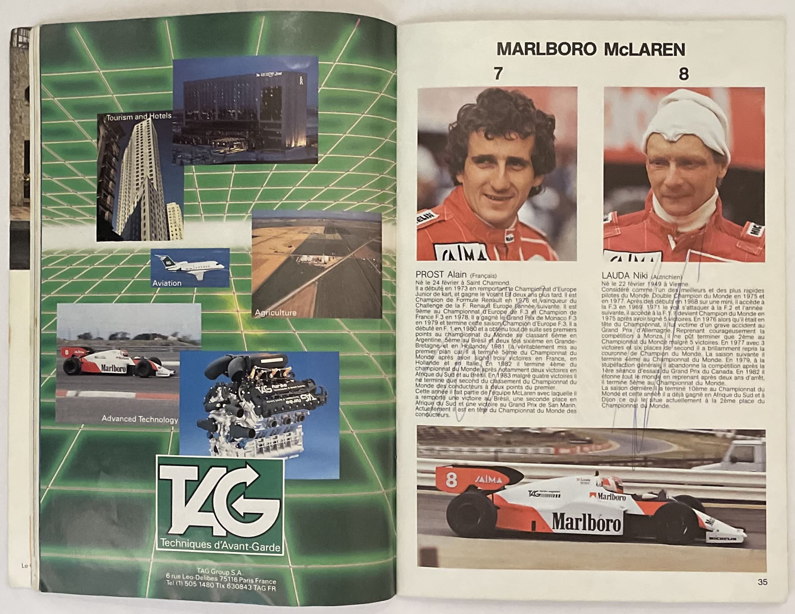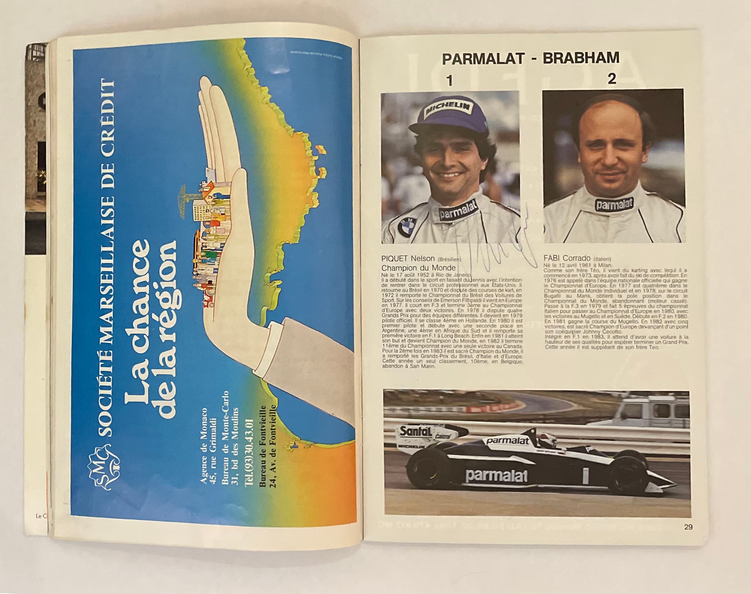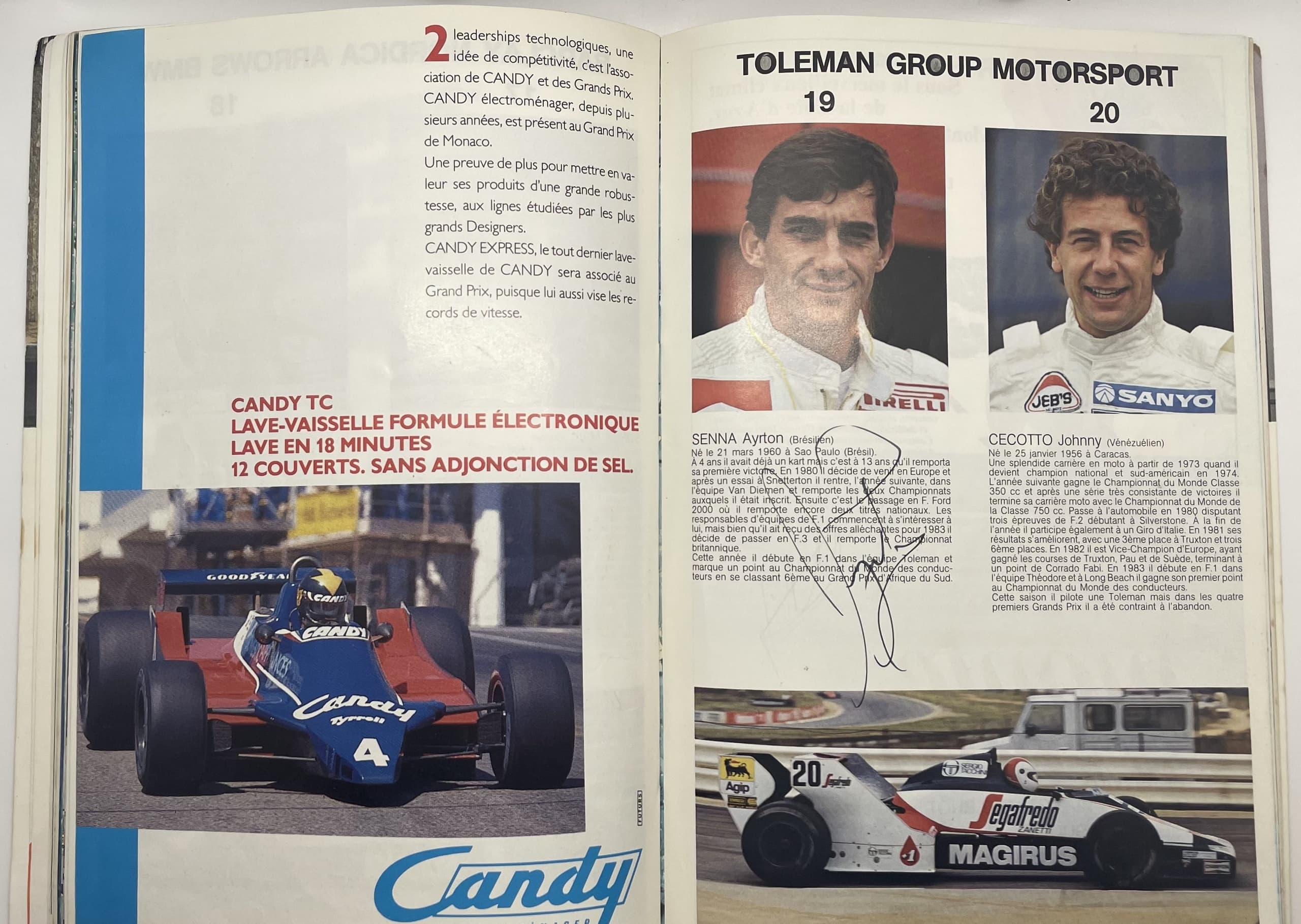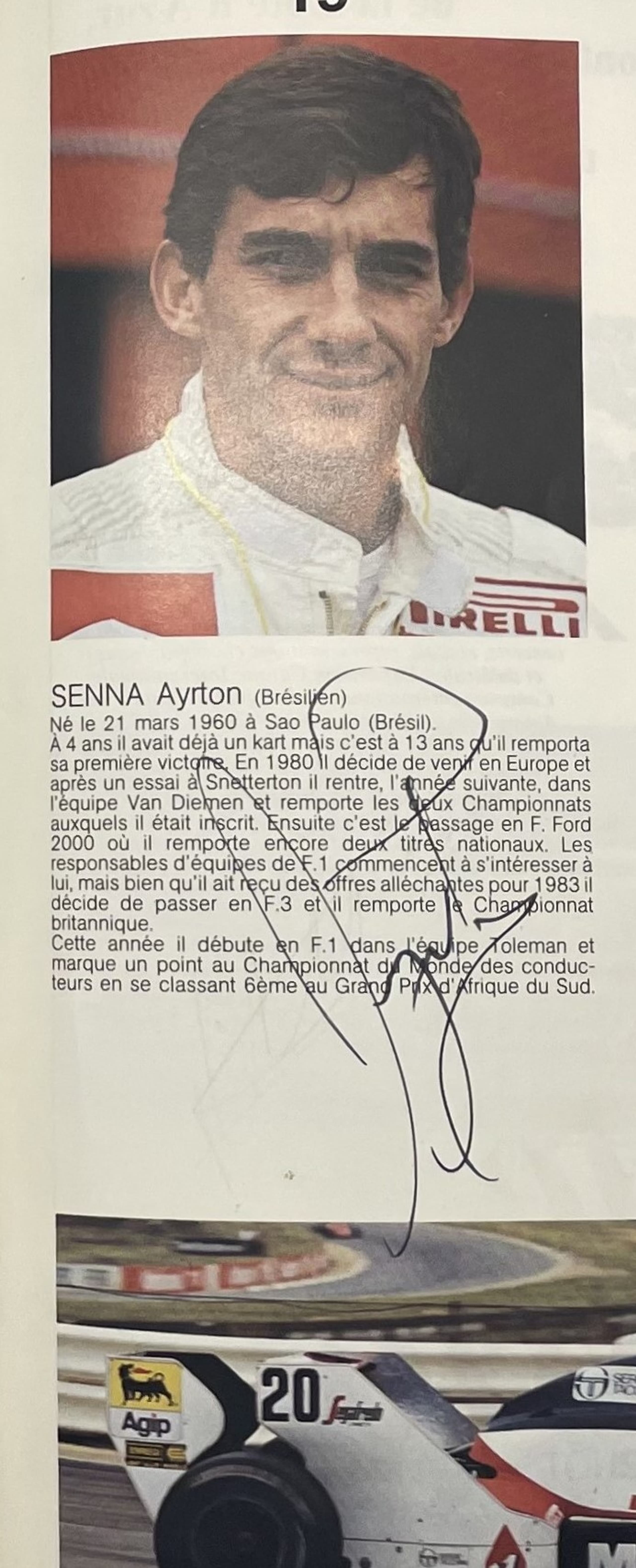 With autographs of numerous racing drivers: Ayrton Senna, Niki Lauda, Alain Prost, Nigel Mansell, Patrick Tambay, Nelson Piquet and others