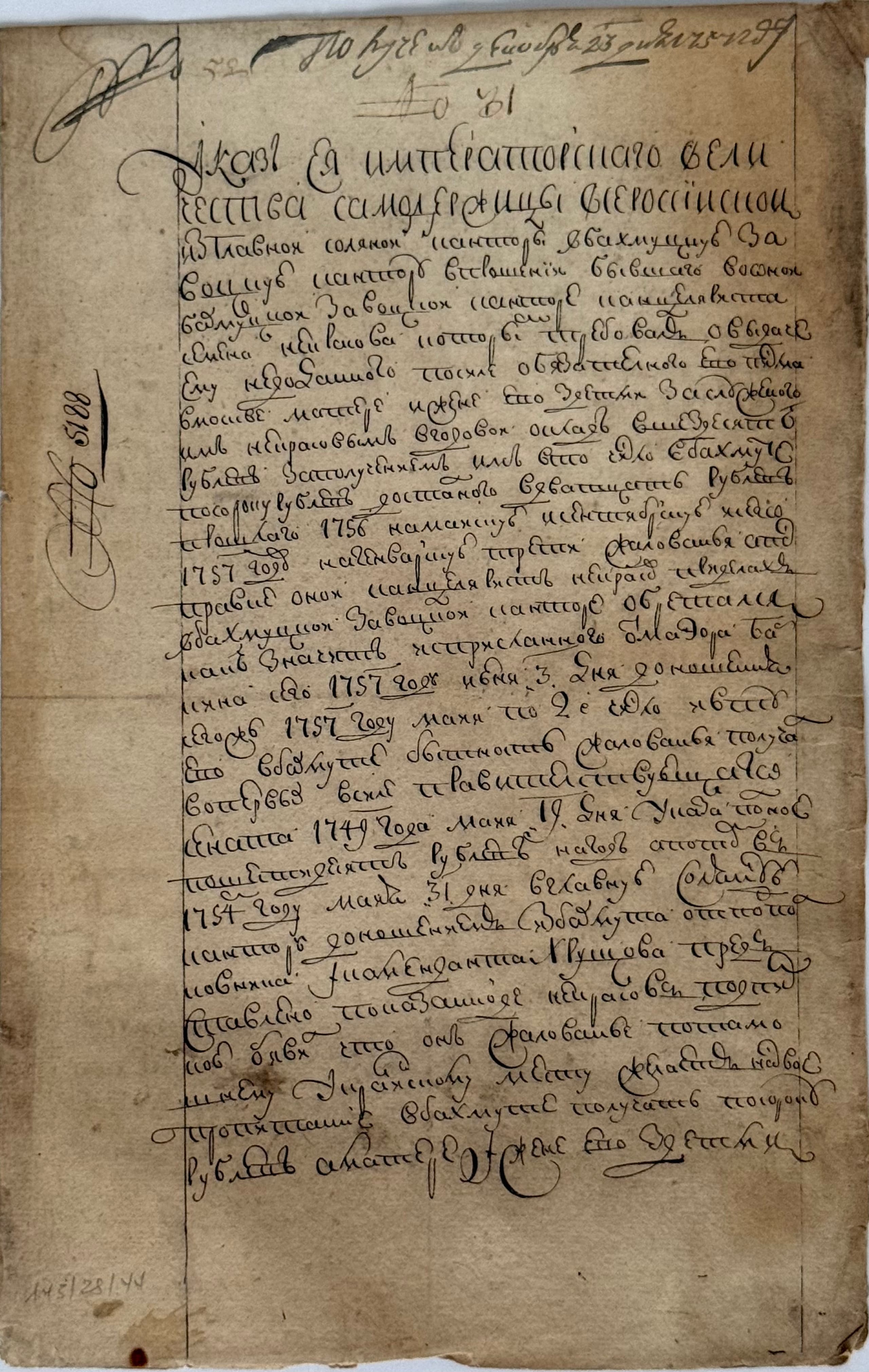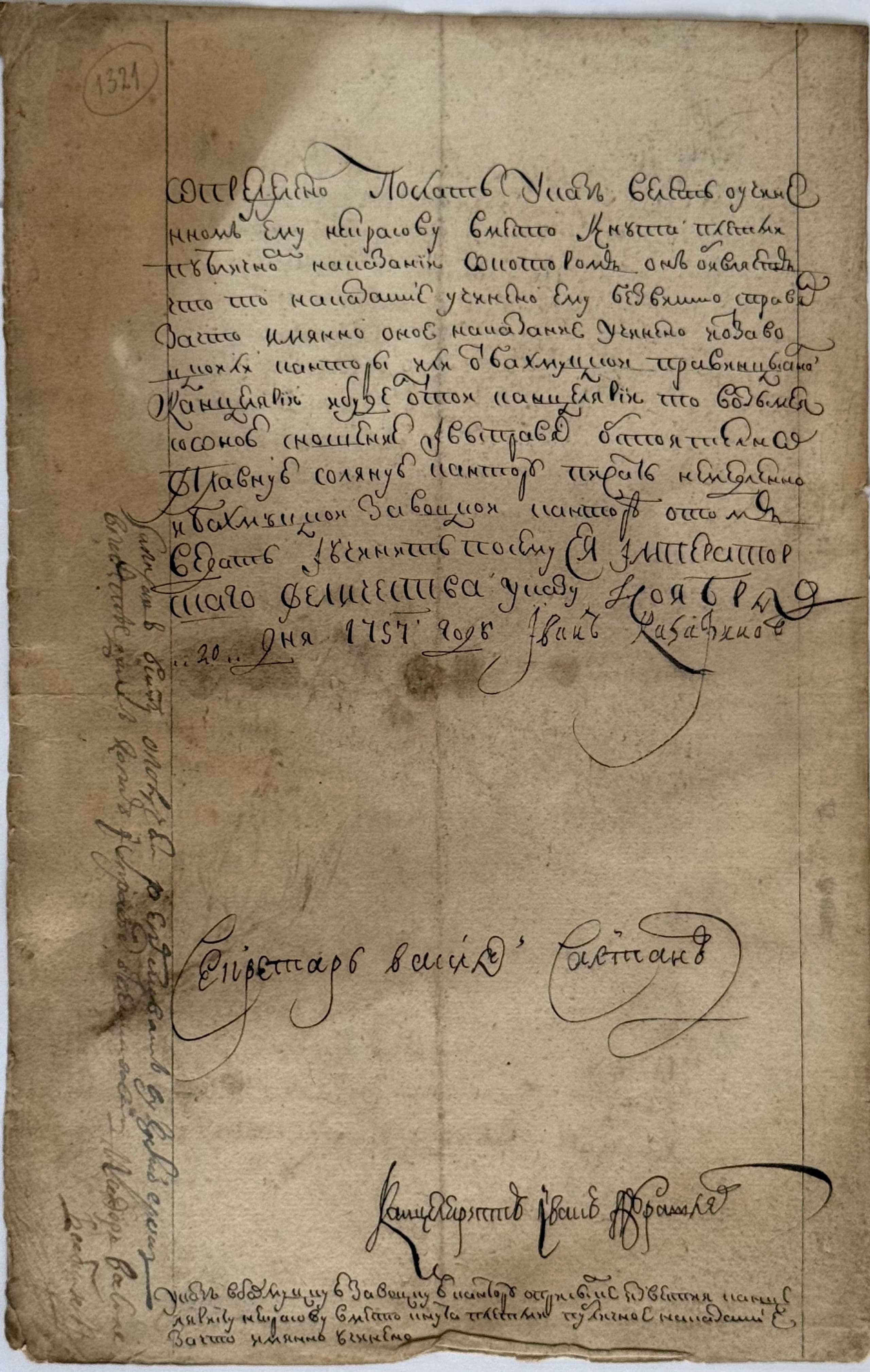 ELIZAVETA PETROVNA (1741-1762), EMPRESS OF ALL RUSSIA Decree from the Main Salt Office in Bakhmut dated 20 November 1757.