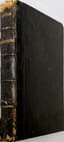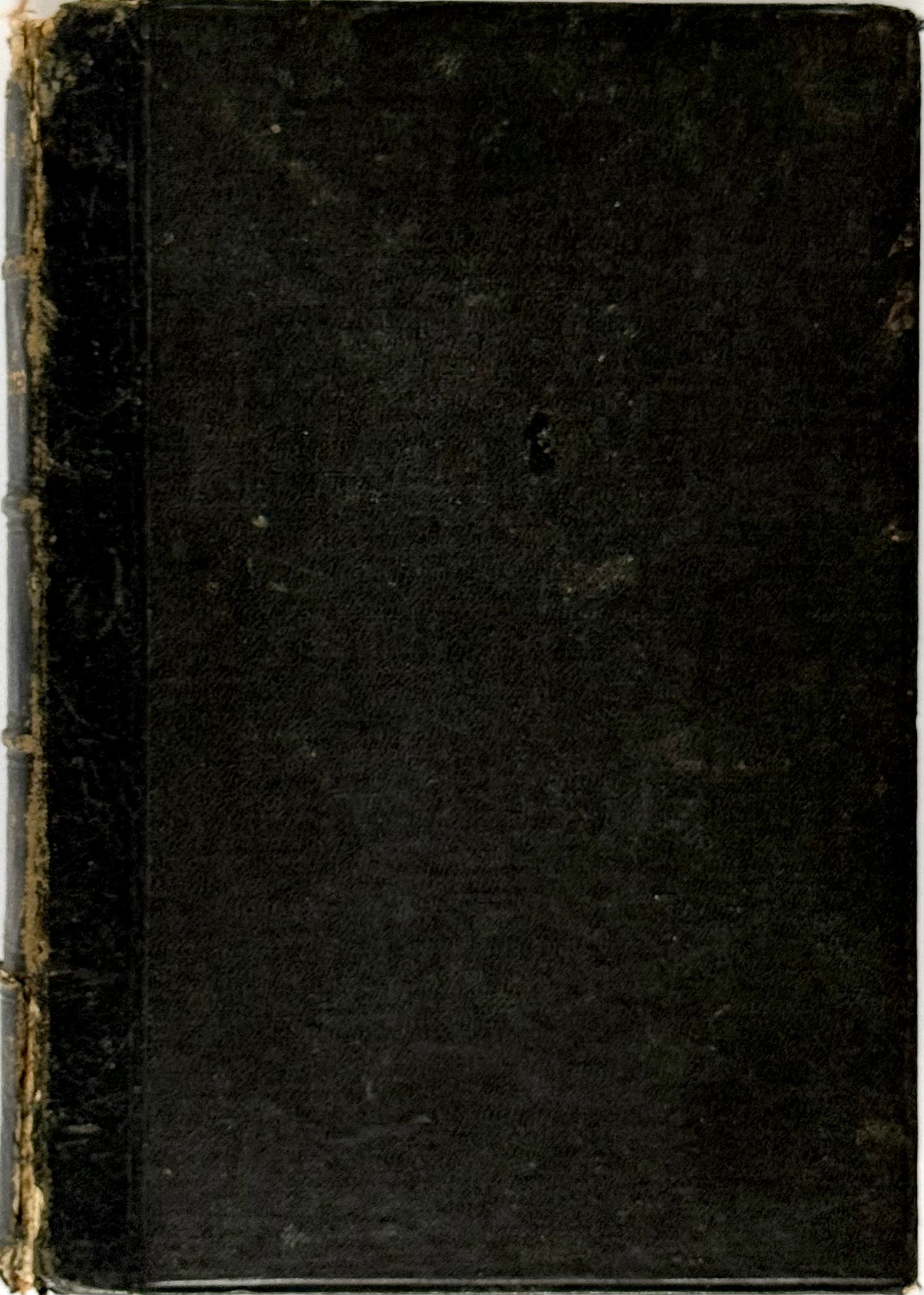 Spine damaged (cracks and small losses to leather), light moisture stains along upper margins, some foxing, and owner’s notes in text.