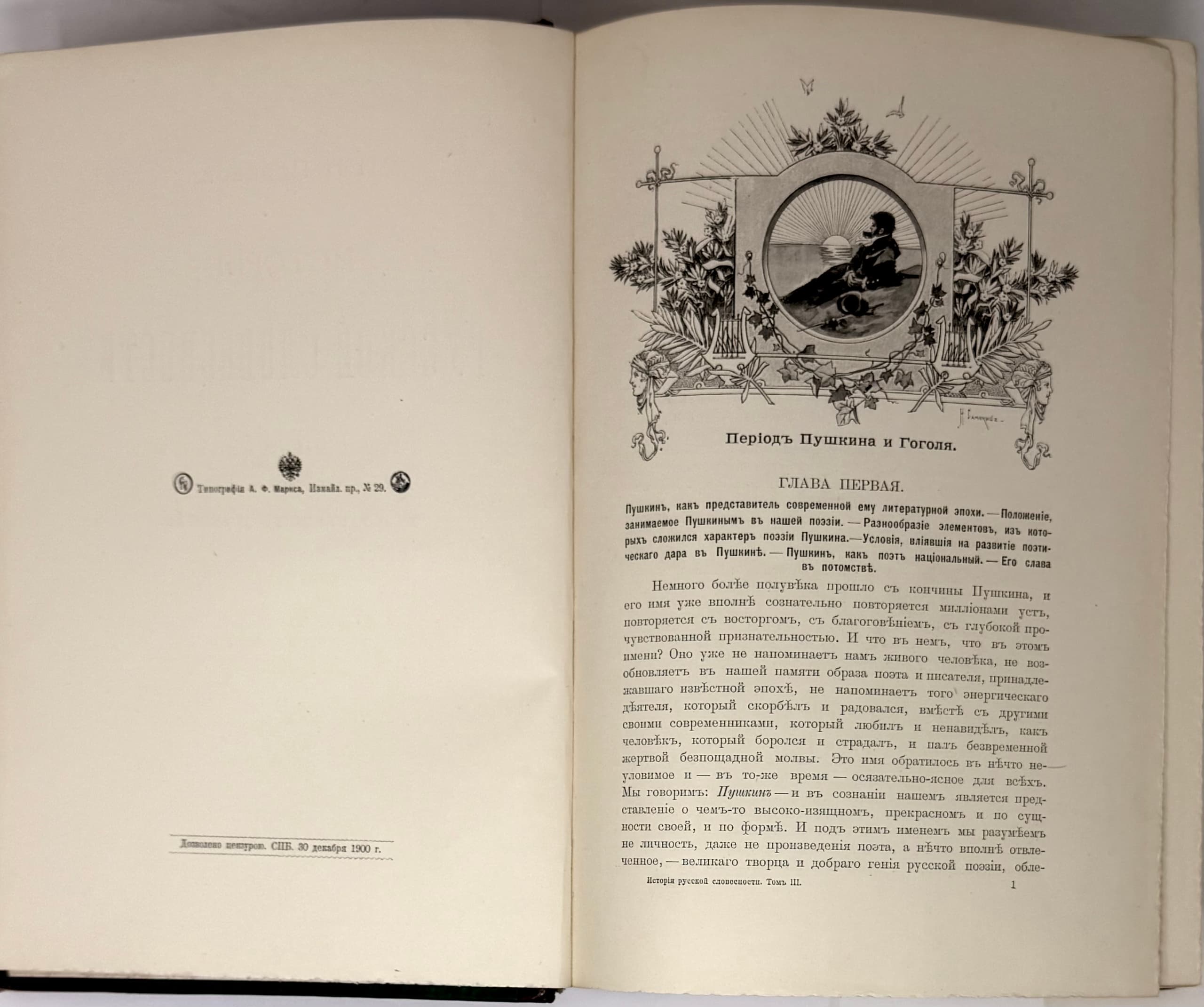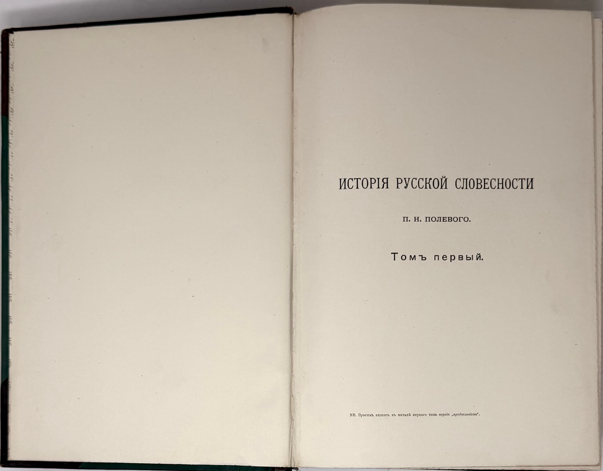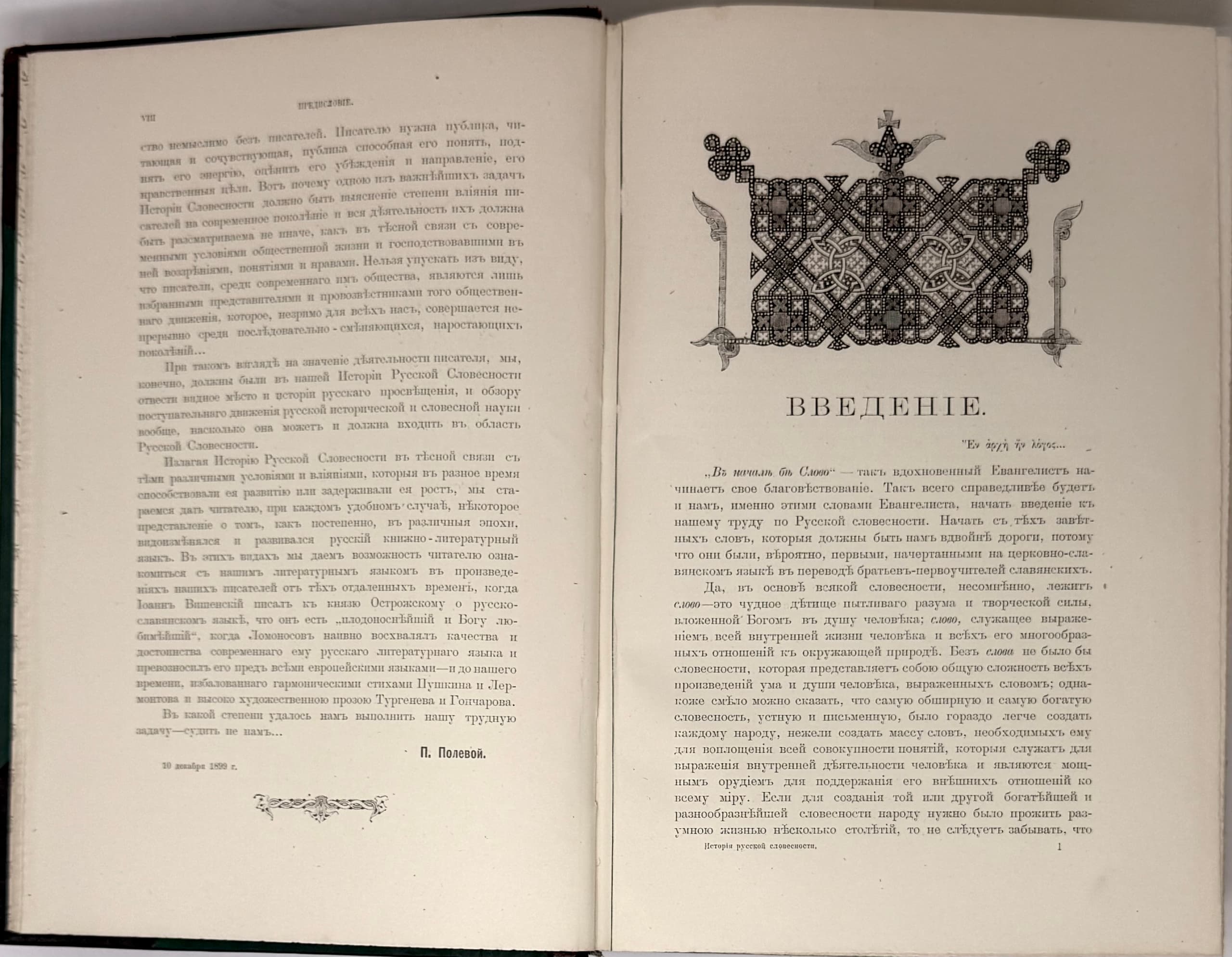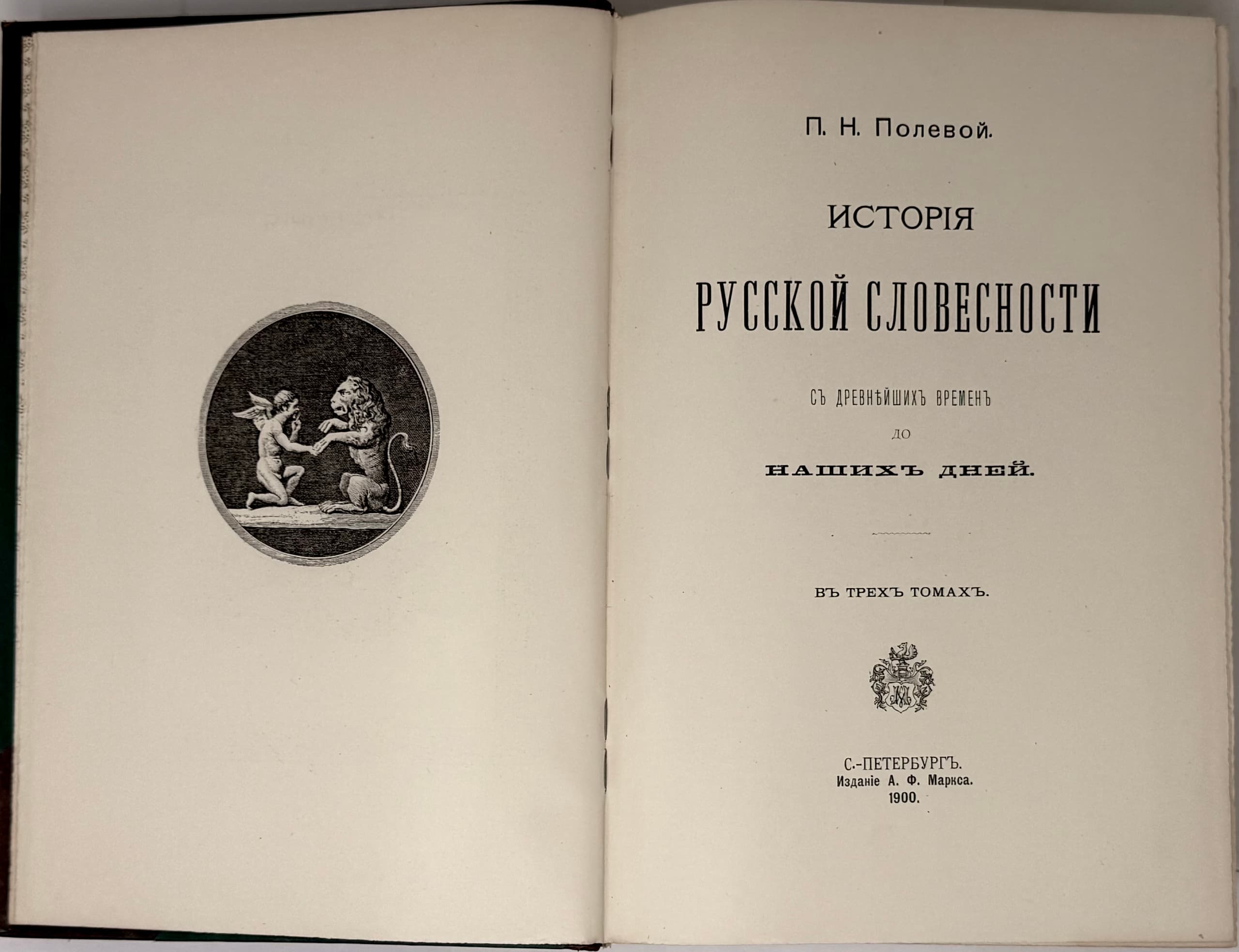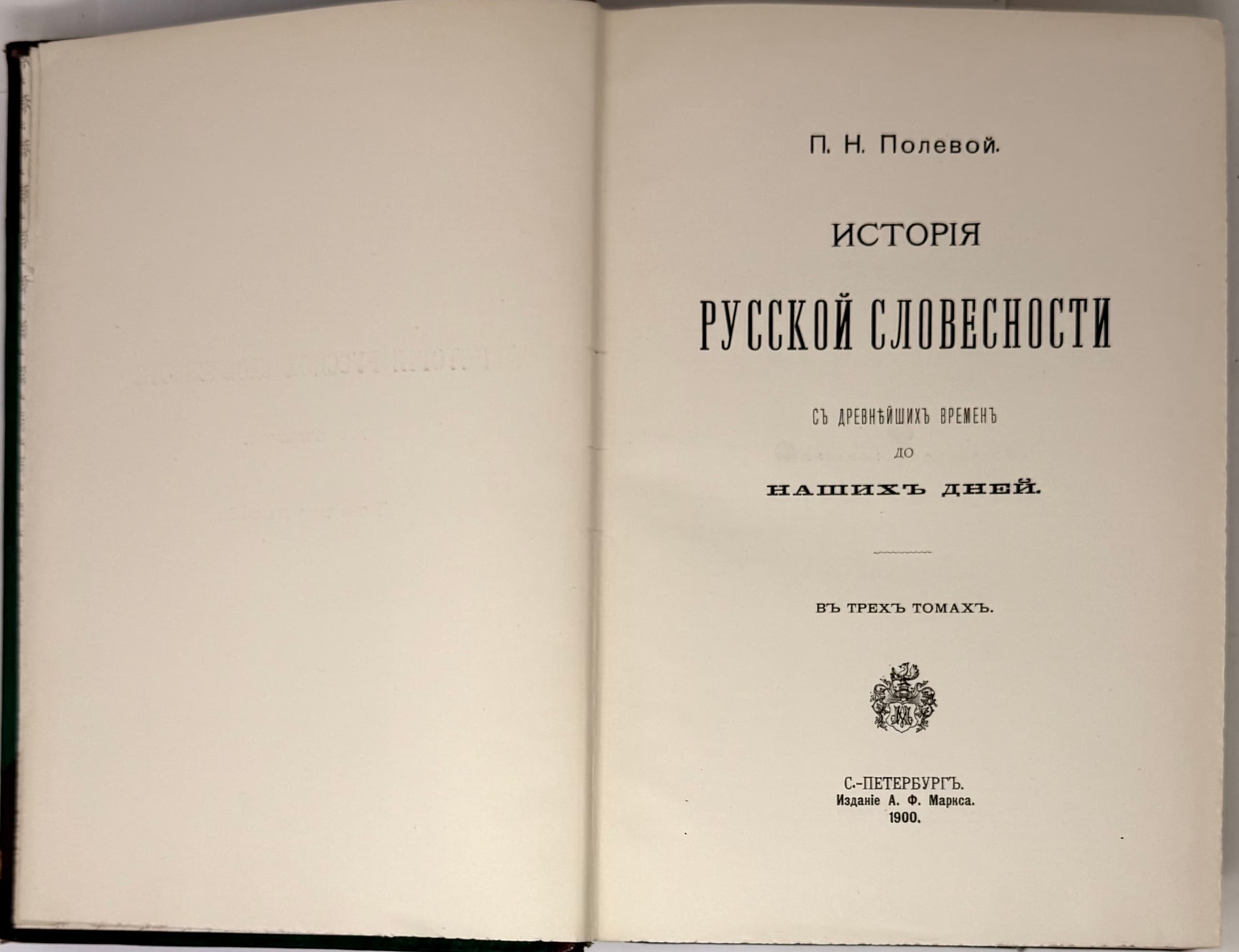 POLEVOY PETR (1839-1902) Istoriia russkoi slovesnosti s drevneishikh vremen do nashikh dnei: v 3 t. [History of Russian Literature from Ancient Times to the Present Day: In 3 vols.] St. Petersburg: Izd. A.F. Marksa, 1900.