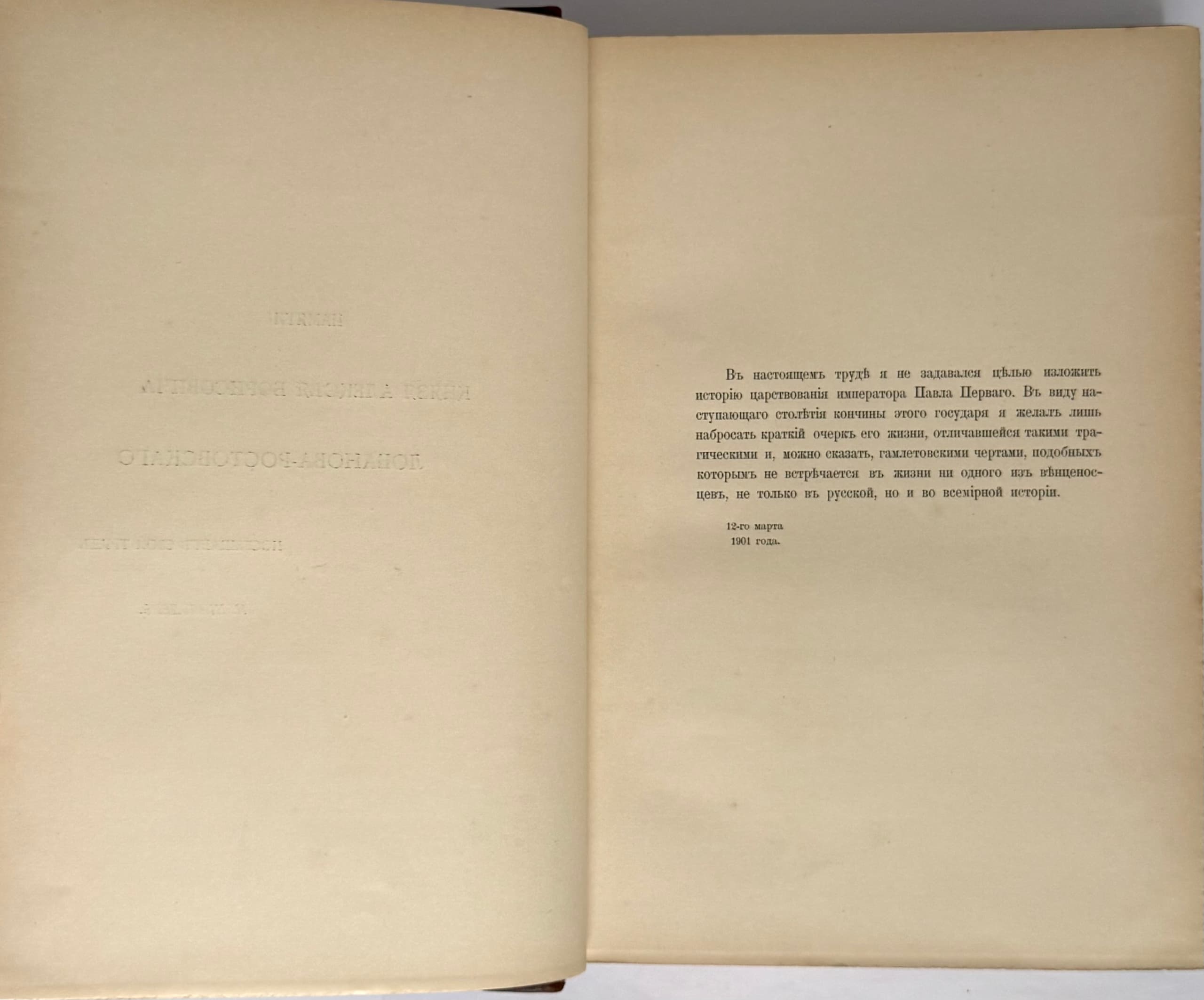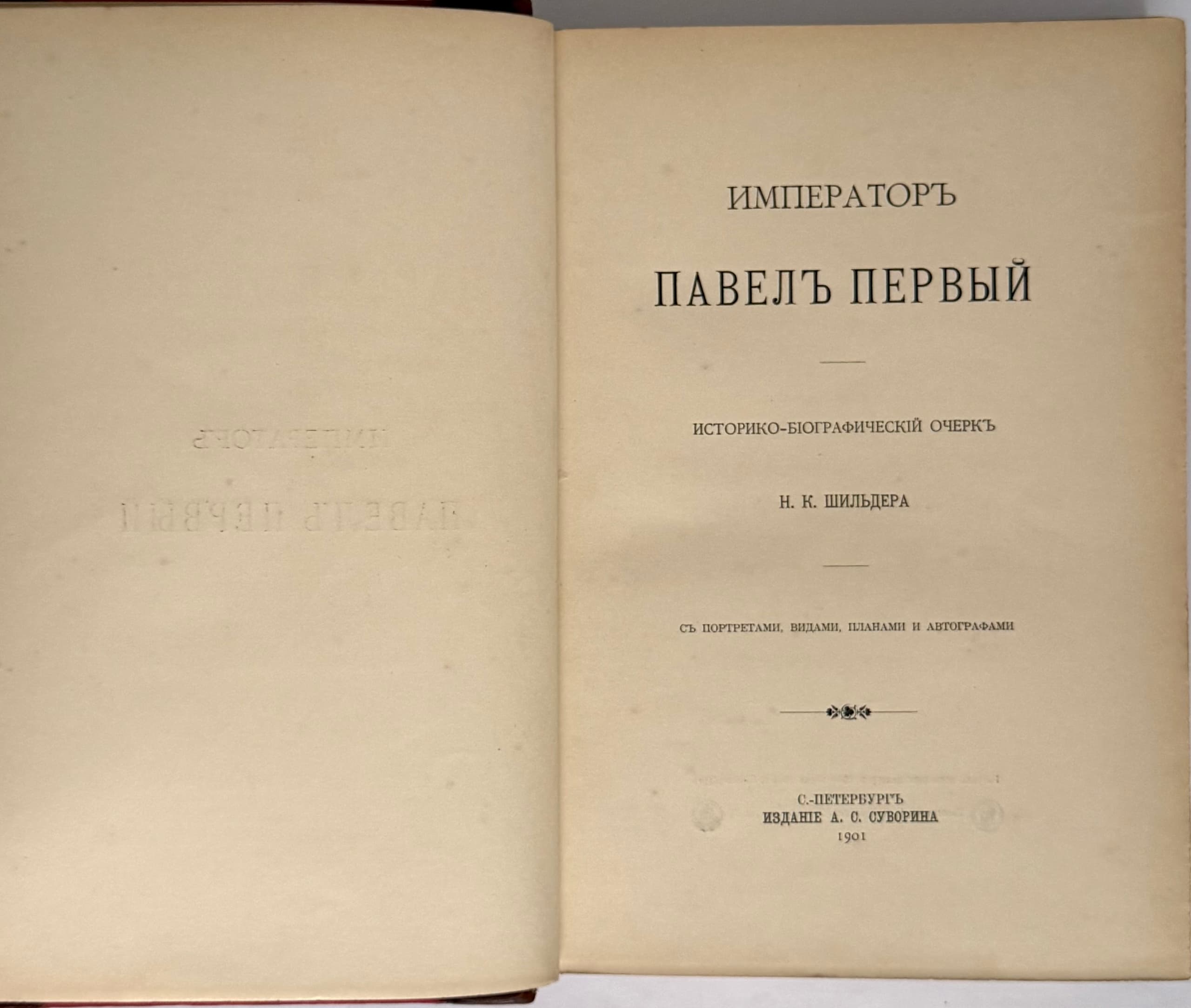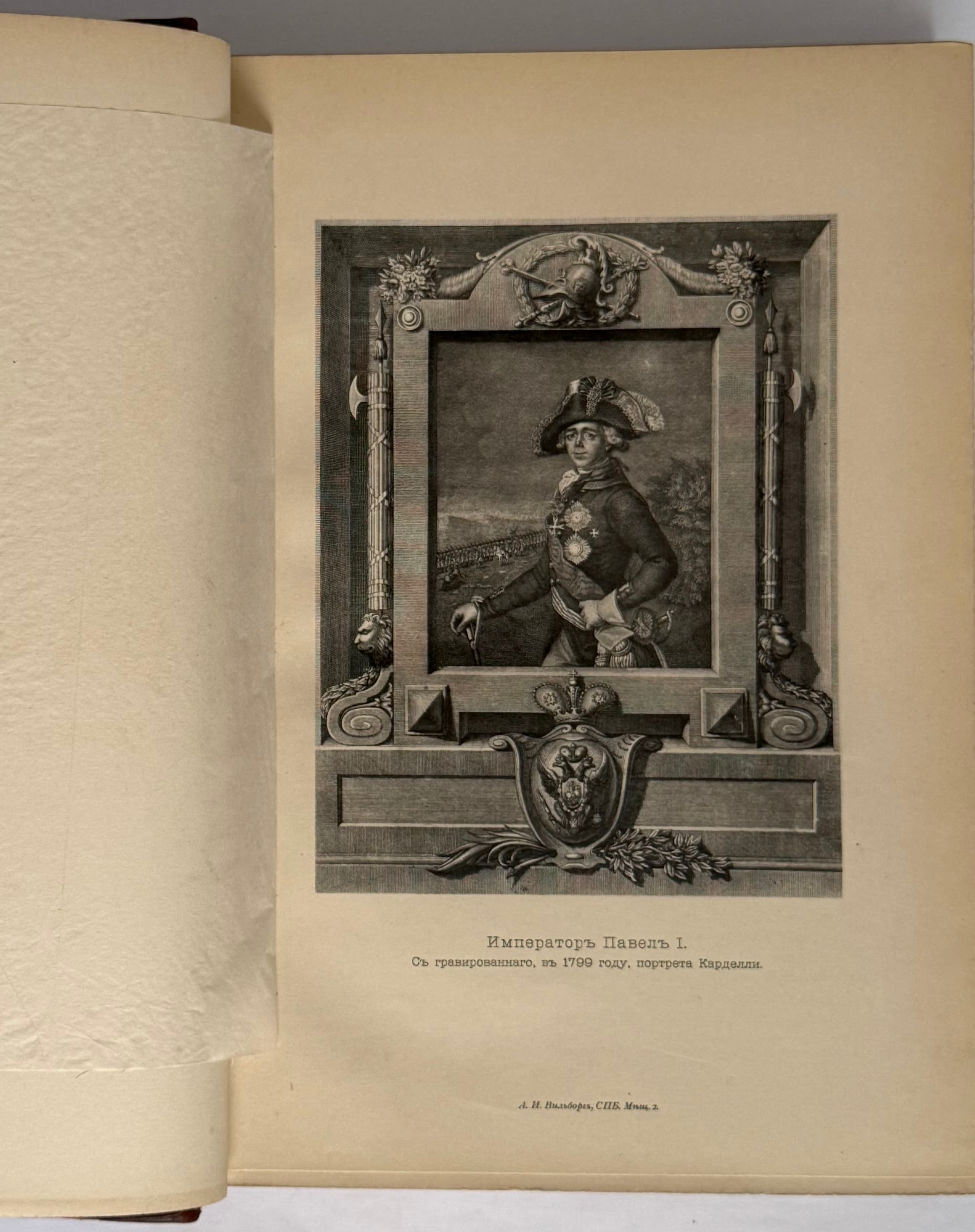 Imperator Pavel Pervyi. Istoriko-biograficheskii ocherk s portretami, vidami, planami i avtografami. [Emperor Paul the First. Historical and biographical sketch with portraits, views, plans, and autographs.] St. Petersburg: Izdanie A.S. Suvorina, 1901