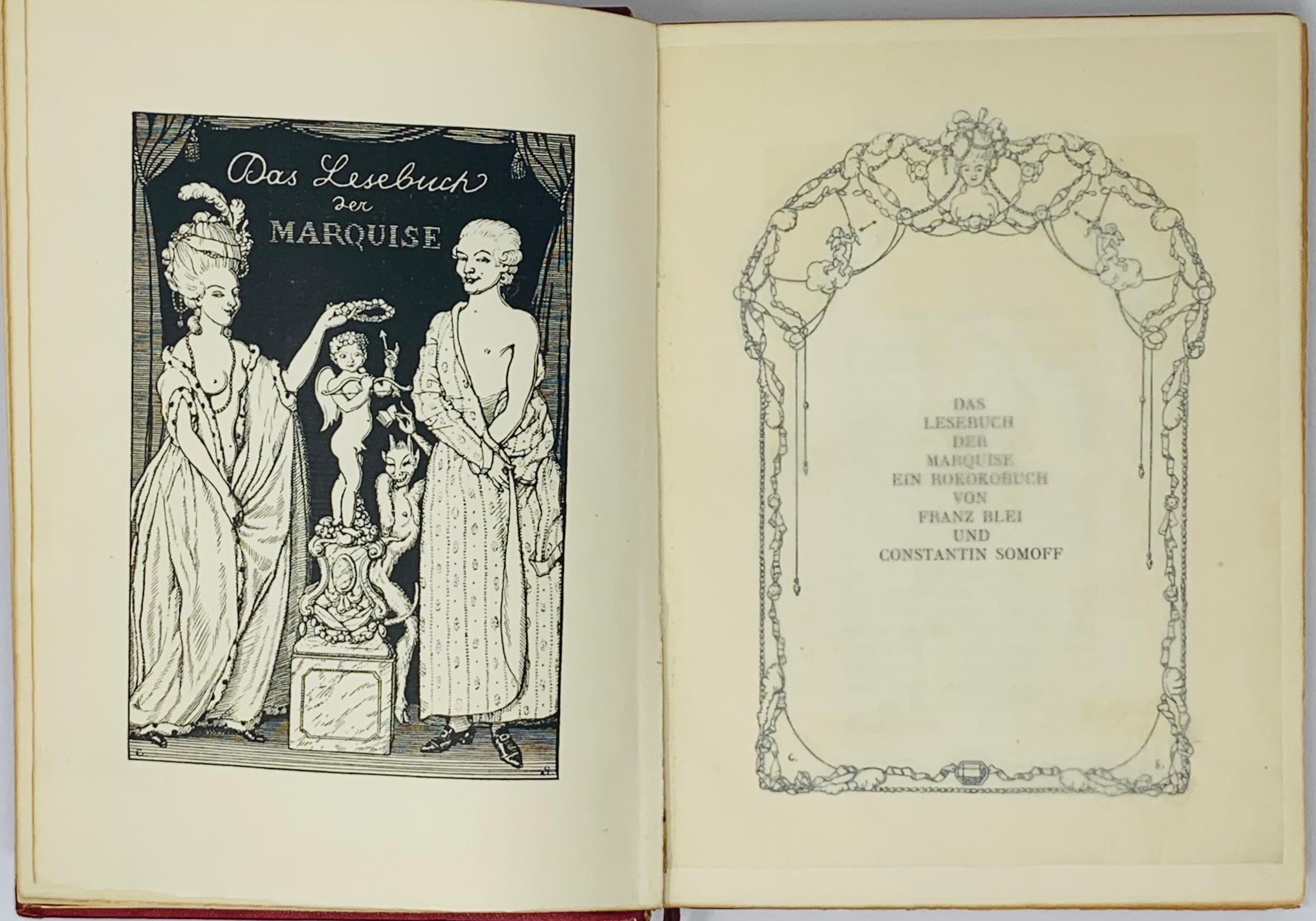The Book of the Marquess is an anthology of frivolous texts illustrated with erotic drawings by artist Konstantin Somov. It includes excerpts from erotic works by André Chénier, Casanova, Parny, Voltaire, Crébillon fils, and passages from Choderlos de Laclos’ Dangerous Liaisons. The concept for the collection originated with Austrian essayist, translator, and publisher of pornographic periodicals Franz Blei (1871–1942).
