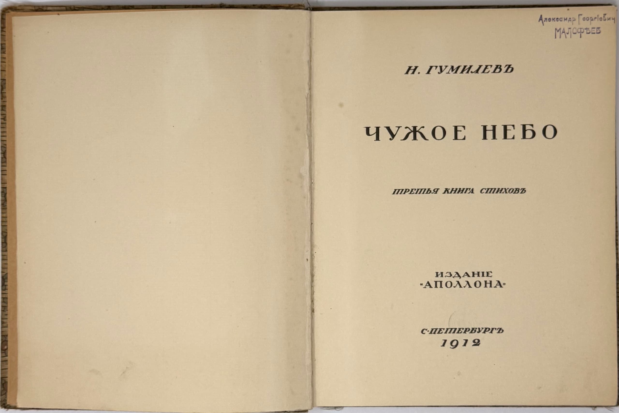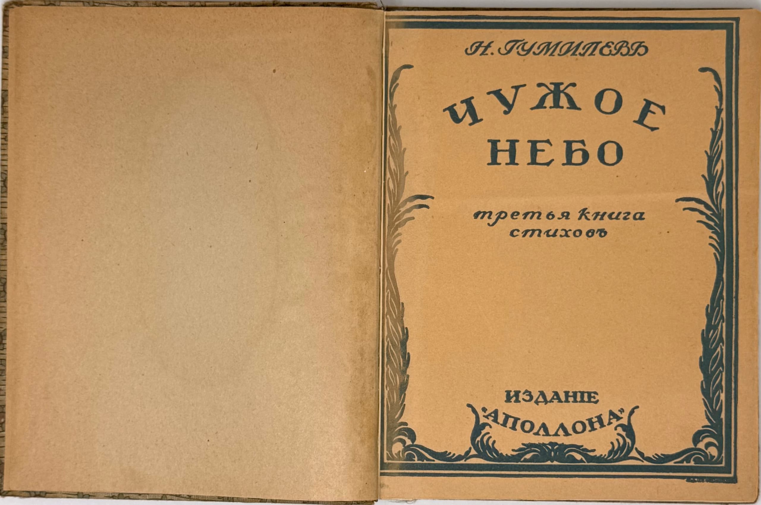 GUMILEV NIKOLAI (1886-1921) Chuzhoe nebo: Third book of poems. St. Petersburg: Izdanie “Apollona” 1912.